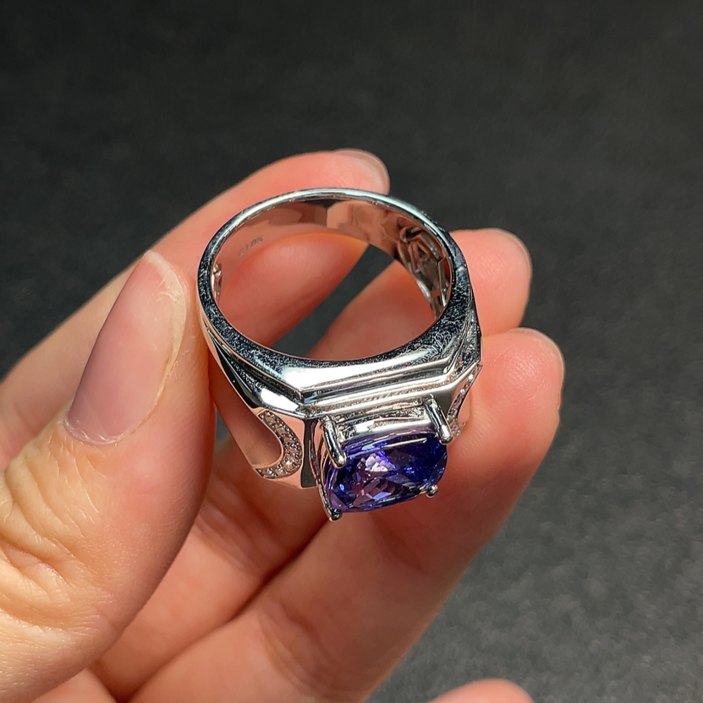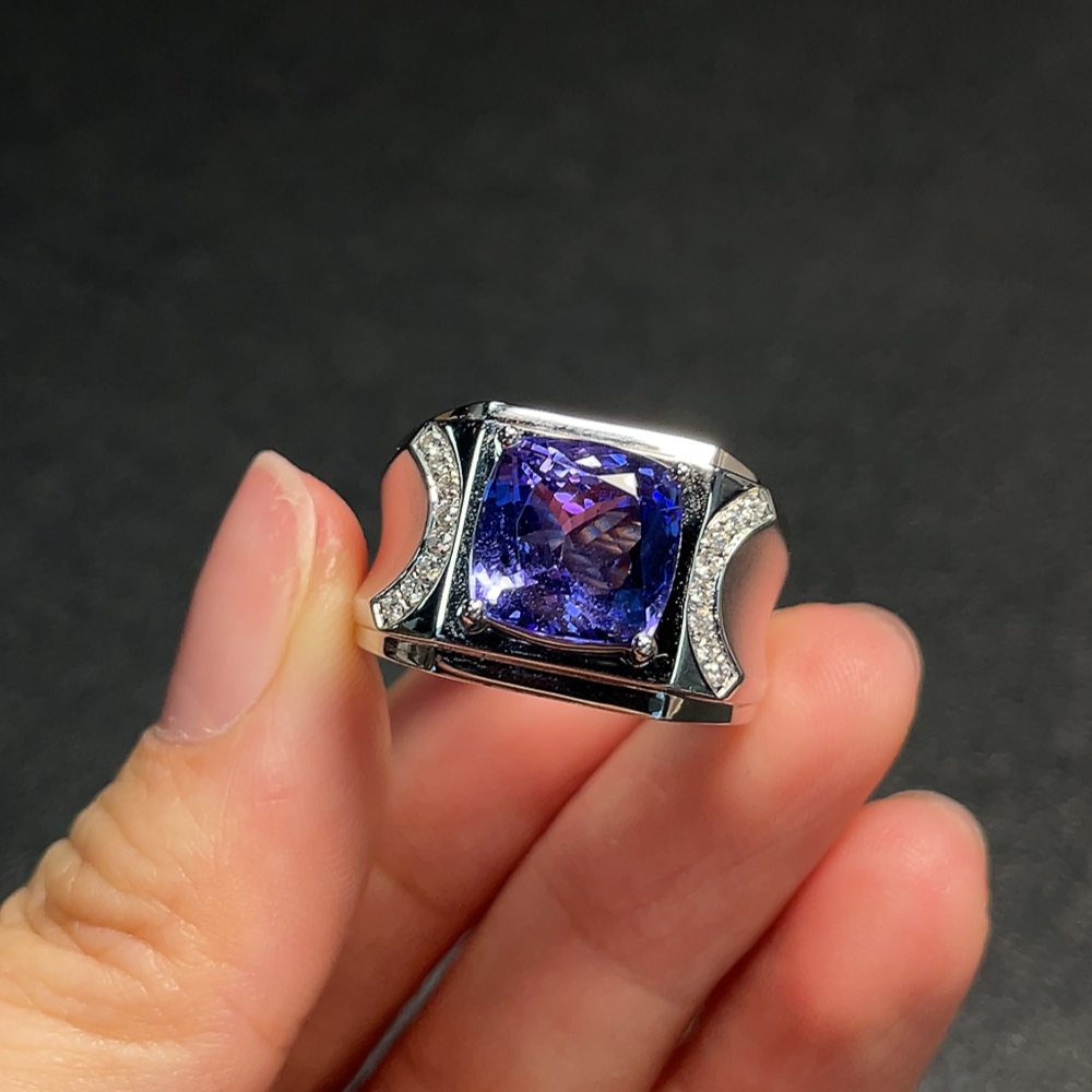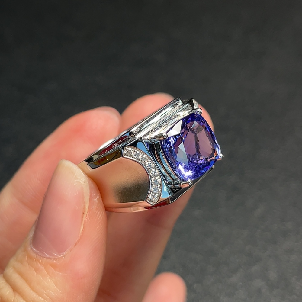 18K Tanzanite Ring with Diamond Accents, Total Weight Approx. 11.81g, Size 22