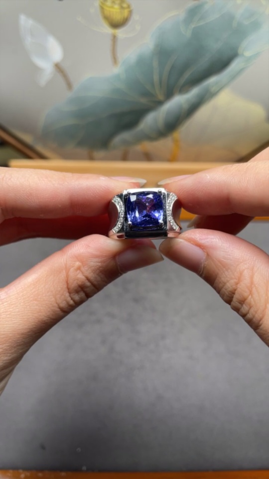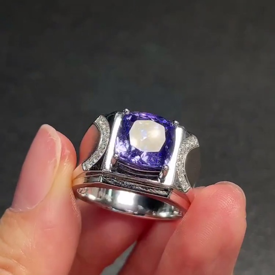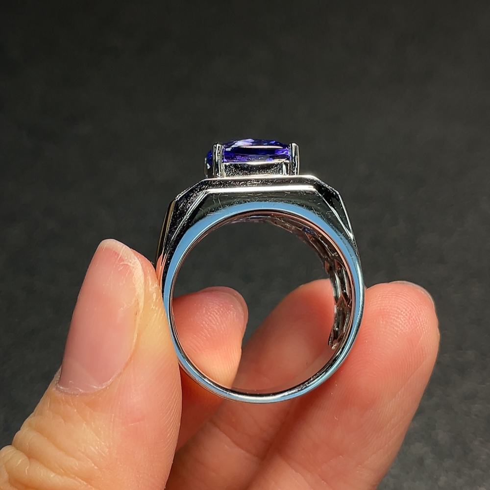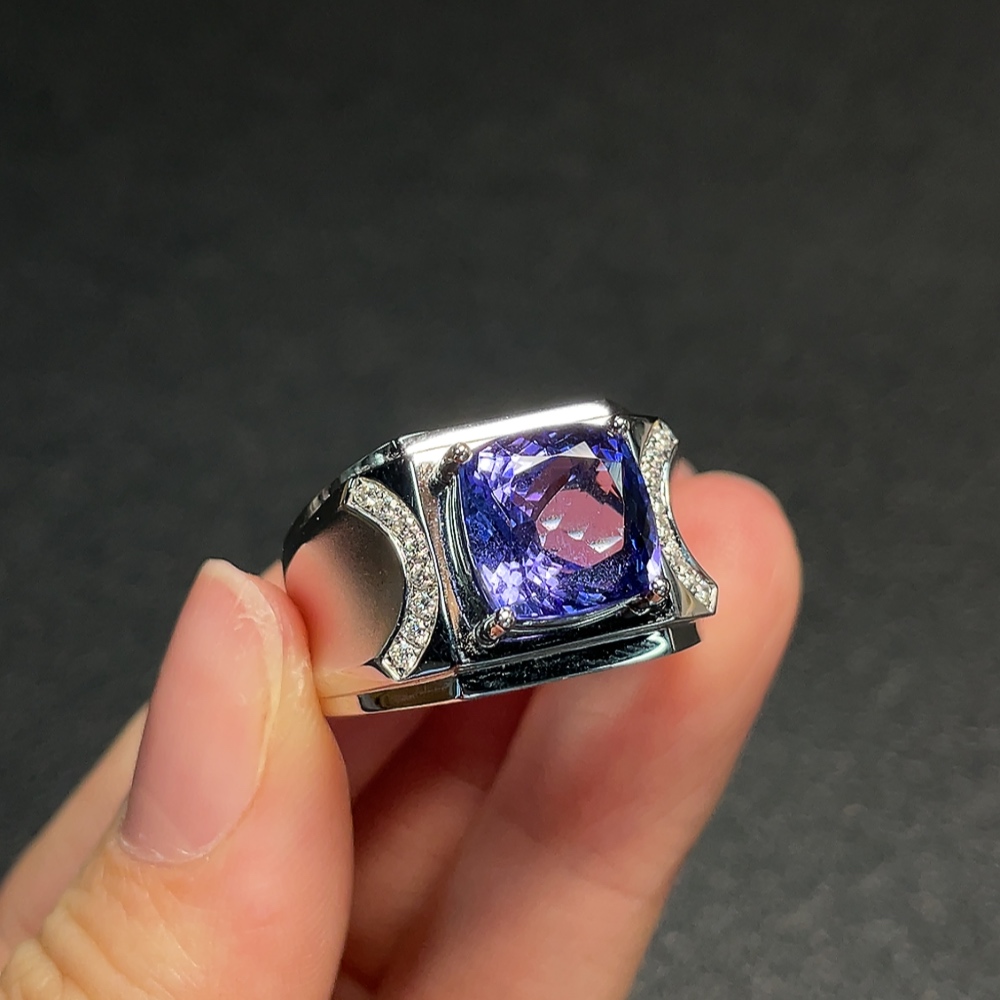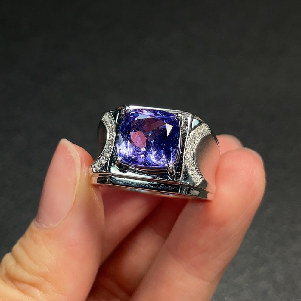 18K Tanzanite Ring with Diamond Accents, Total Weight Approx. 11.81g, Size 22