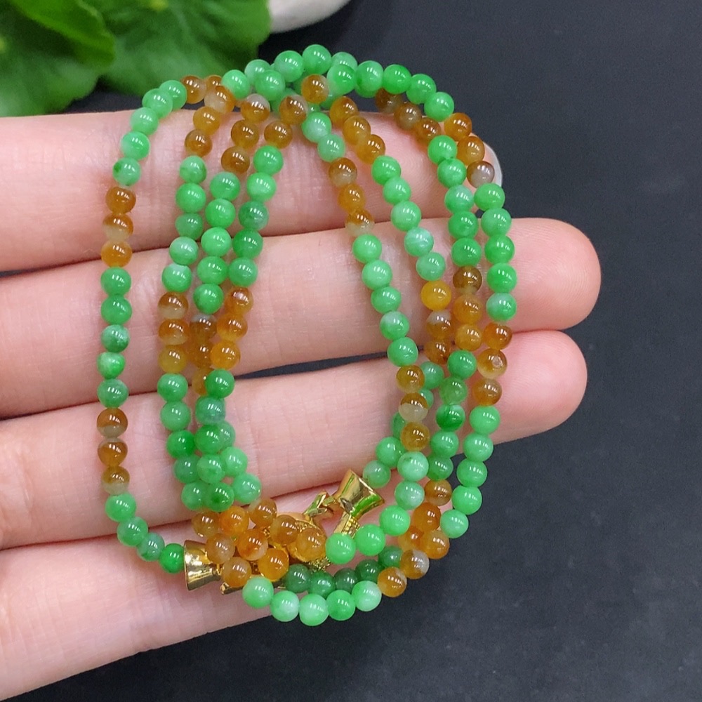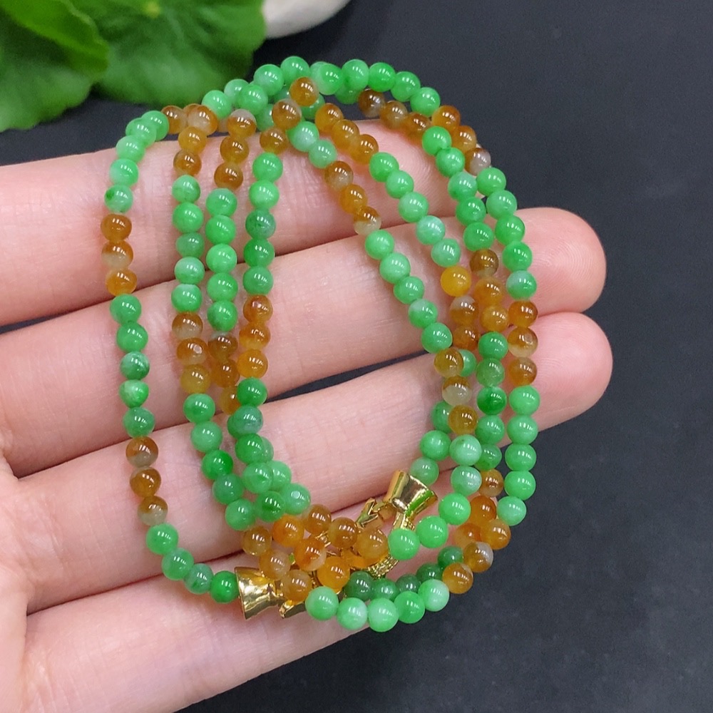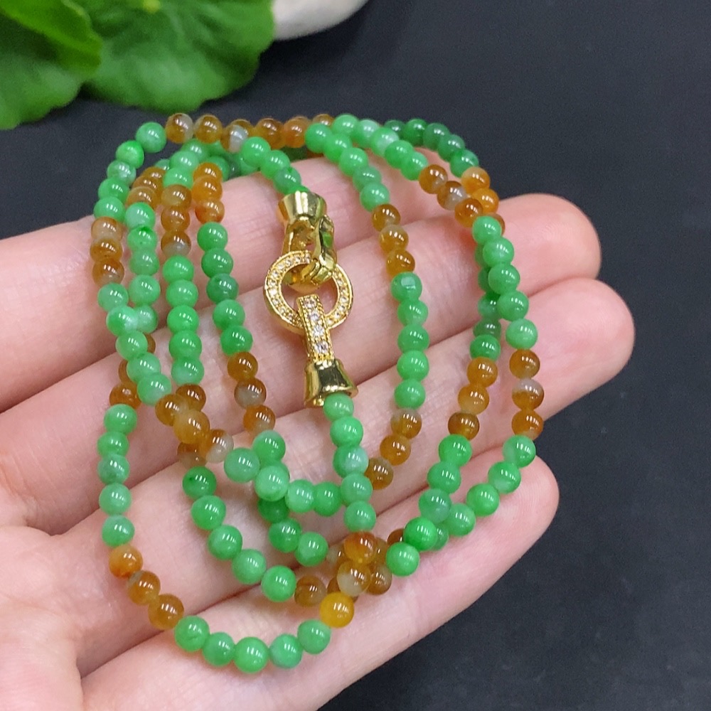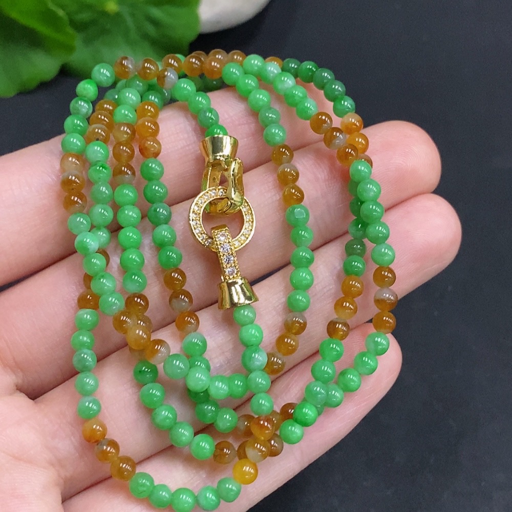 Jadeite Bead Necklace Non-Gold Inlaid Total Weight Approx. 15.1g Size Approx. 3.2mm
