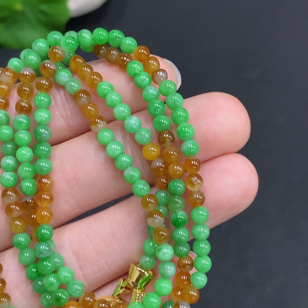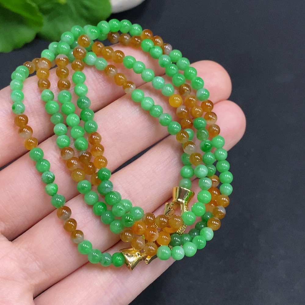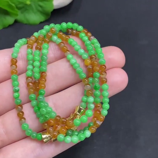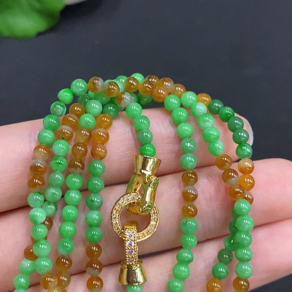 Jadeite Bead Necklace Non-Gold Inlaid Total Weight Approx. 15.1g Size Approx. 3.2mm
