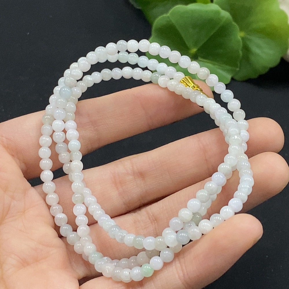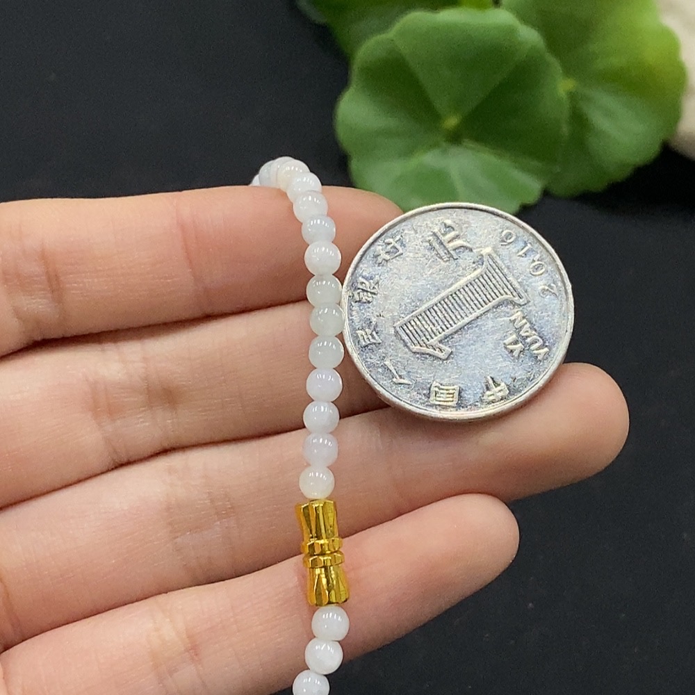 Jadeite Bead Necklace Approximately 3.8mm Non-Gold Inlaid Total Weight About 15.25g