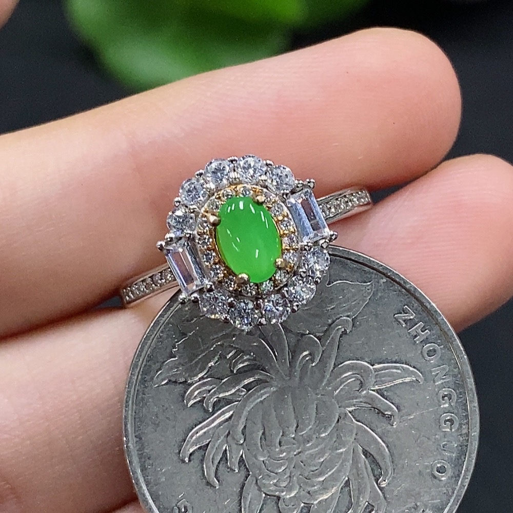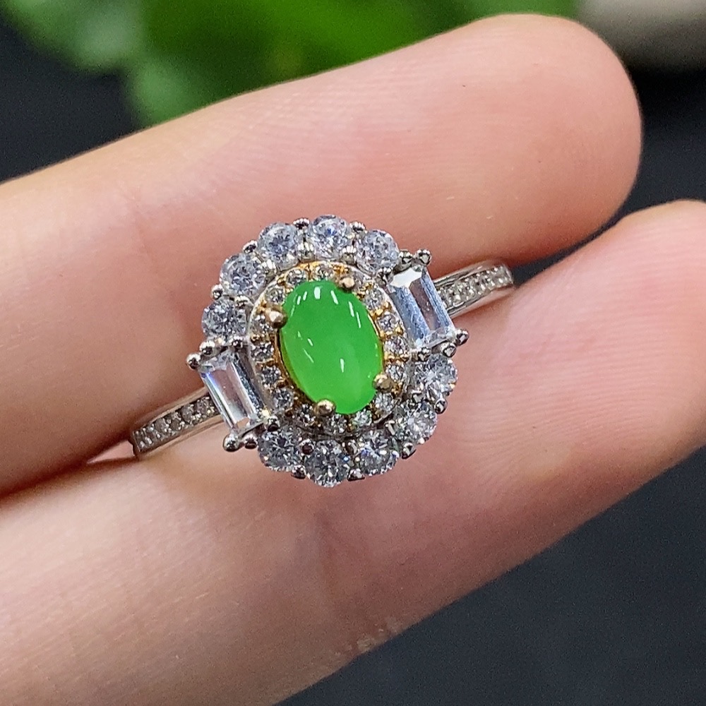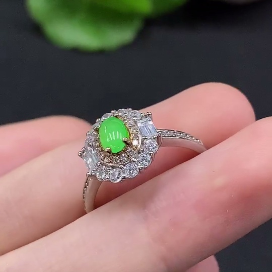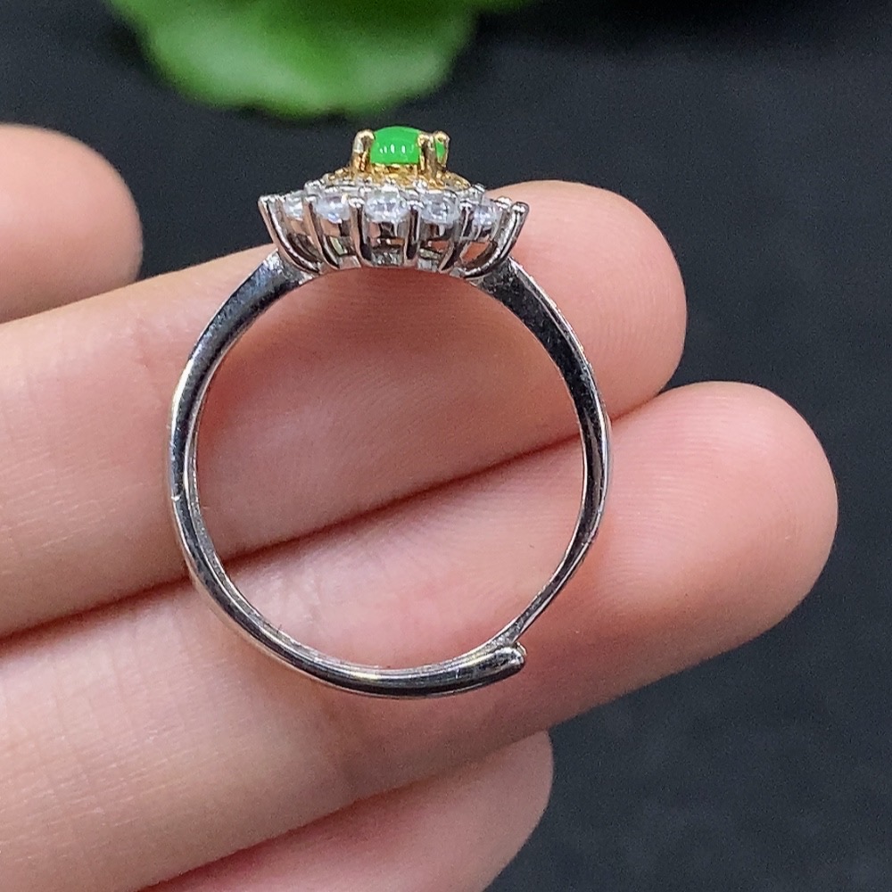 Jadeite Cabochon Solitaire Ring Non-Gold Setting Adjustable Size Total Weight Approx. 2.33g