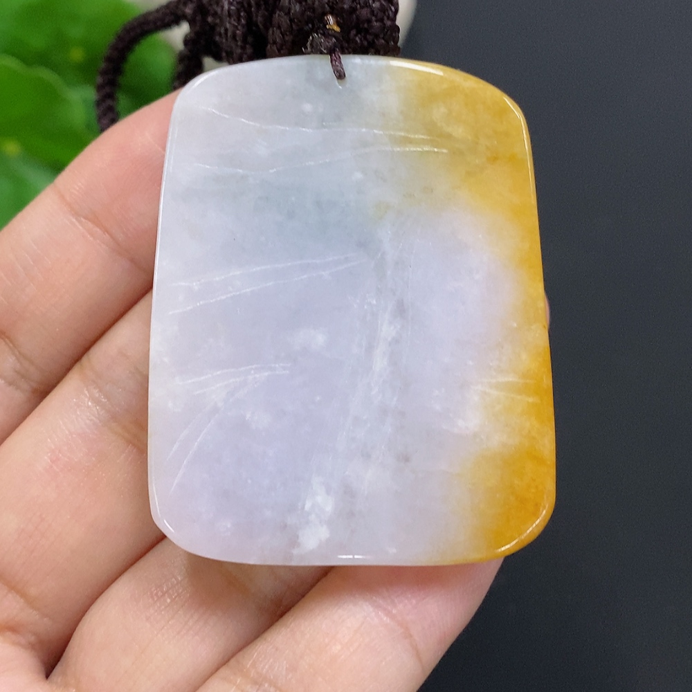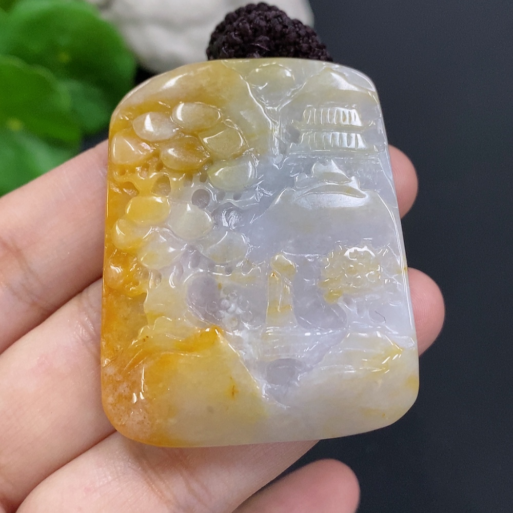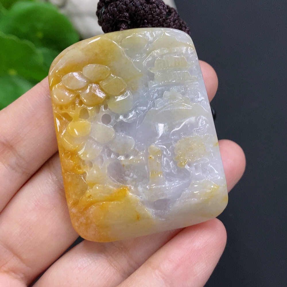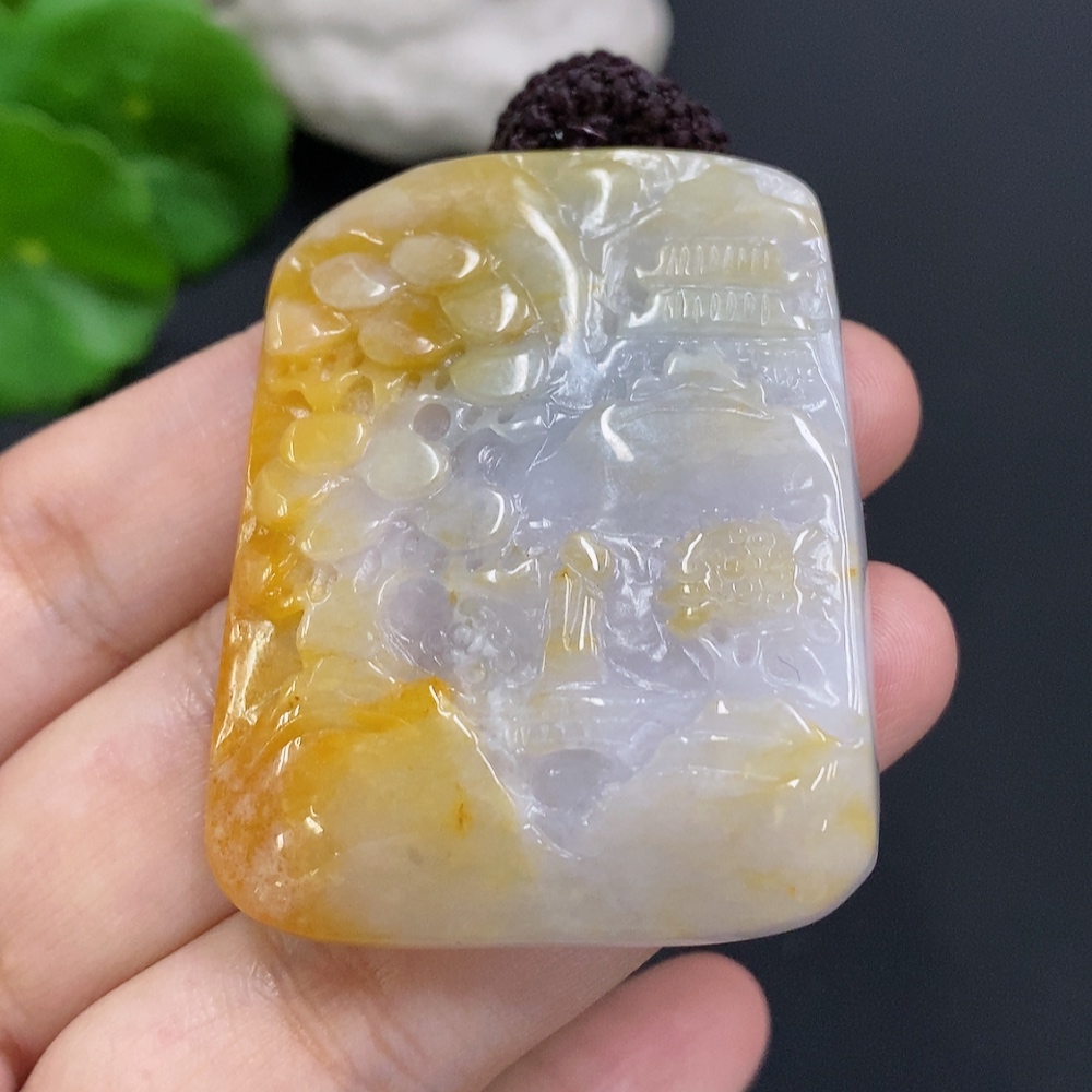 Jadeite landscape pendant with cord, total weight approximately 42.5g (color origin undetermined)