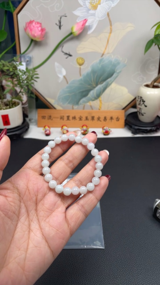 Jadeite Bracelet Approx. 8mm Beads Total Weight About 19g