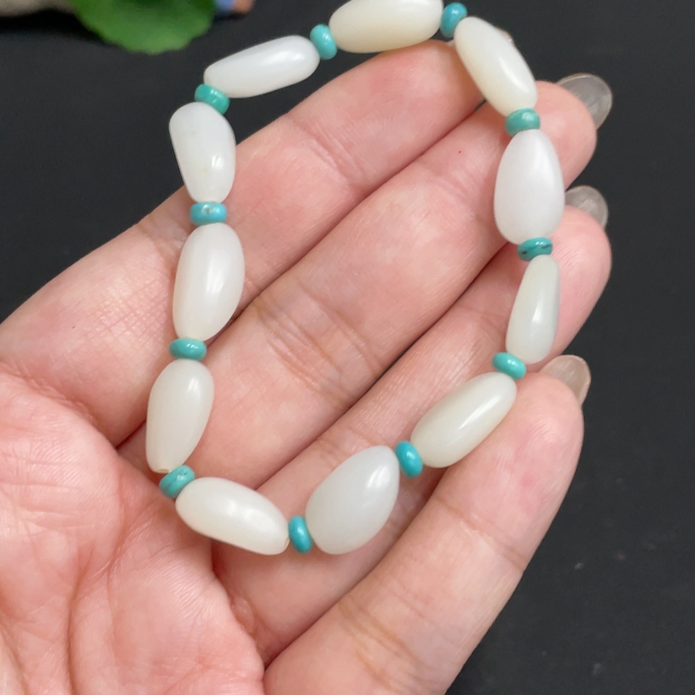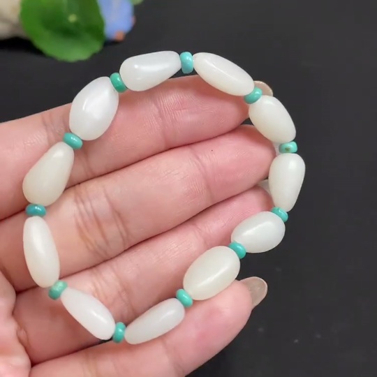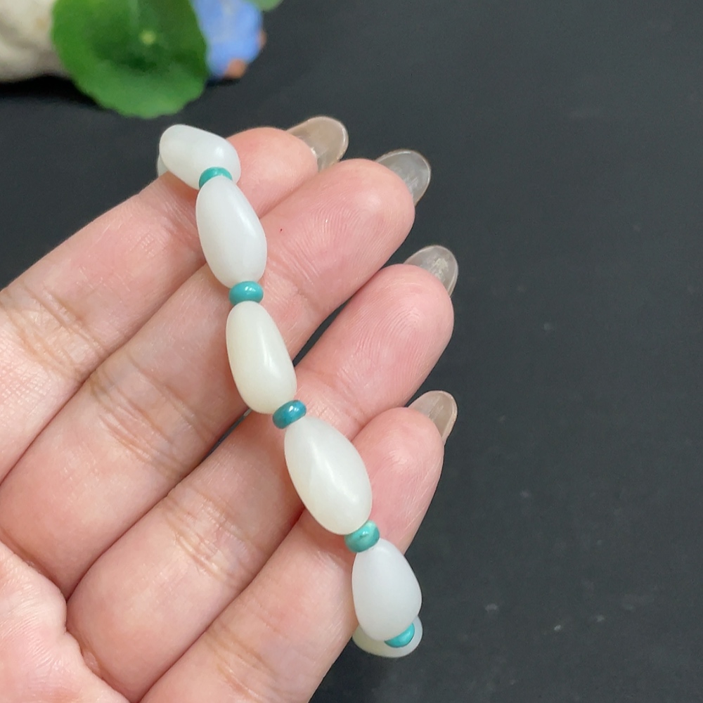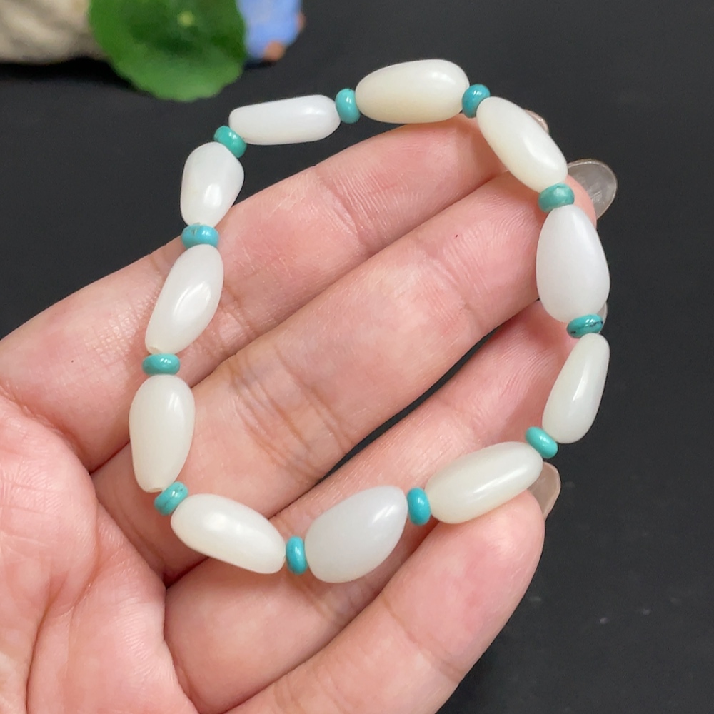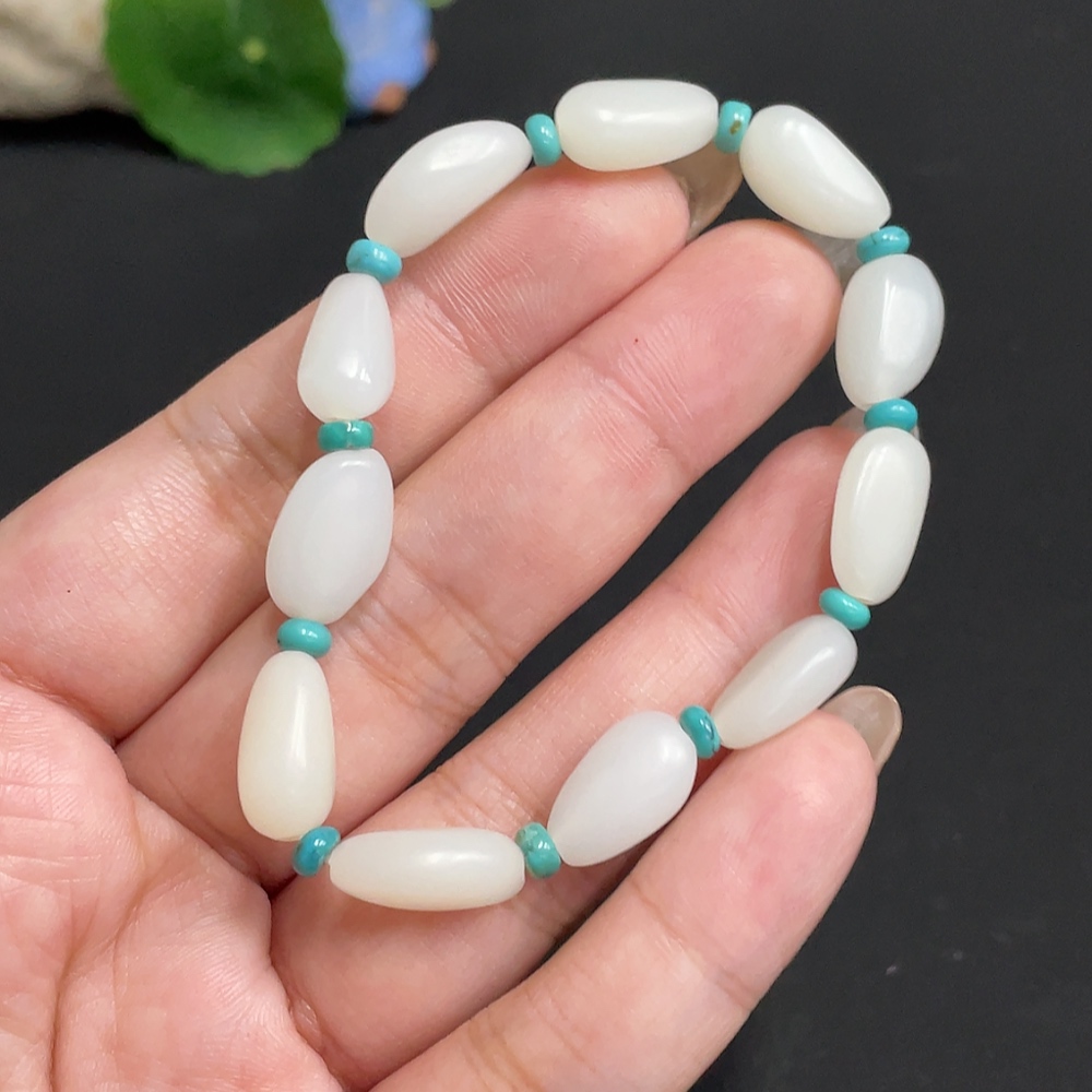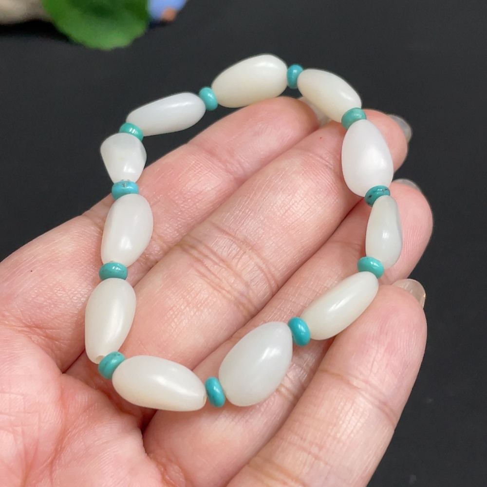 Hetian Jade Bracelet, Non-Hetian Jade Beads, Total Weight Approx. 14g
