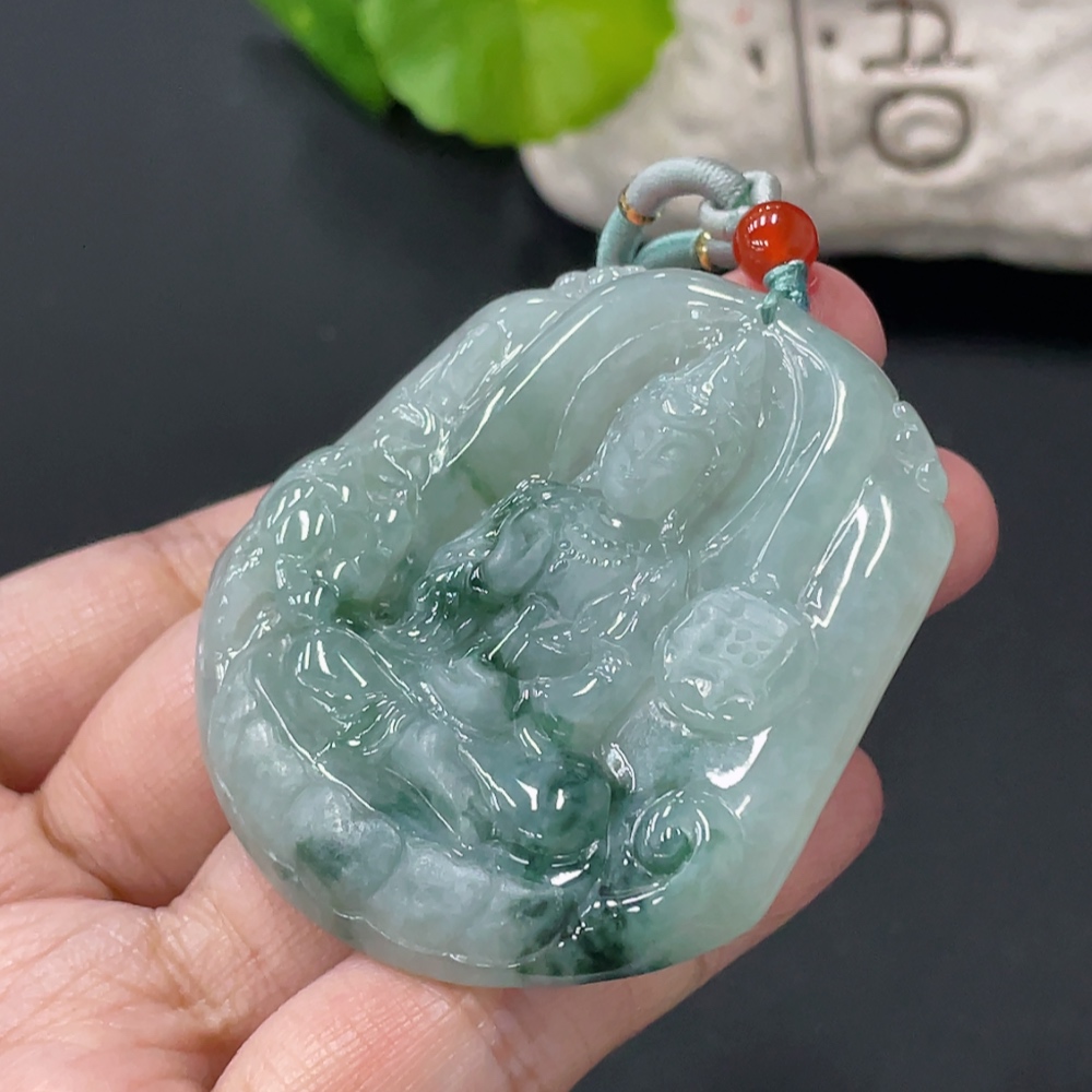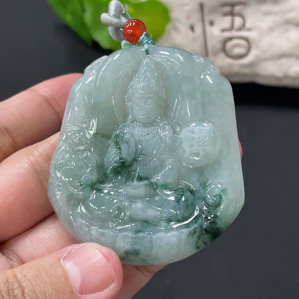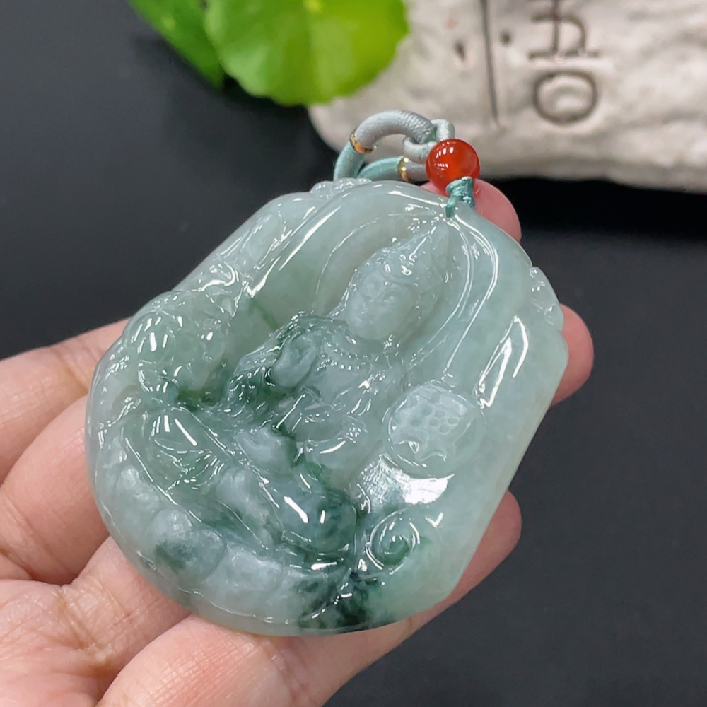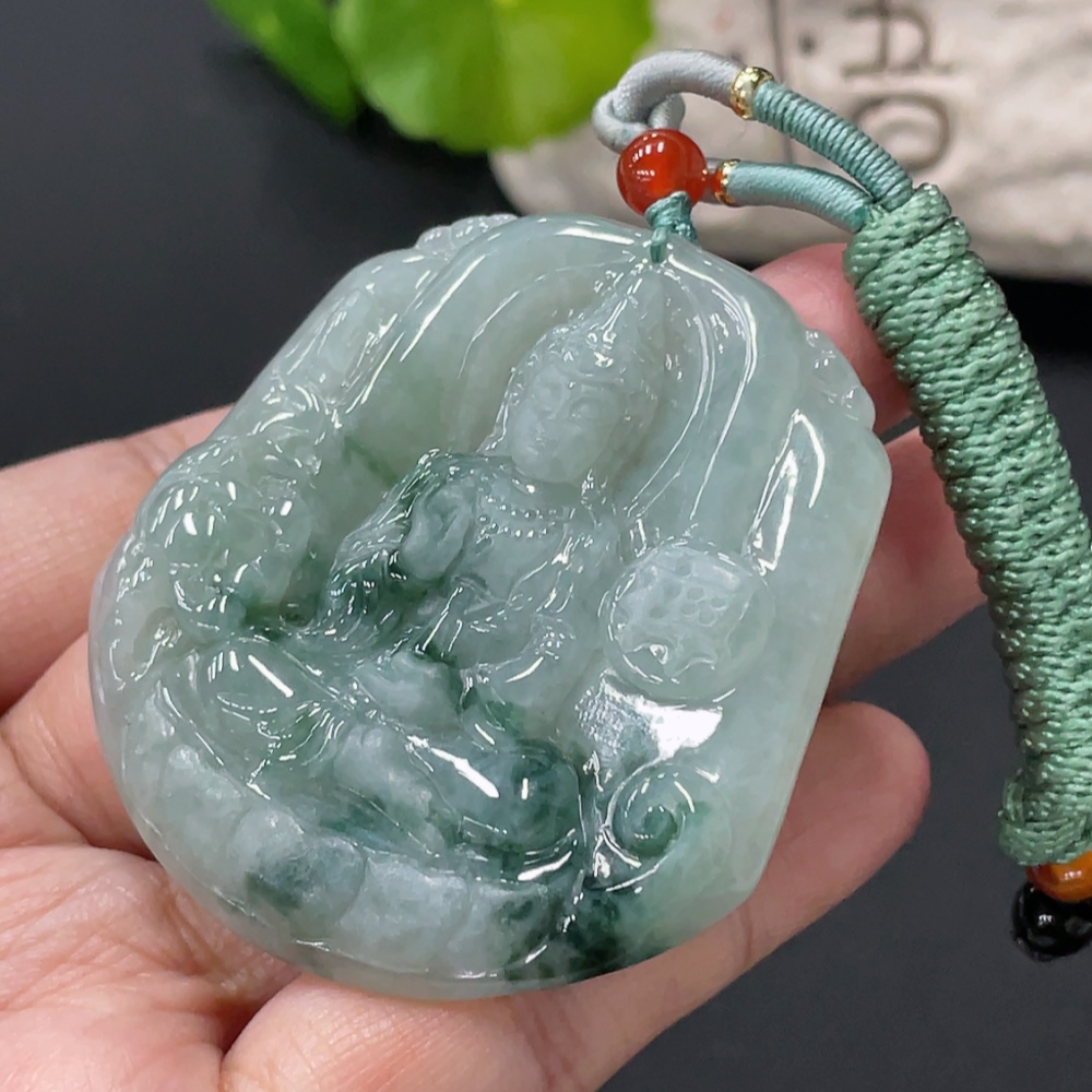 Jadeite Guanyin Pendant Plaque Total Weight Approx. 33.86g With Non-Grade A Beads