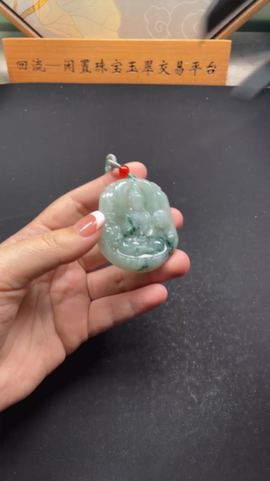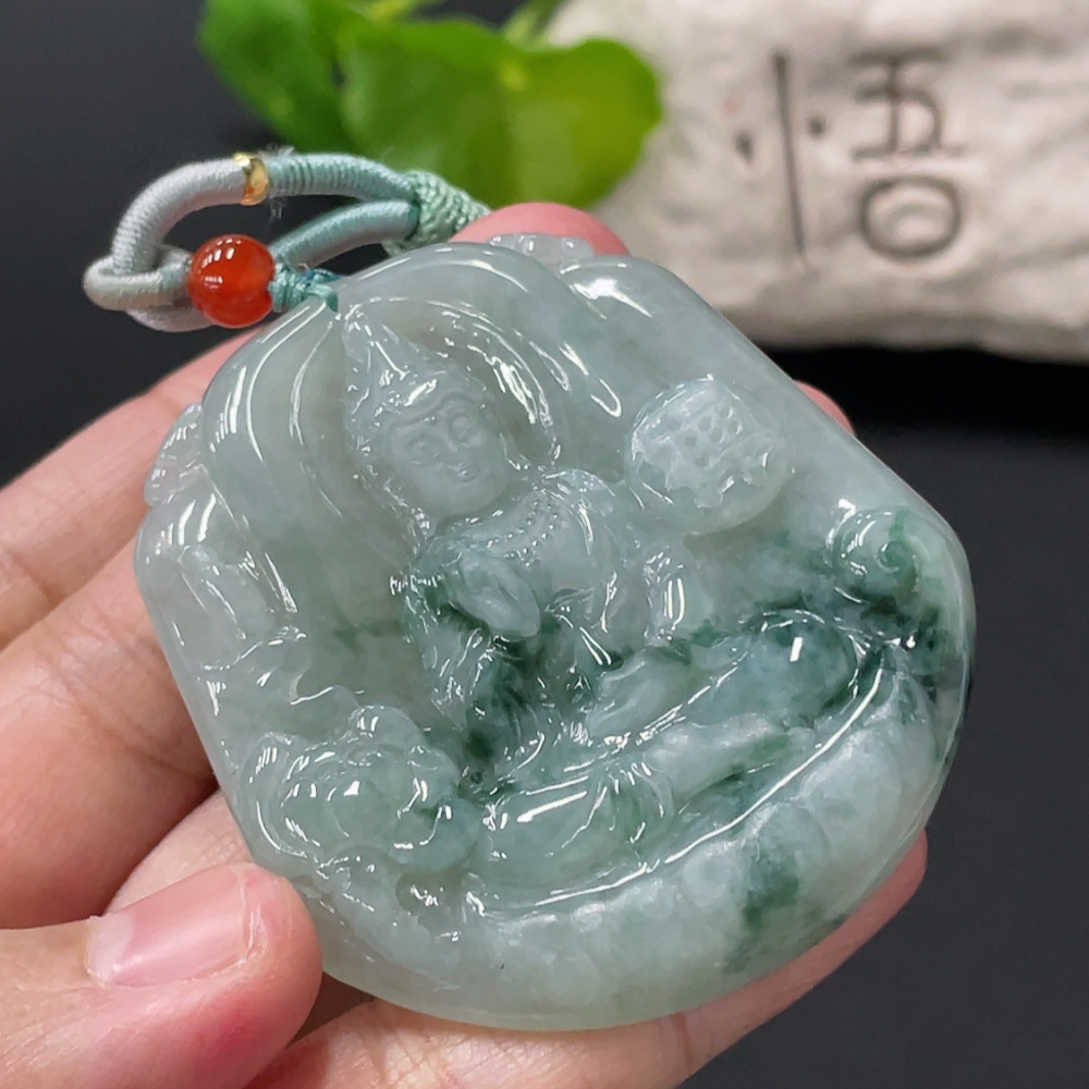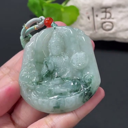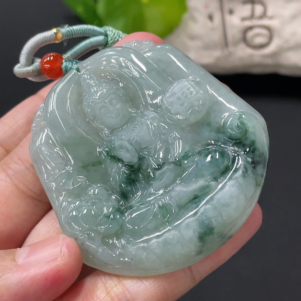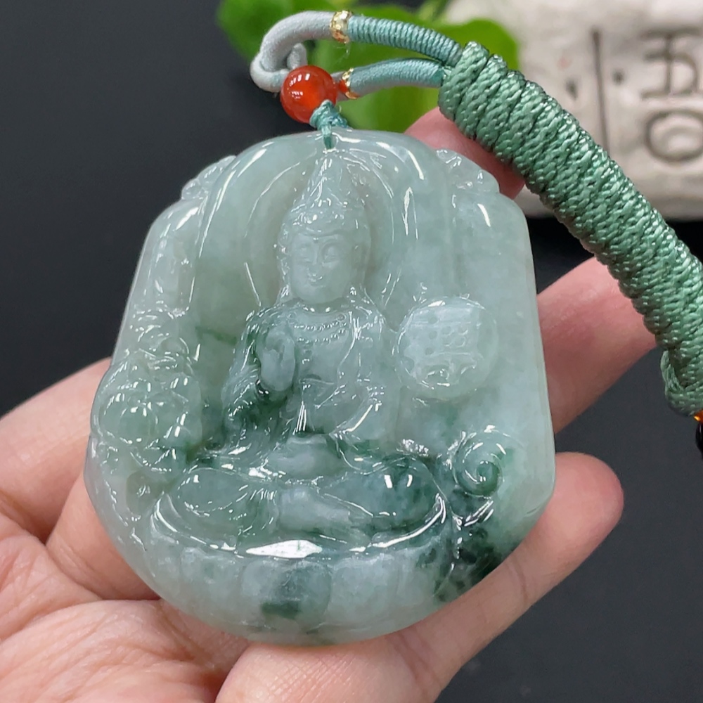 Jadeite Guanyin Pendant Plaque Total Weight Approx. 33.86g With Non-Grade A Beads