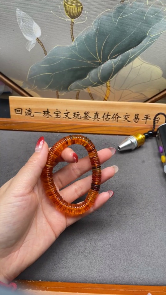 Amber Beeswax Bracelet, Total Weight Approx. 13.47g, Size About 9.6mm