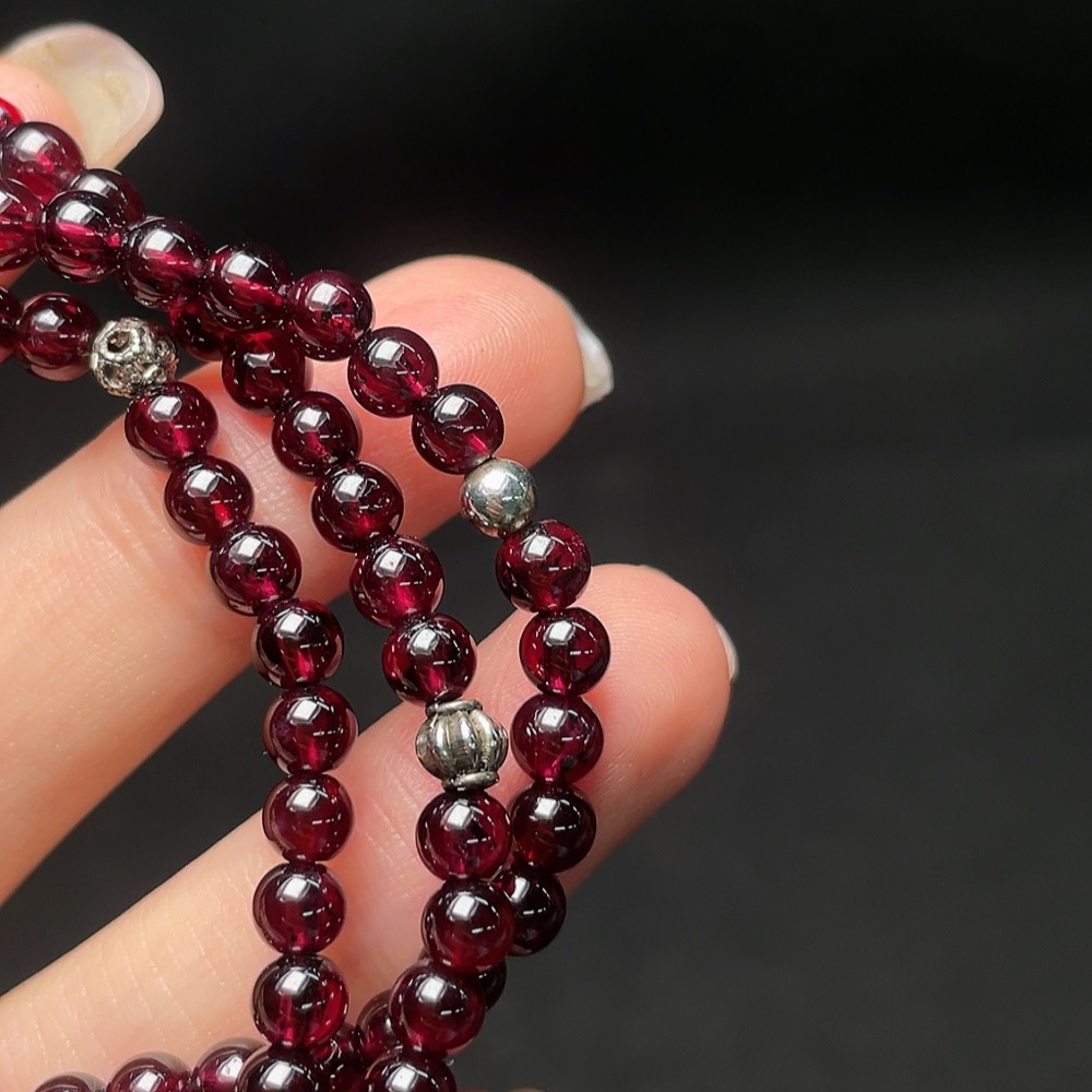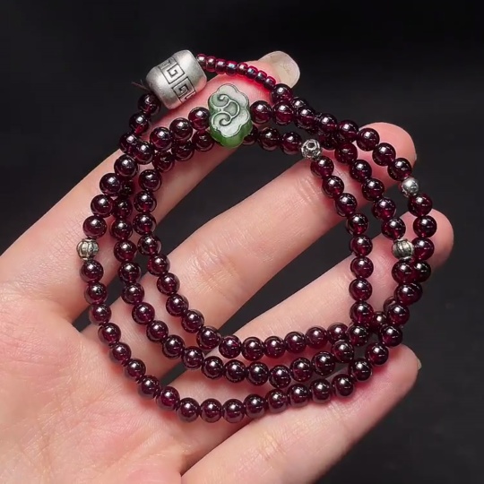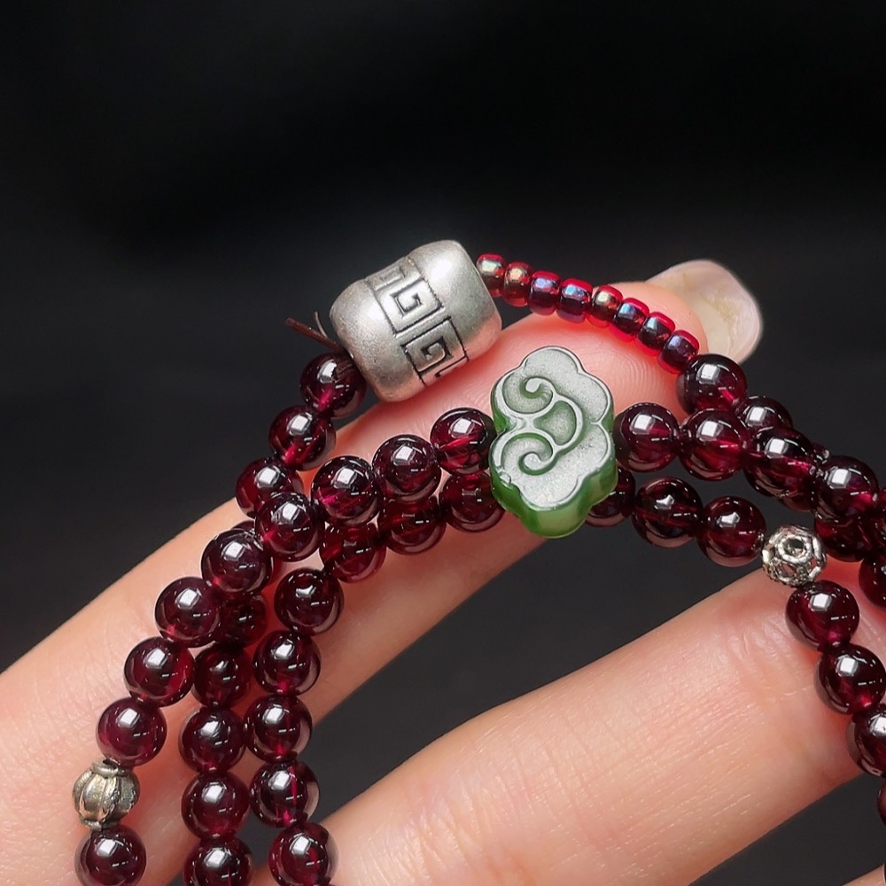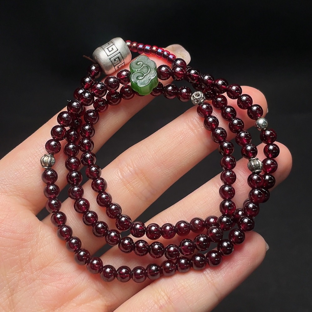 Garnet Bead Necklace with Hetian Jade, Non-Gold, Total Weight Approx. 24g, Size About 4.3mm