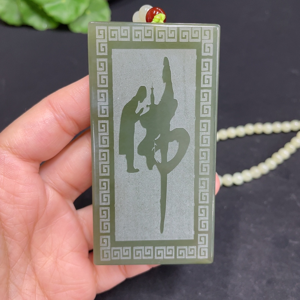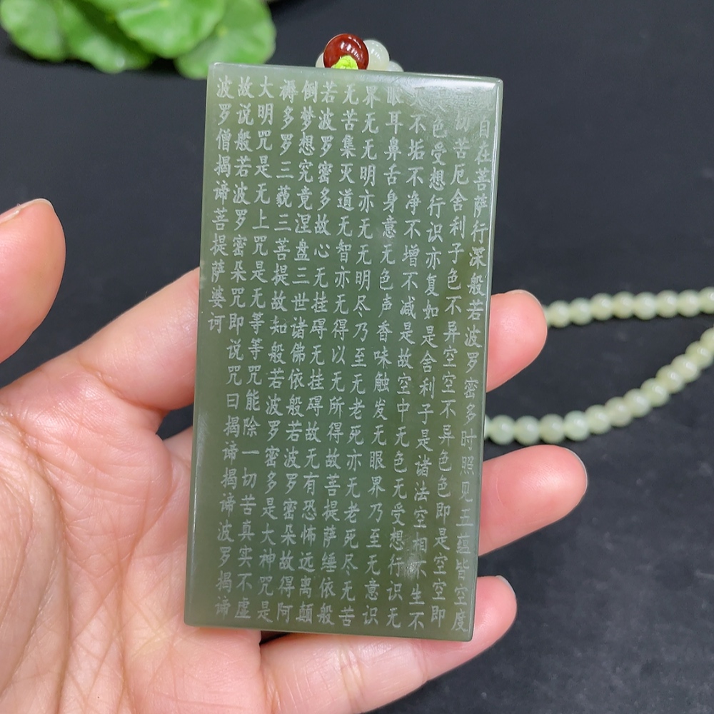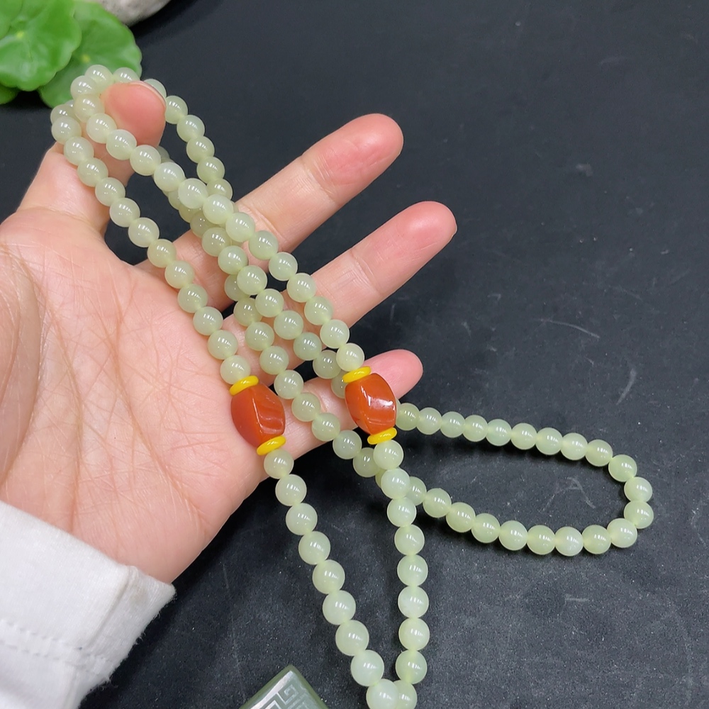 Hetian Jade Pendant Buddha Plaque Total Weight Approx. (Including Chain) 119.1g with Non-Hetian Jade Beads
