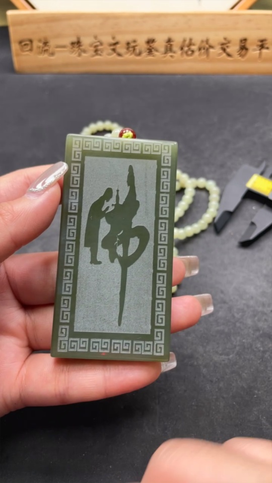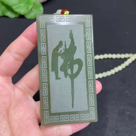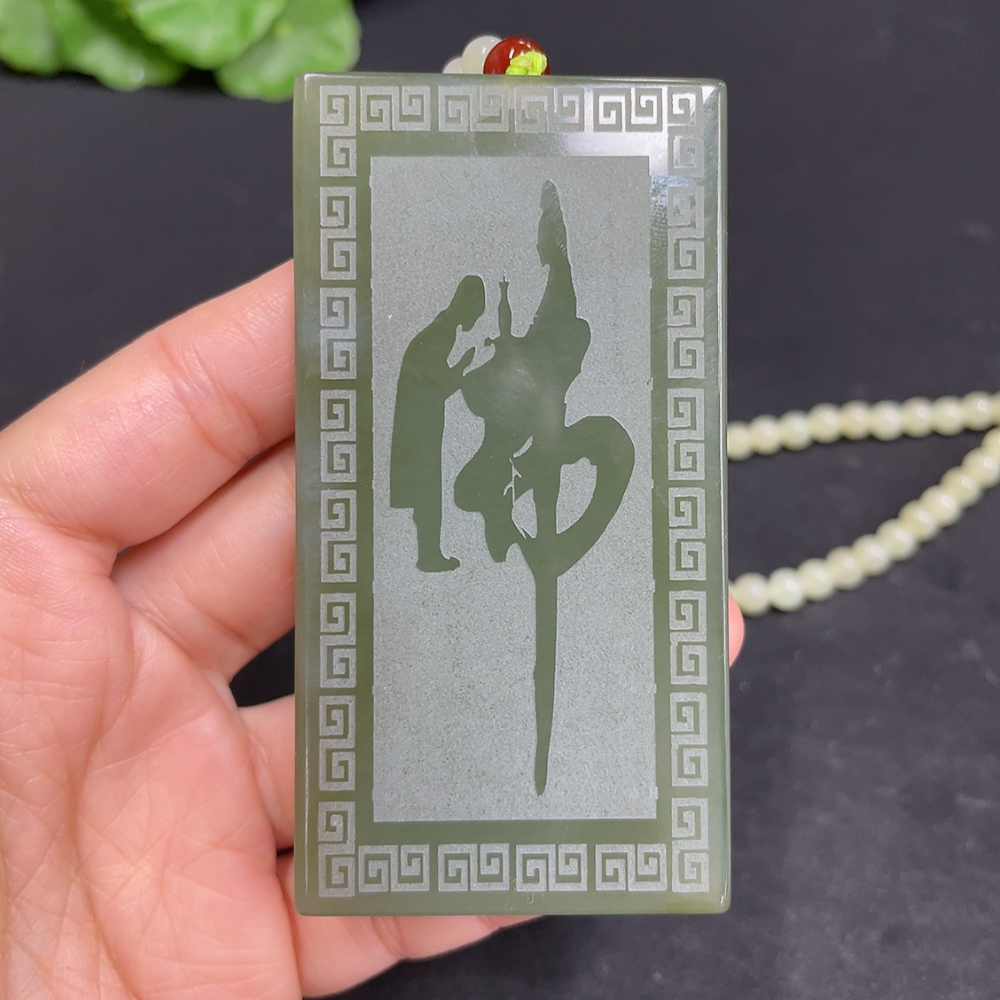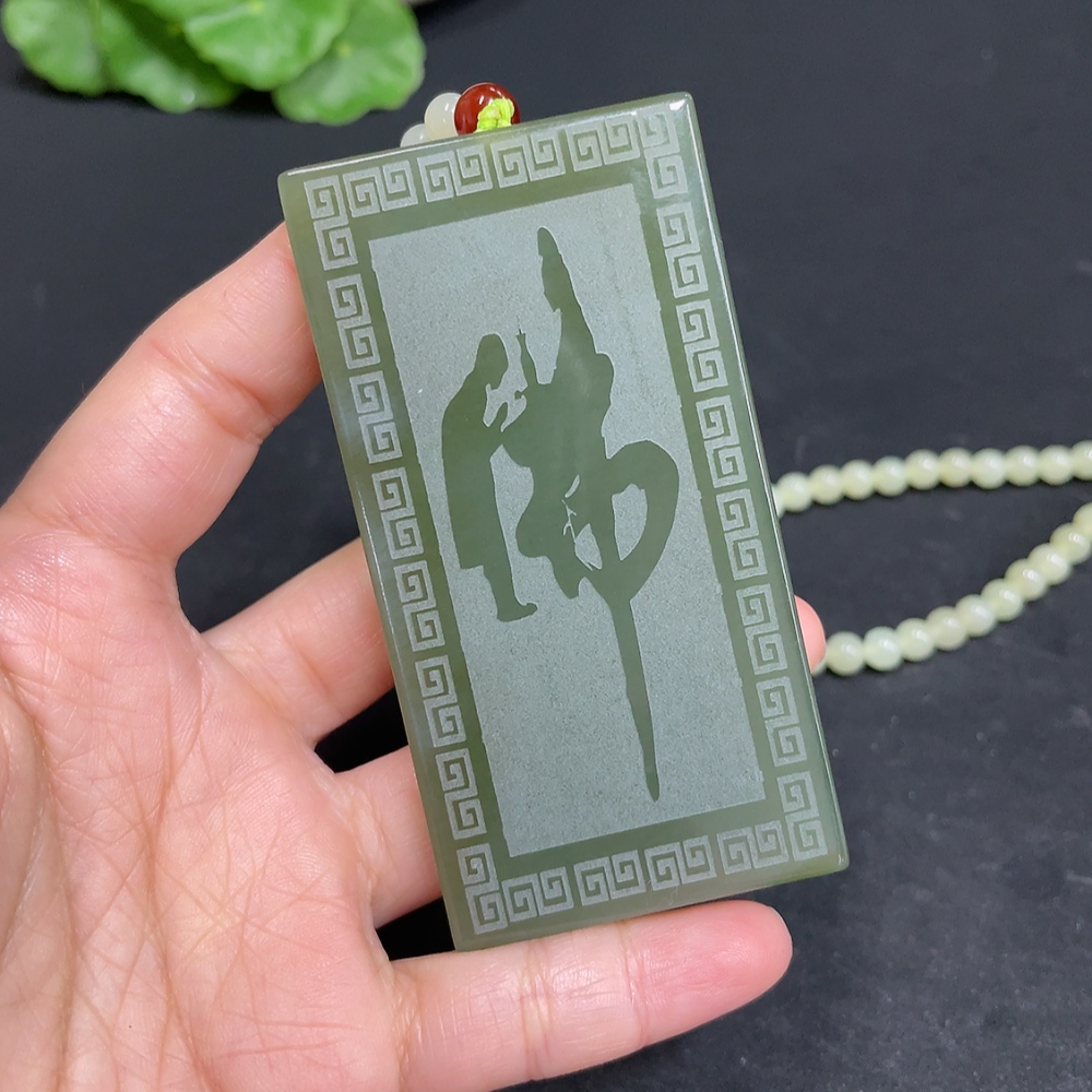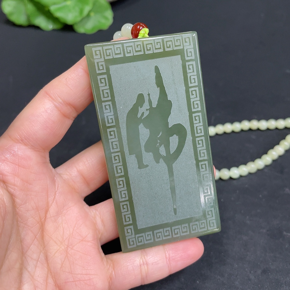 Hetian Jade Pendant Buddha Plaque Total Weight Approx. (Including Chain) 119.1g with Non-Hetian Jade Beads