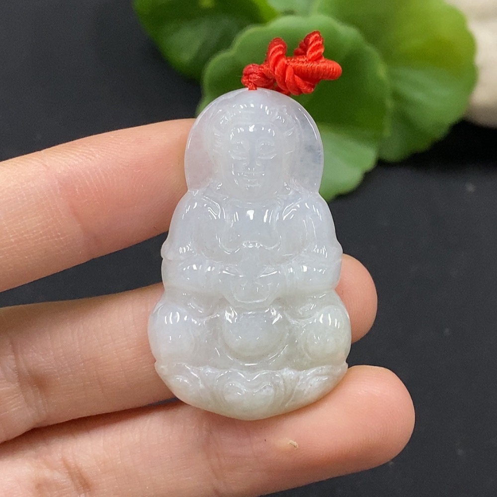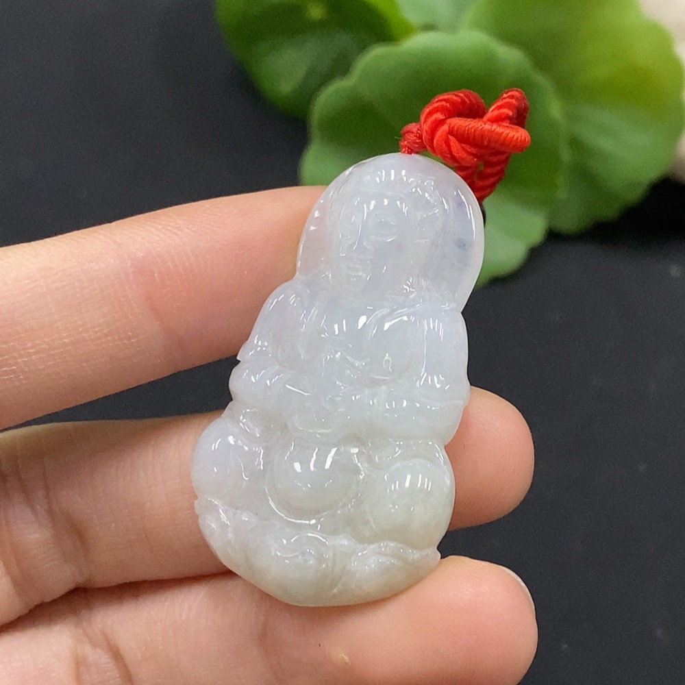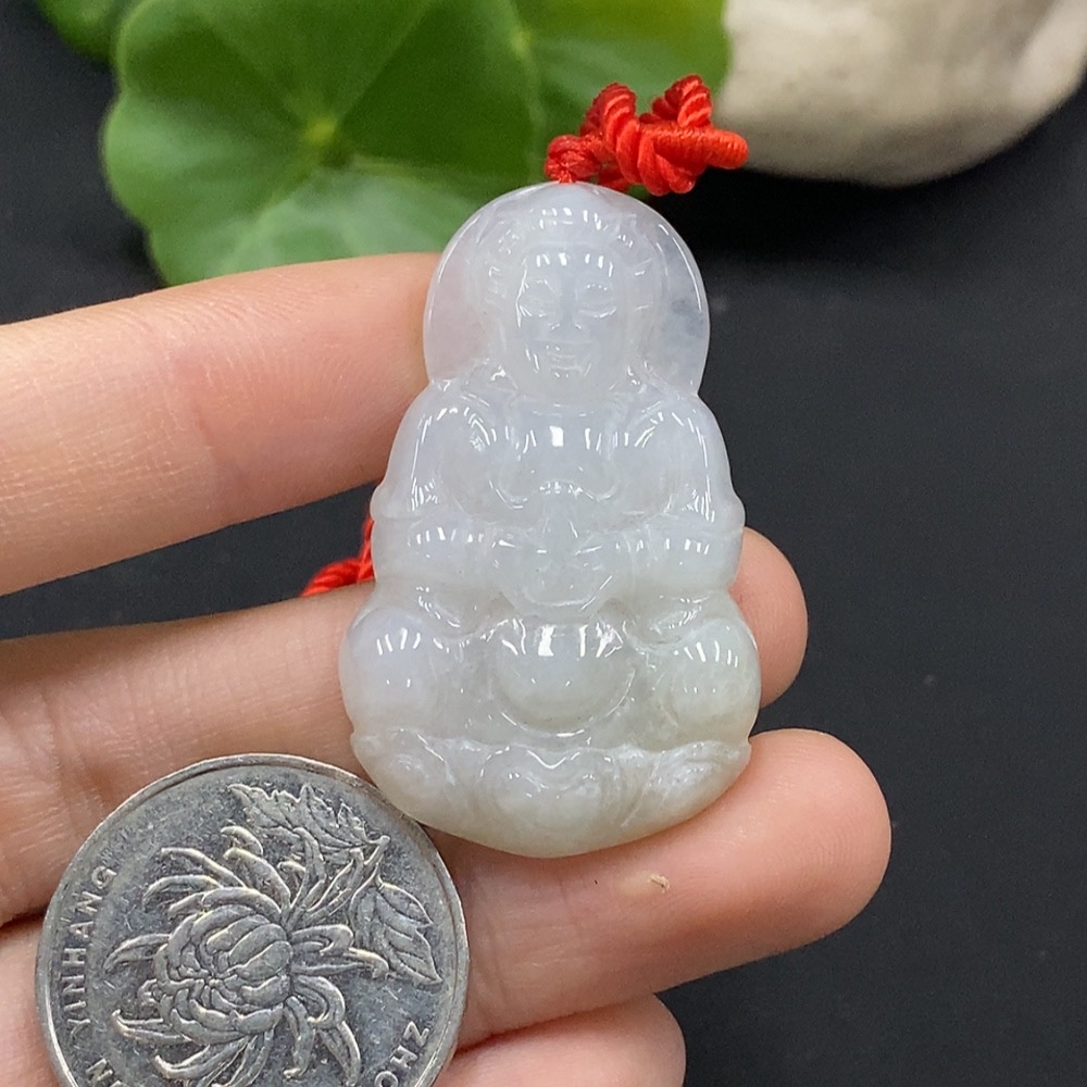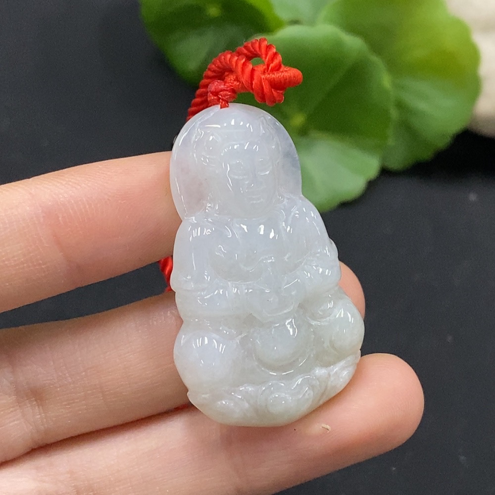 Jadeite Guanyin Pendant with Non-A Grade Beads, Total Weight Approx. 13.69g