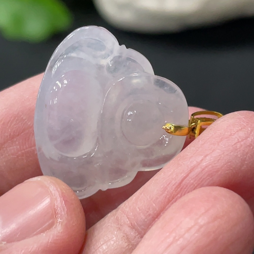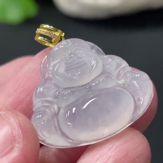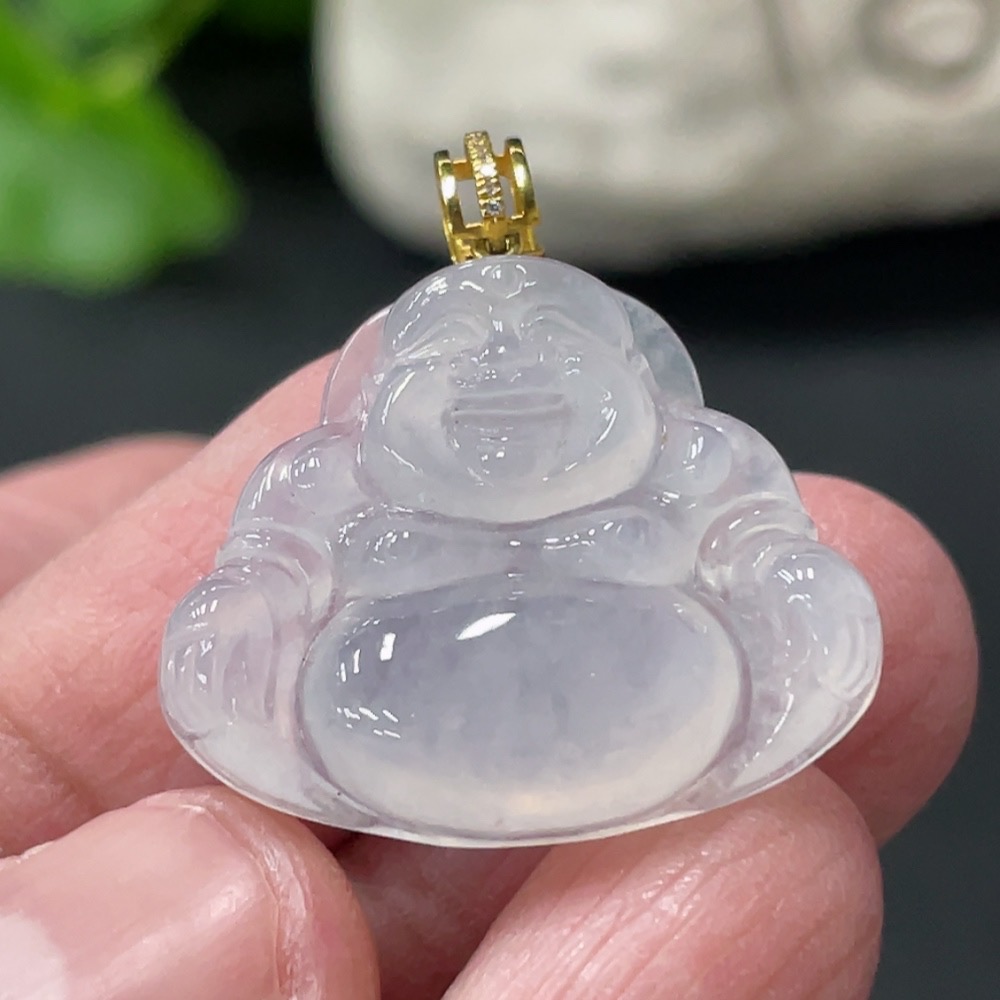 Jadeite Buddha Pendant, Total Weight Approx. 4.23g, 18K Gold Clasp with Diamond Accents