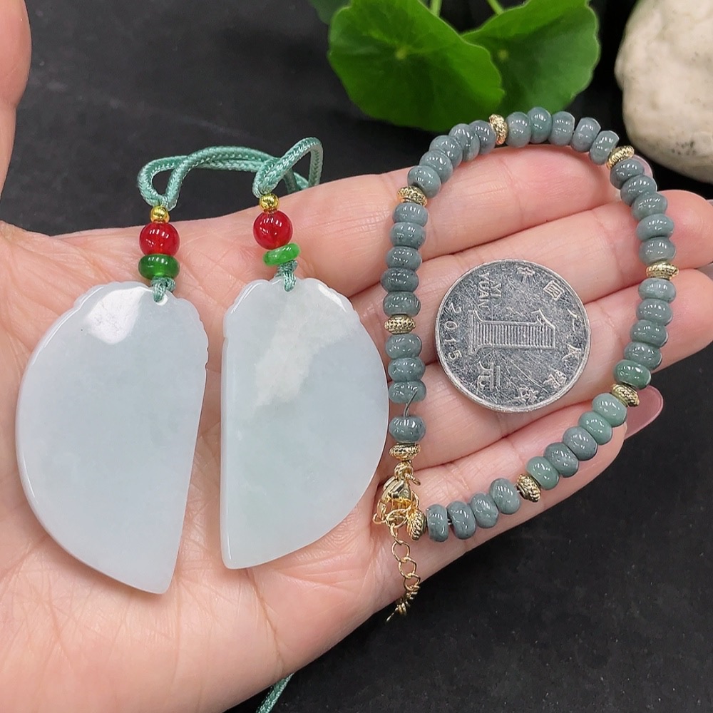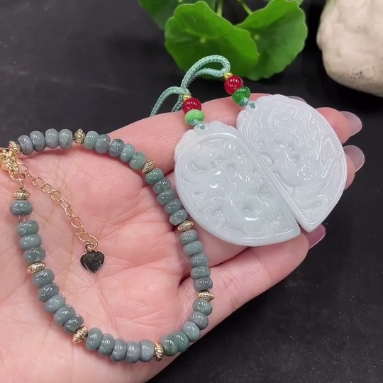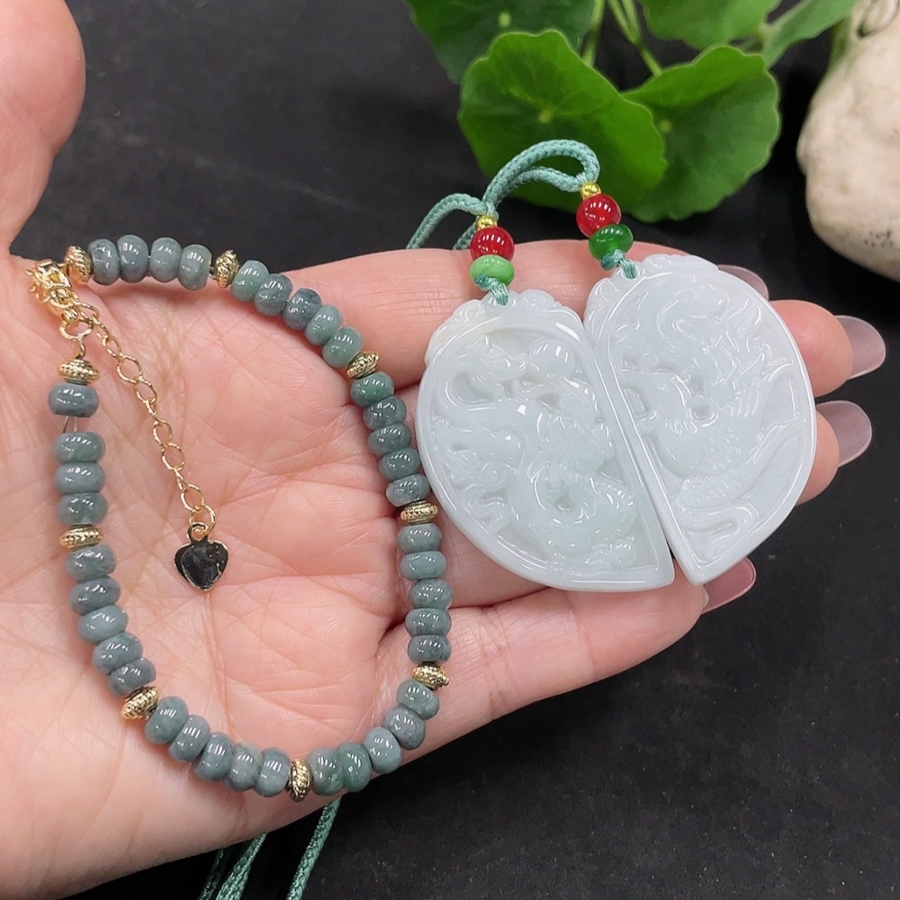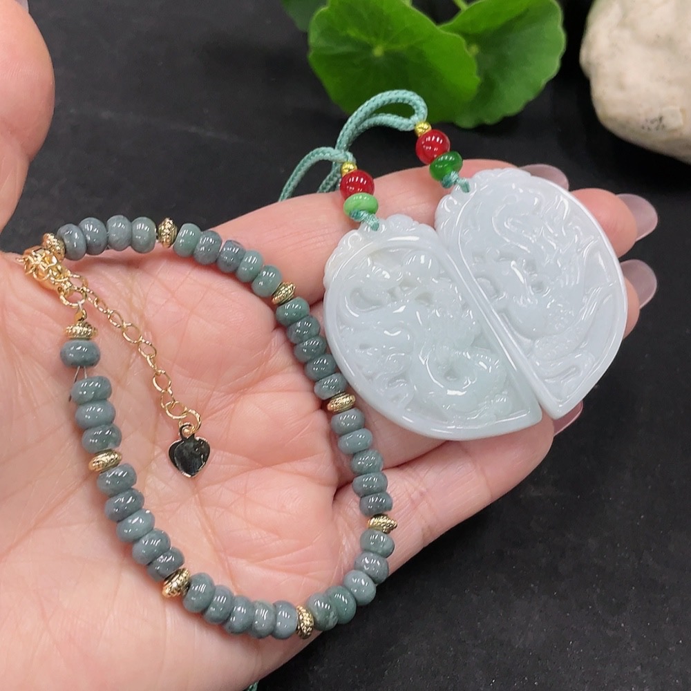 Jadeite Pendant + Bracelet Sell as a Lot (Non-Gold Inlaid)