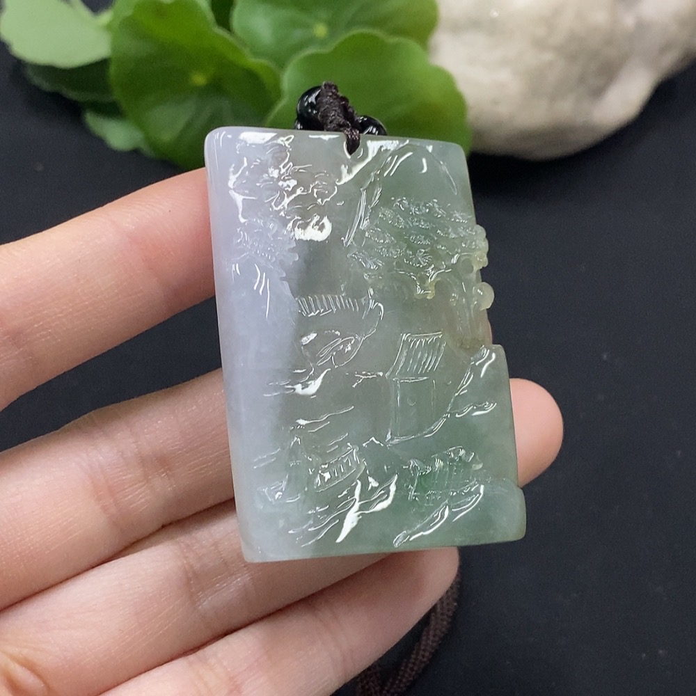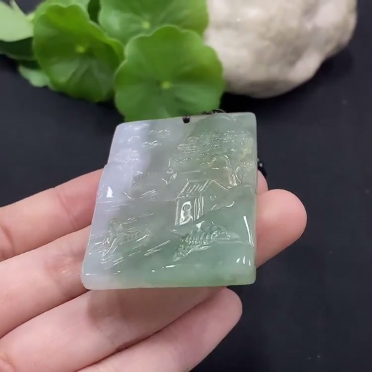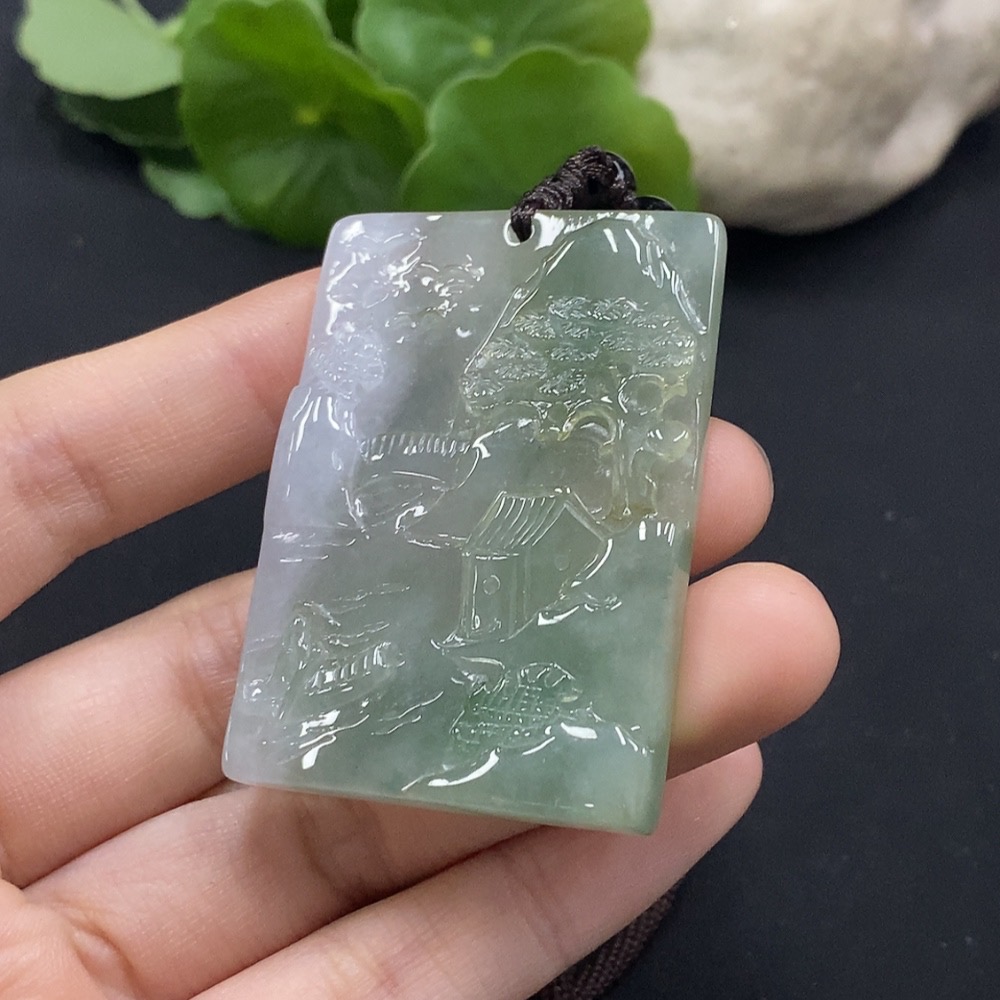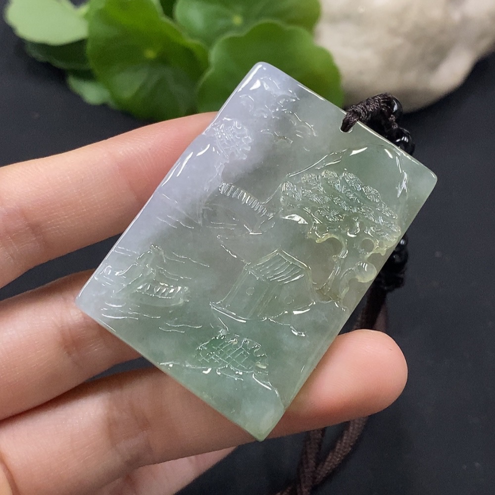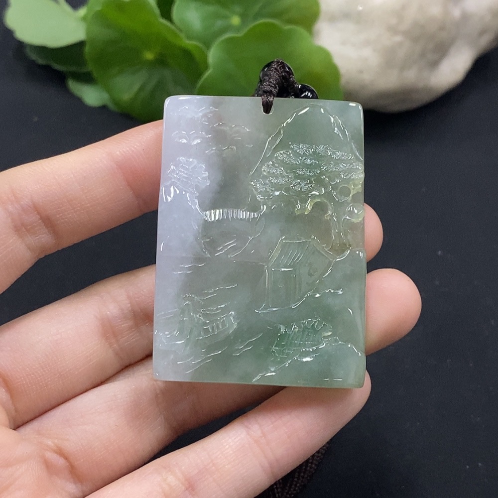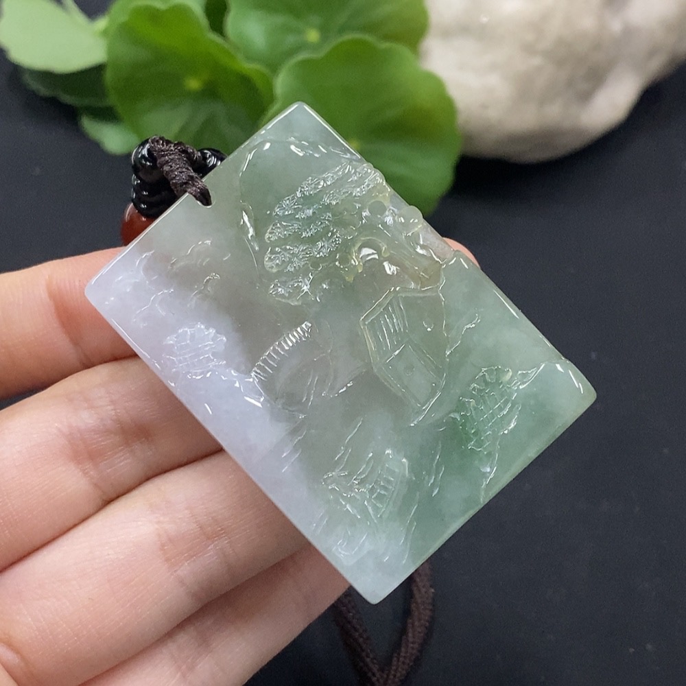 Jadeite Landscape Pendant Total Weight Approx. 35.9g (Including Rope Weight)