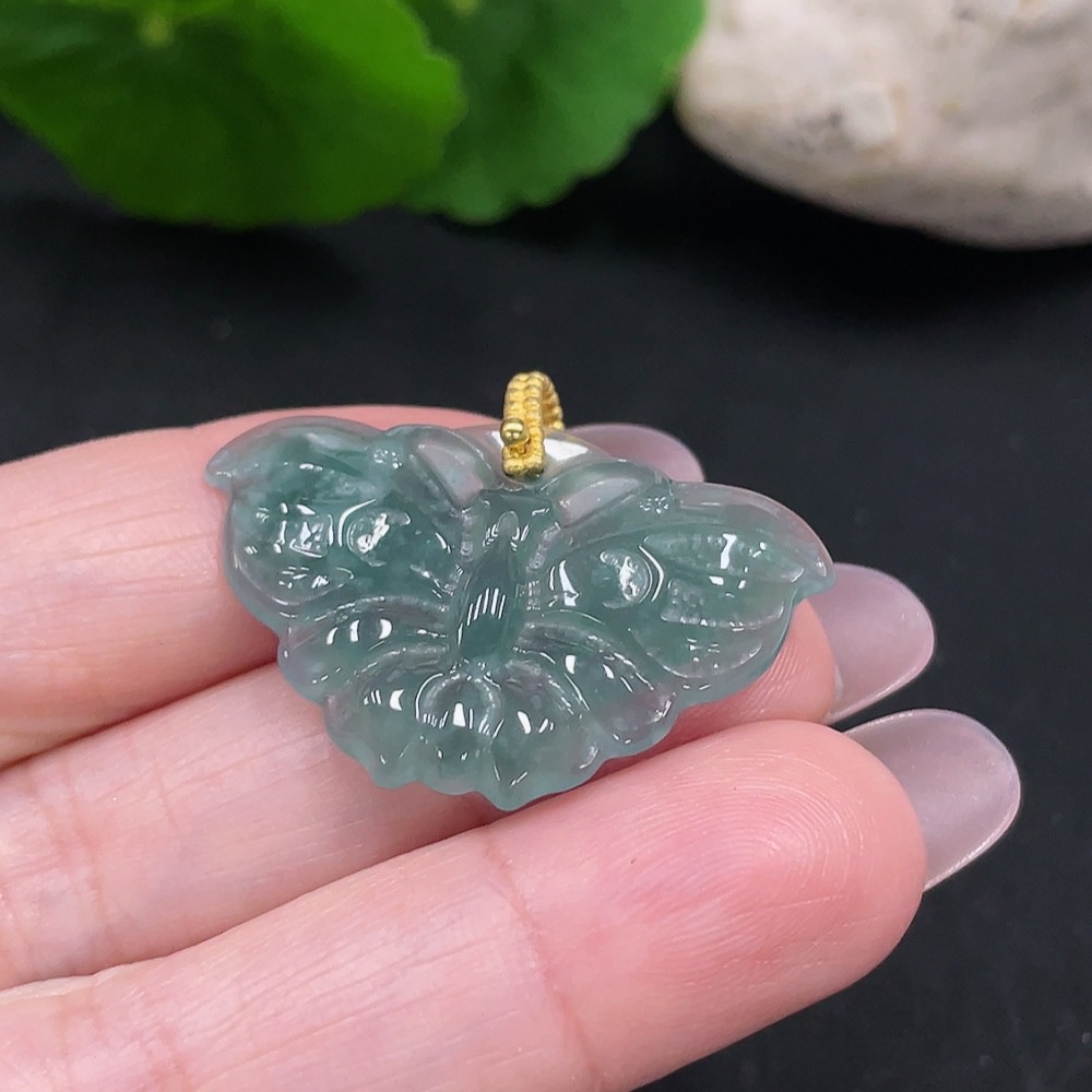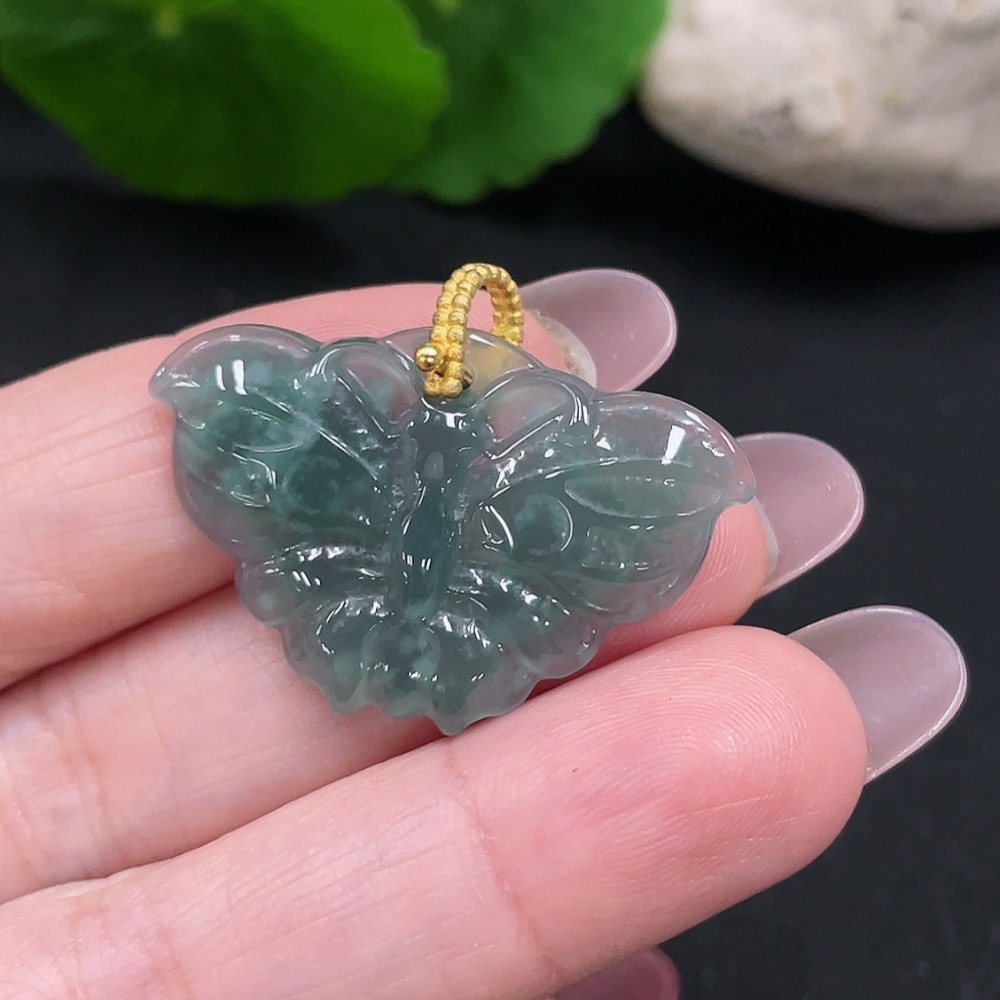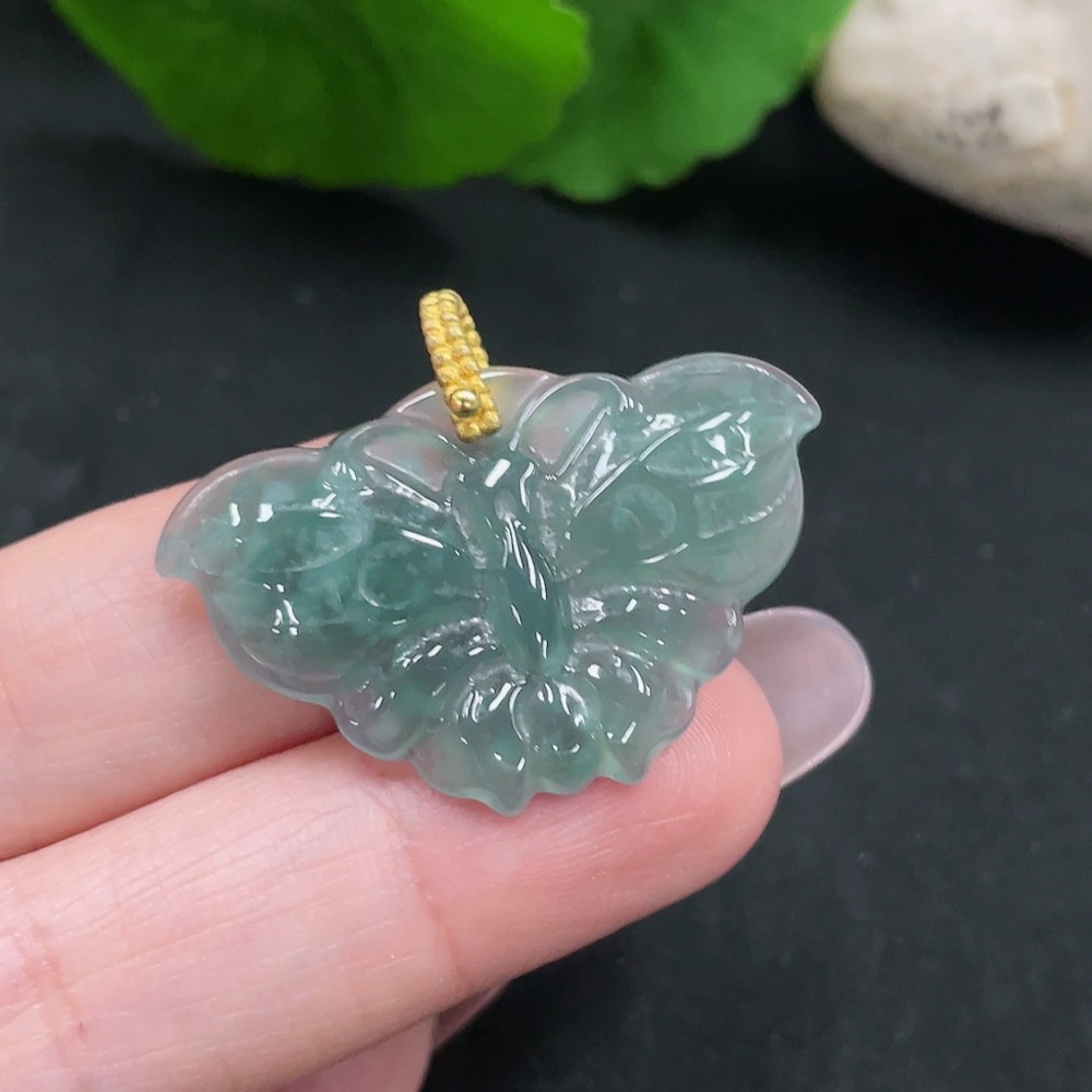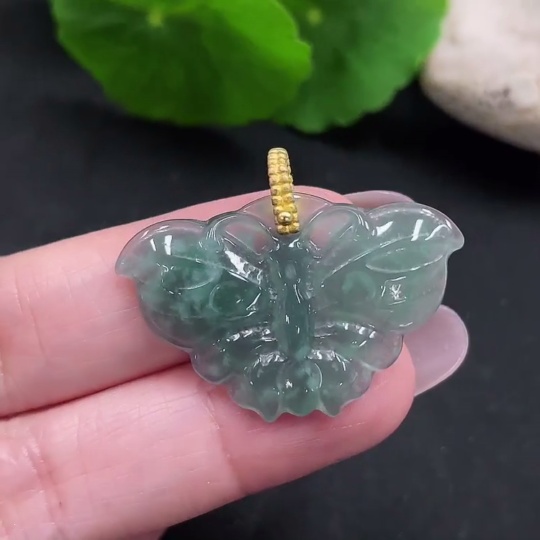Jadeite Butterfly Pendant Non-Gold Inlaid Total Weight Approx. 4.5g