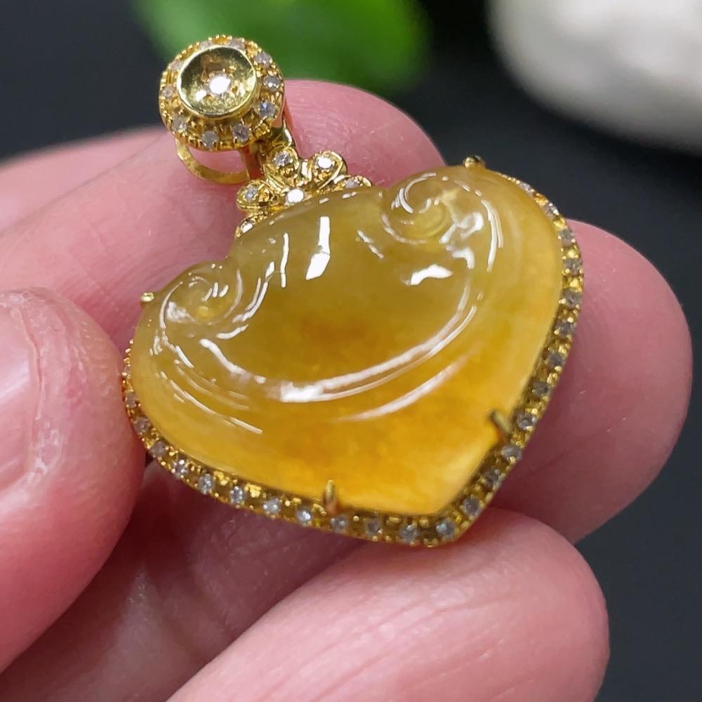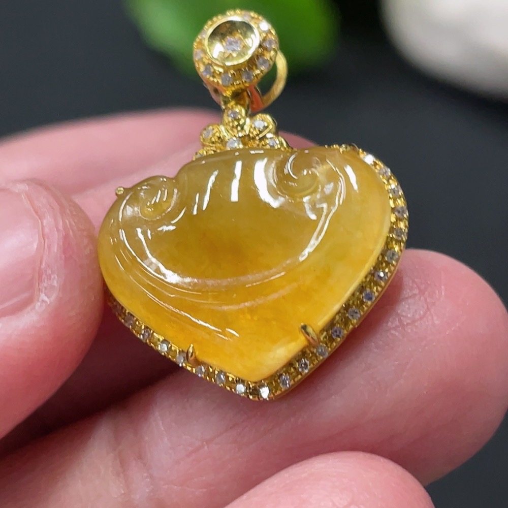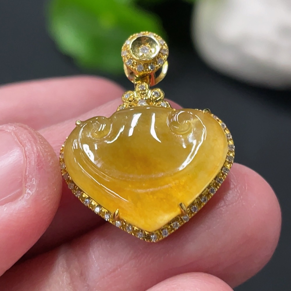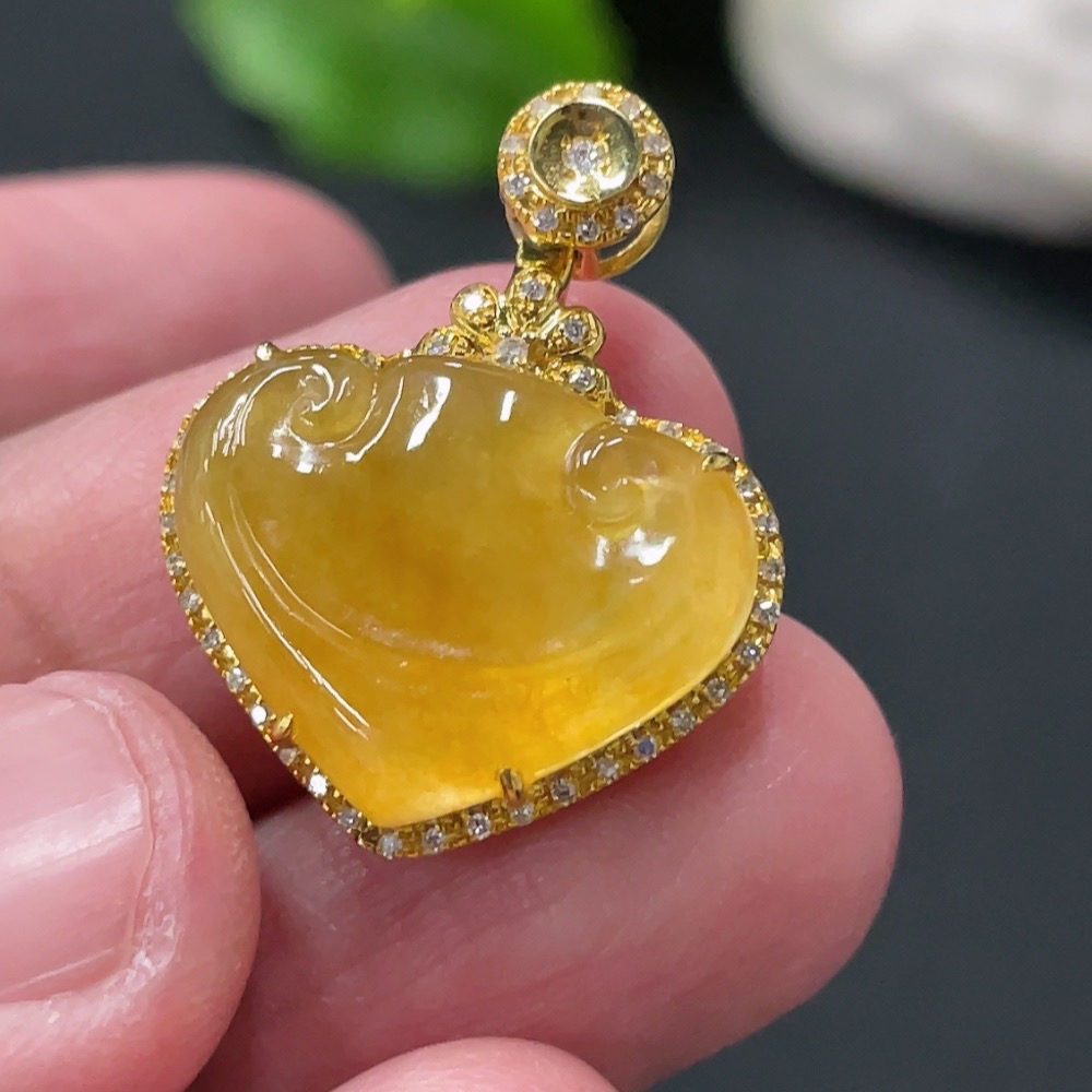 Jadeite Ruyi Inlaid Pendant with 18K Gold and Diamond Accents (Precious Metal May Affect Color) Total Weight Approximately 3.23g