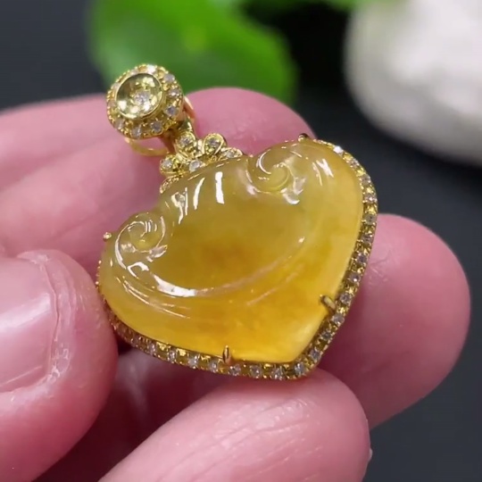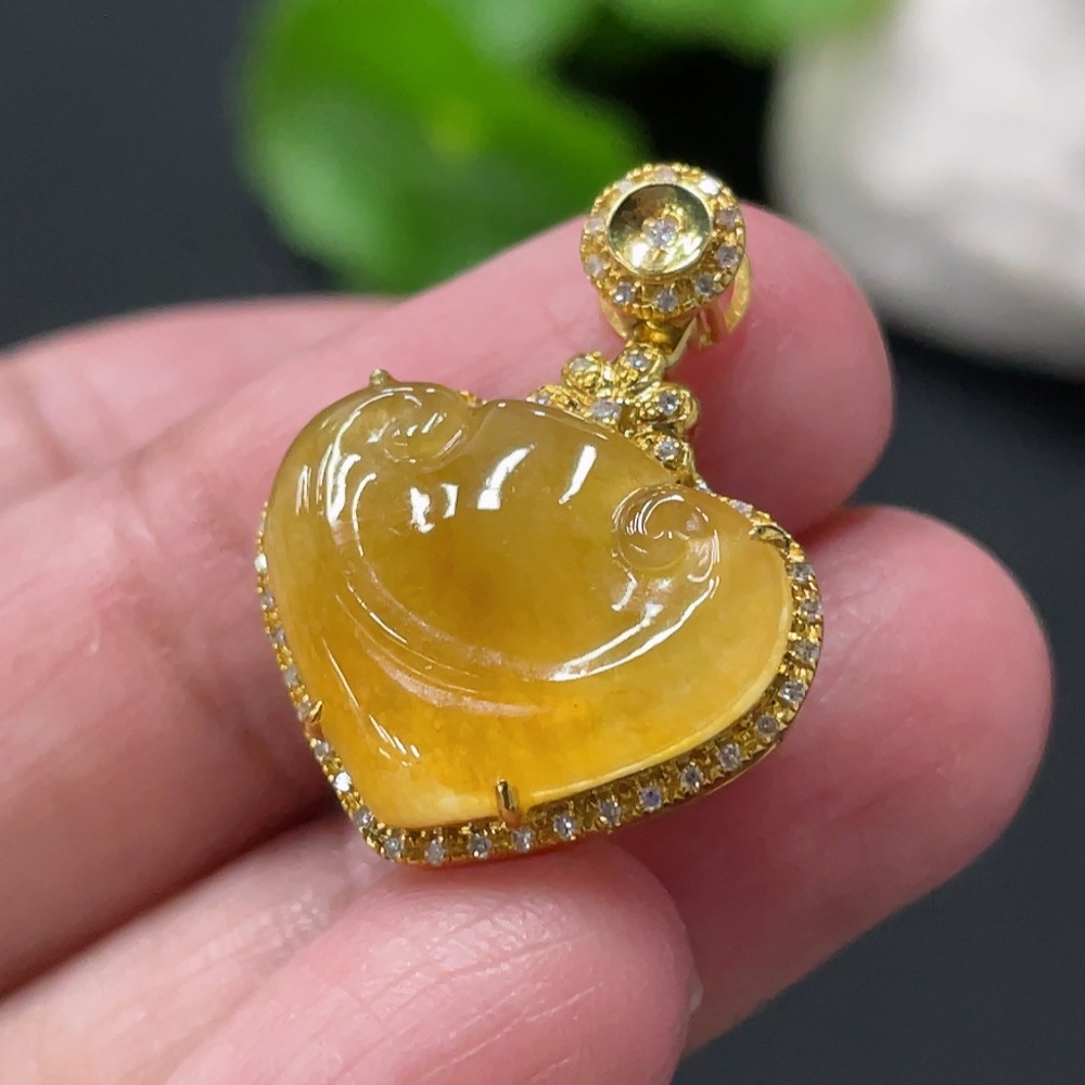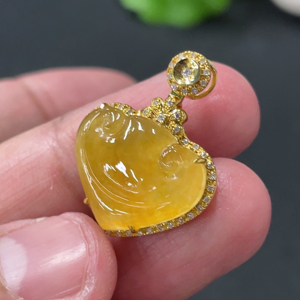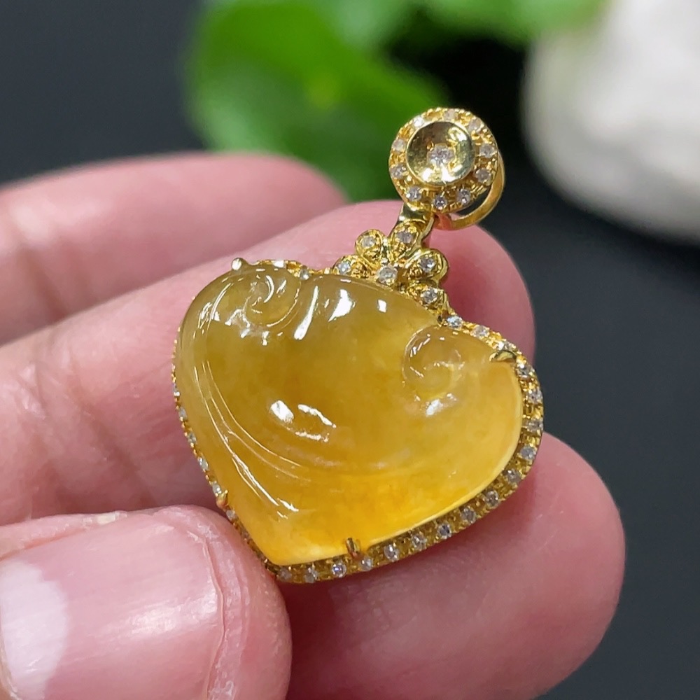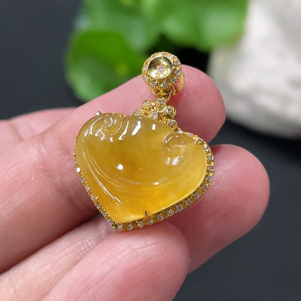 Jadeite Ruyi Inlaid Pendant with 18K Gold and Diamond Accents (Precious Metal May Affect Color) Total Weight Approximately 3.23g