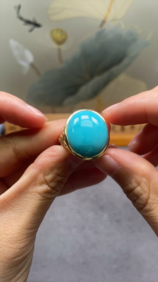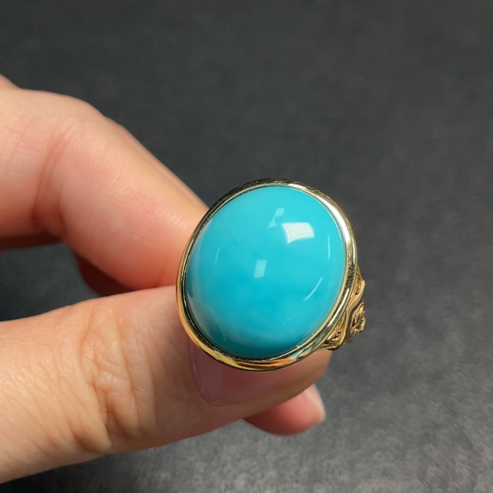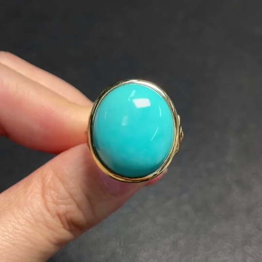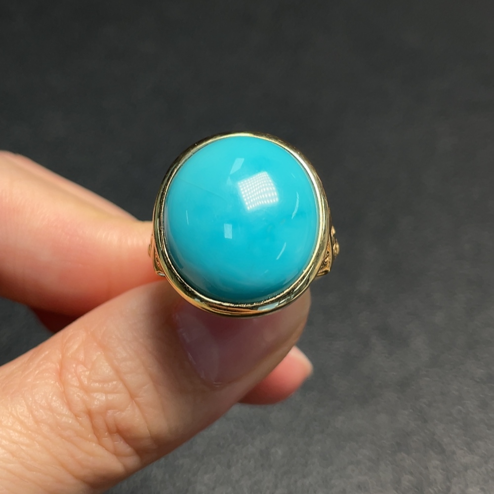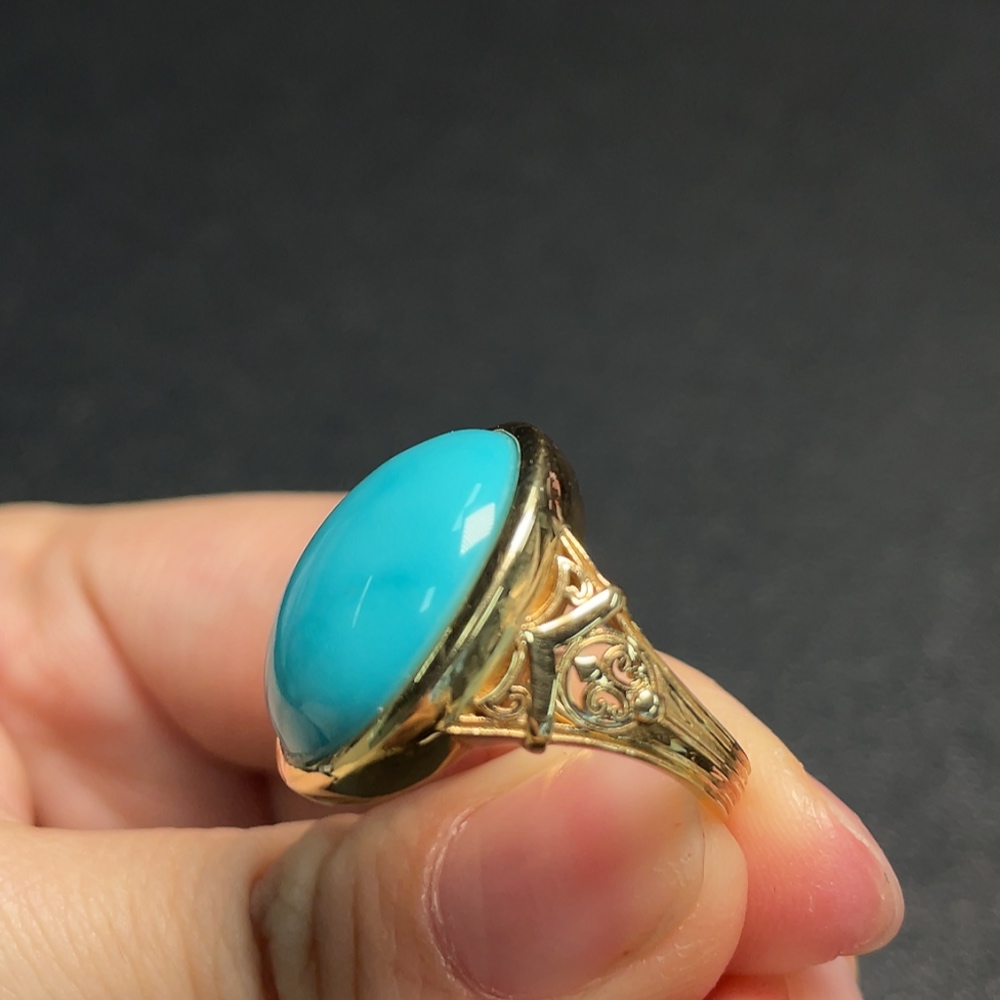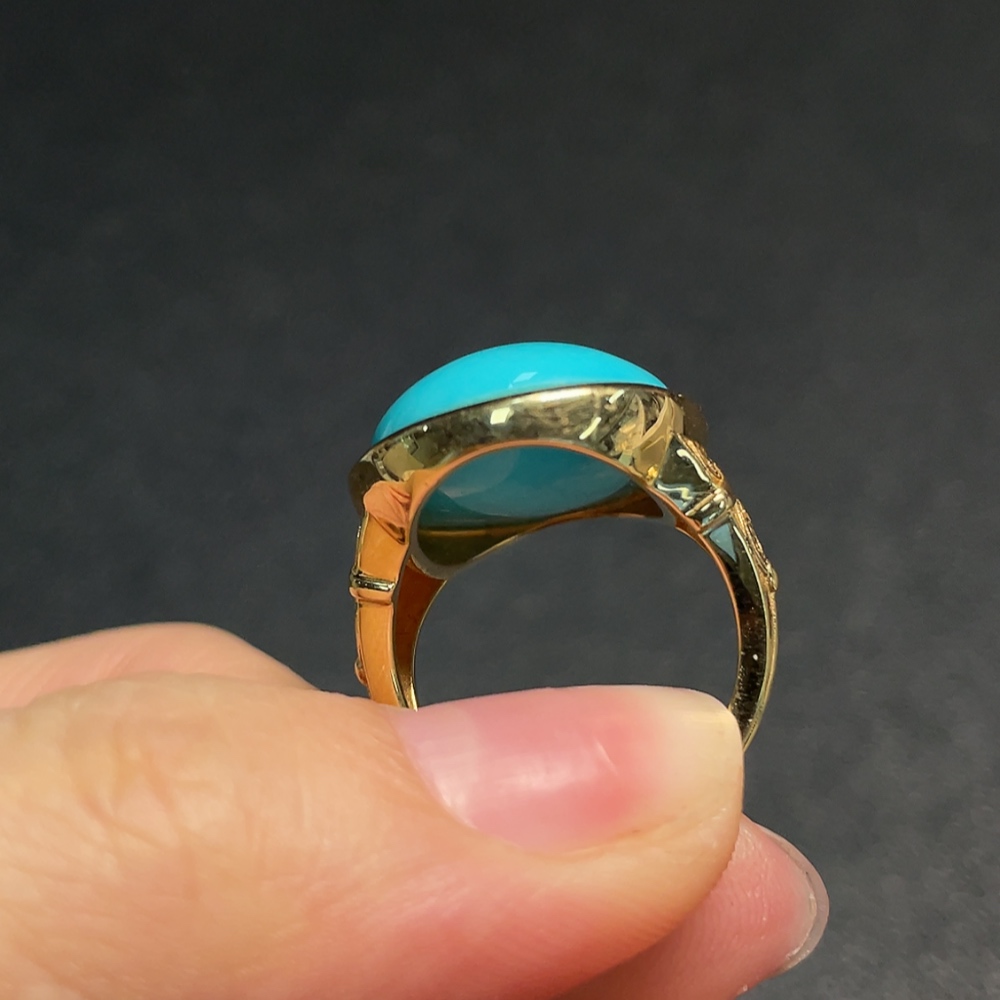 Turquoise Ring, Color Origin Undetermined, No Hallmark, Gold Content 18K, Total Weight Approx. 10.66g, Size 13