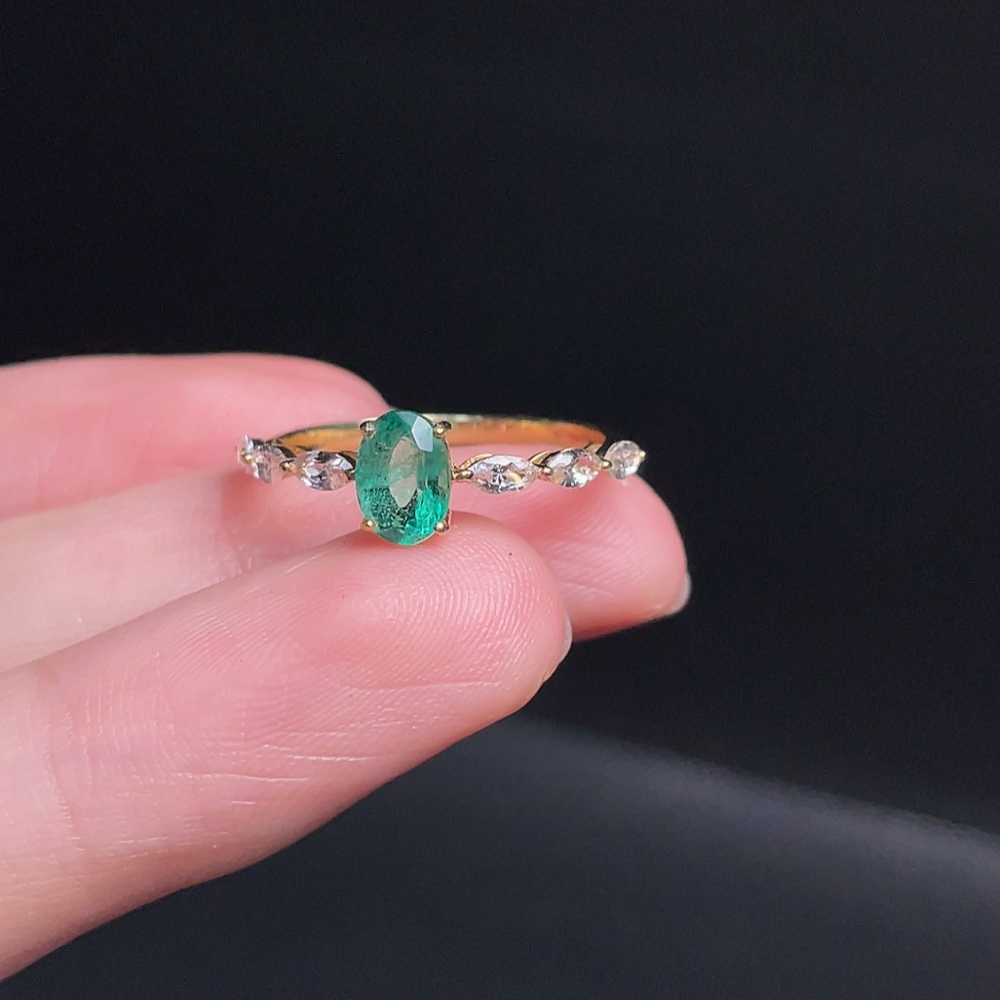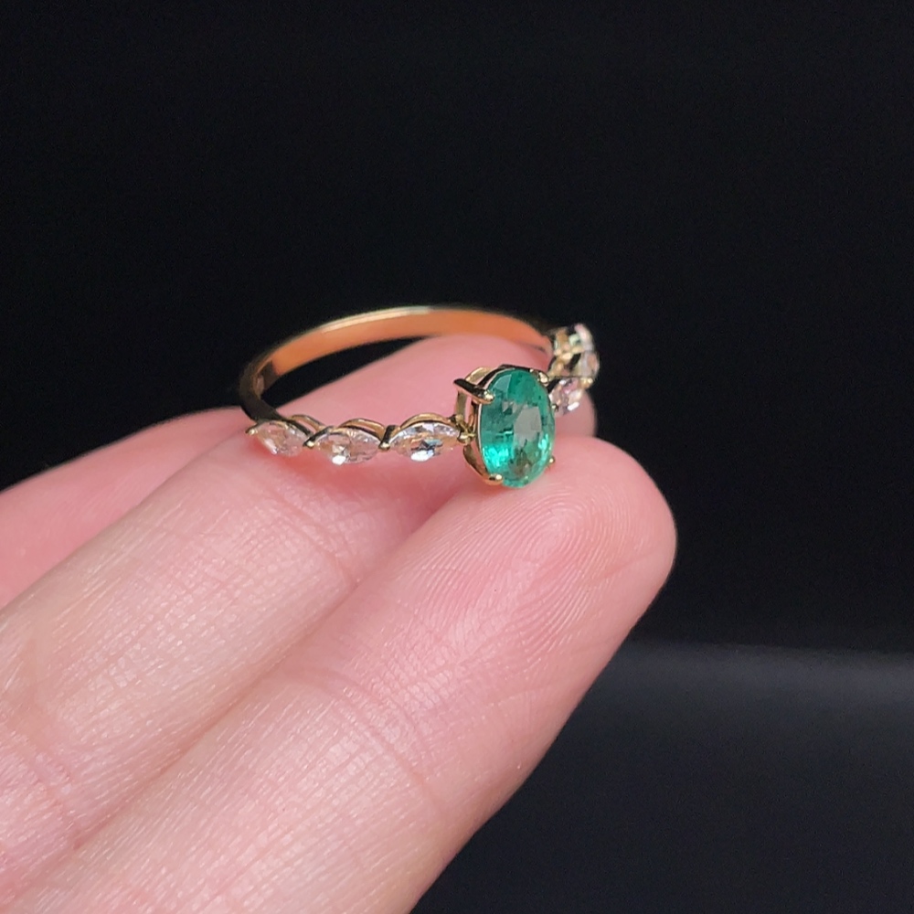 18K Emerald Ring, Non-Diamond, Clarity Enhanced, Total Weight Approx. 1.57g, Size 15