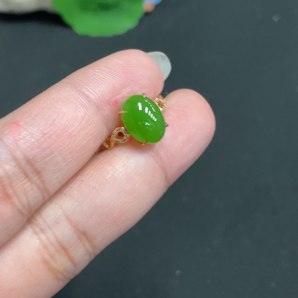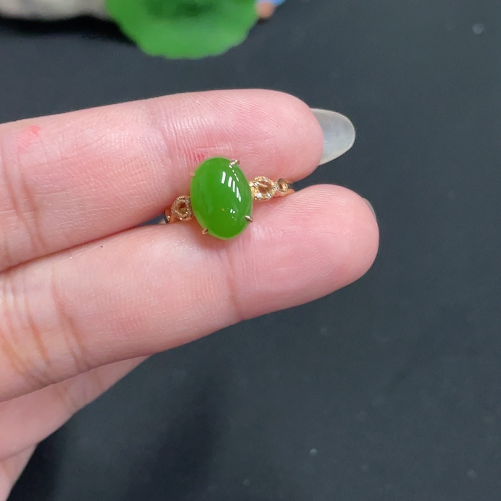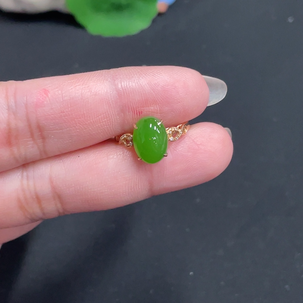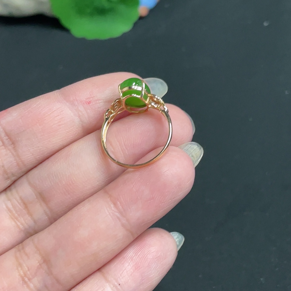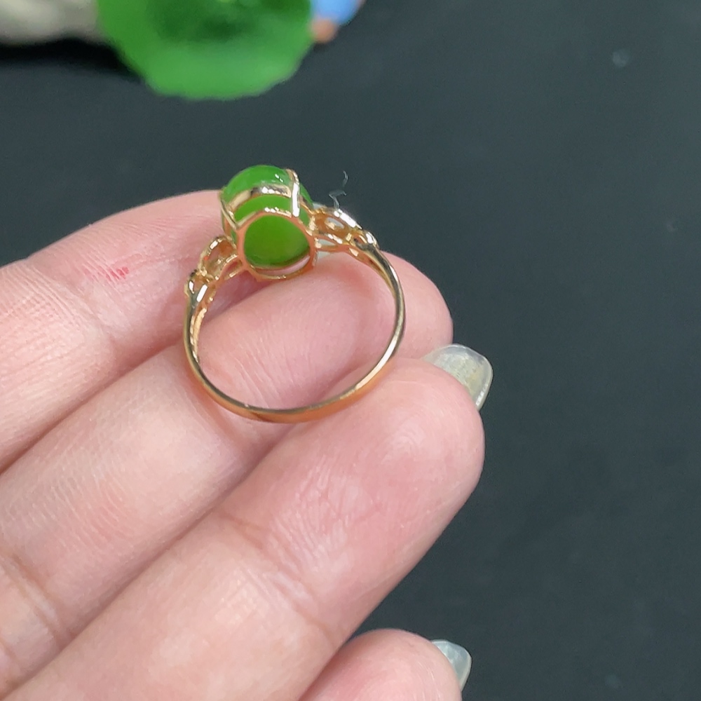 Hetian Jade Inlaid Ring Size 13.5 Total Weight Approx. 1.8g 18k with Diamond Accents