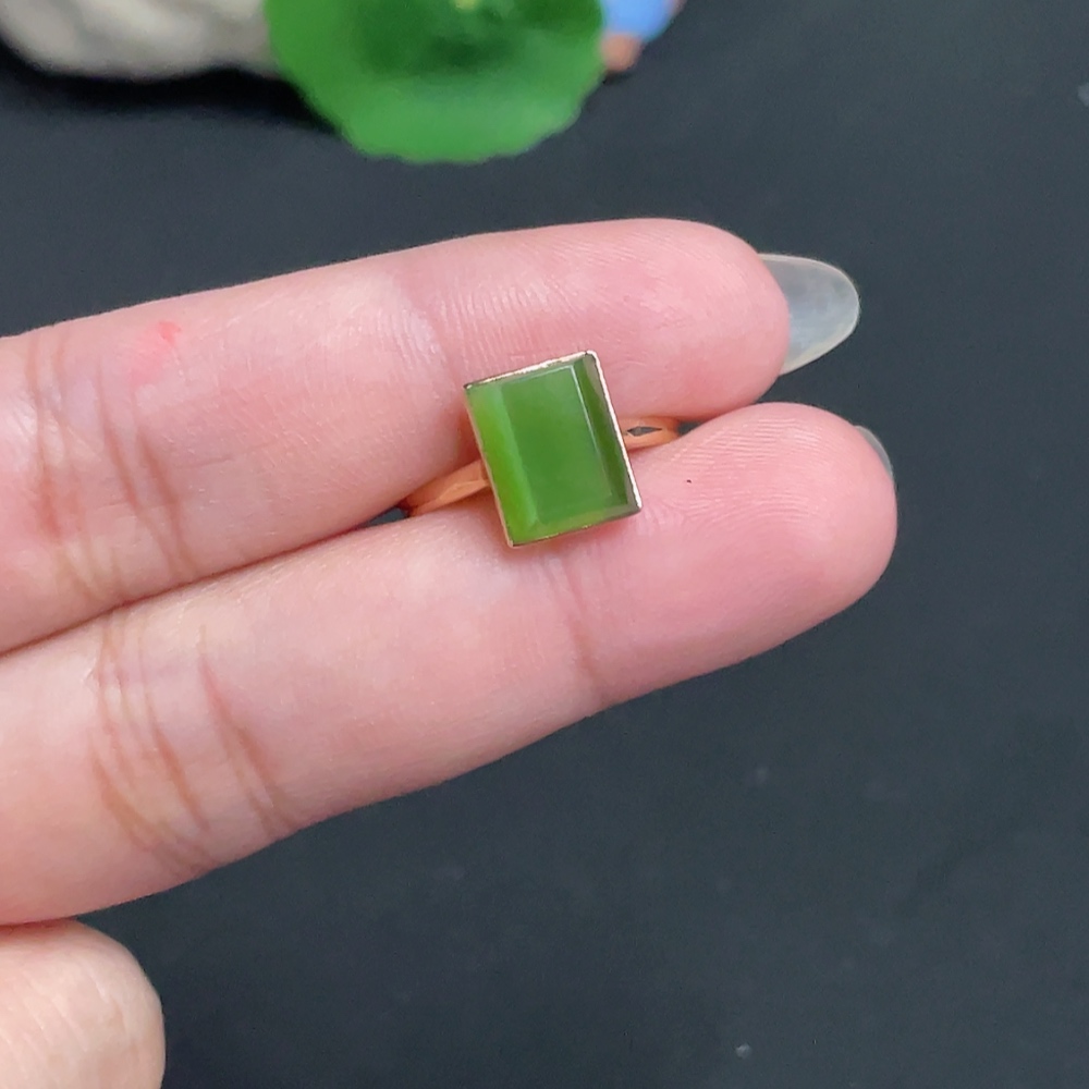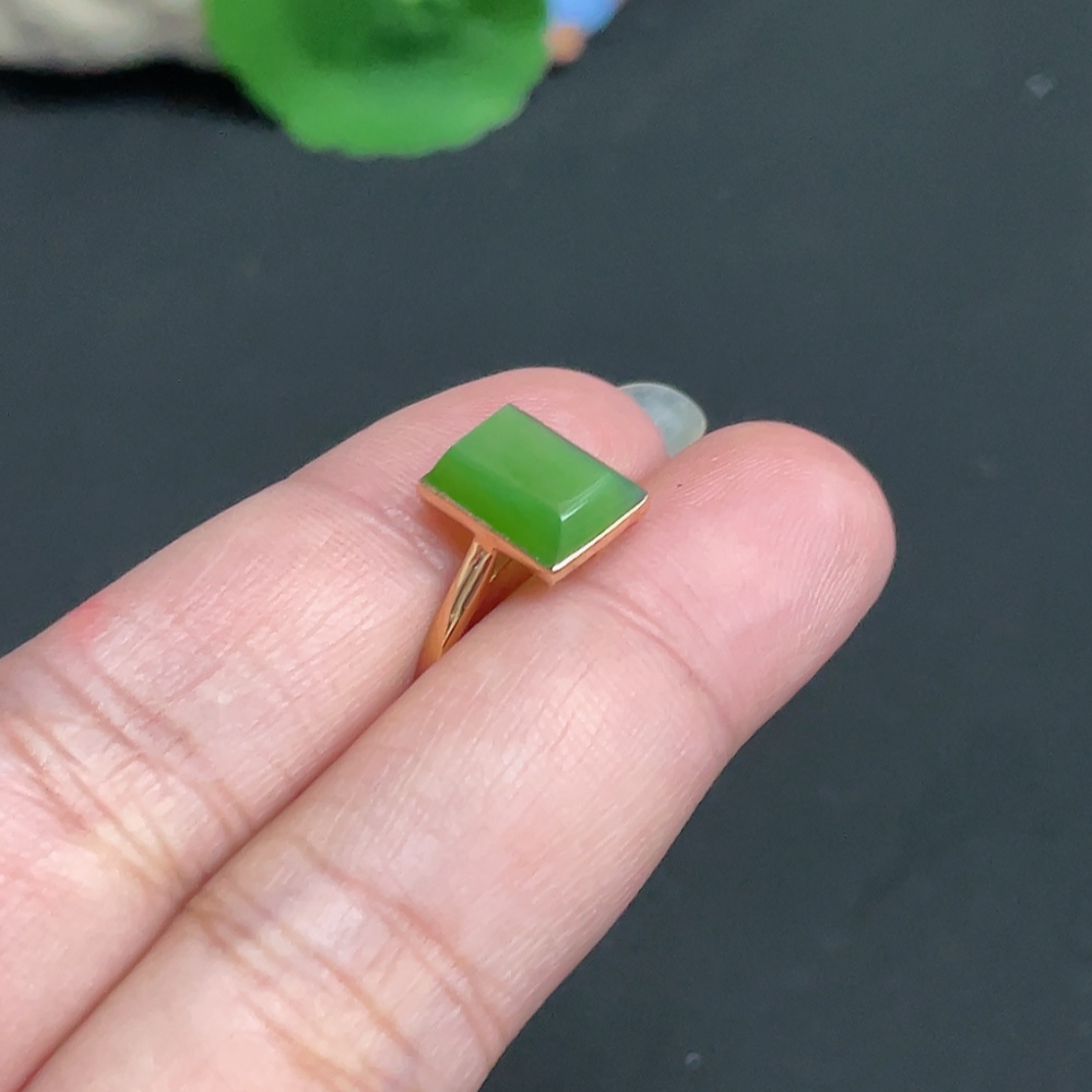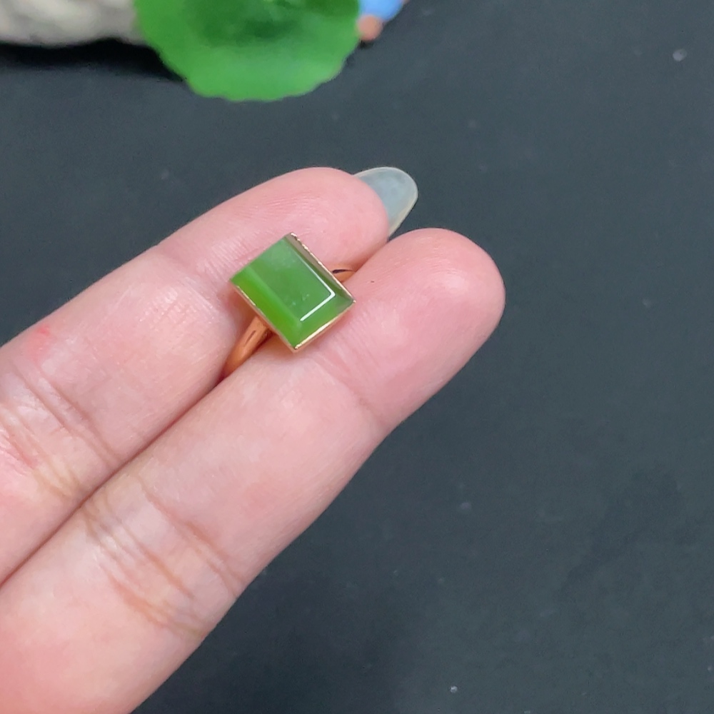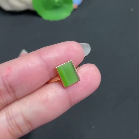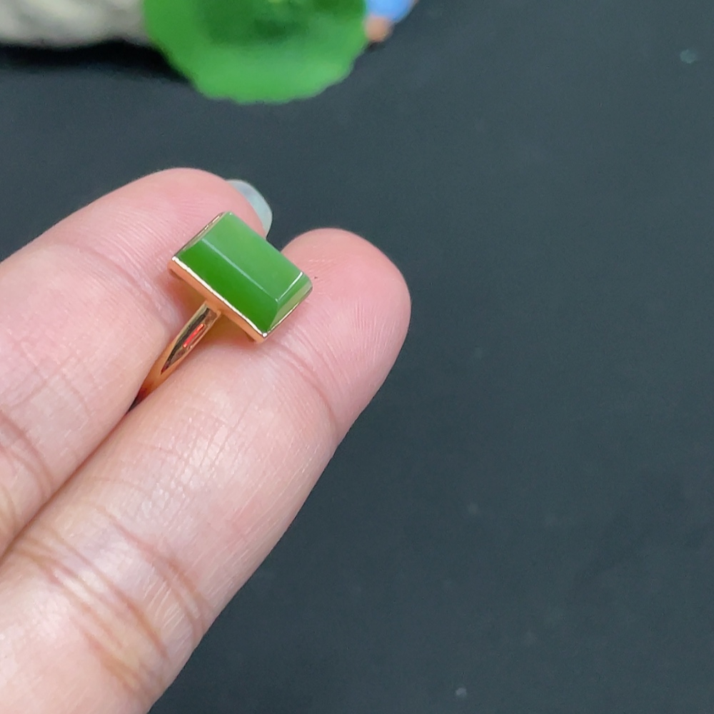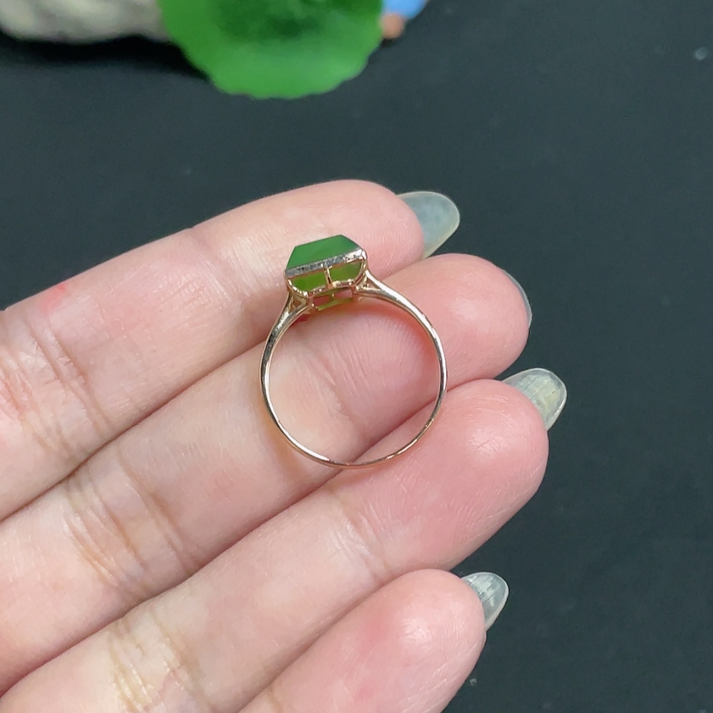 Hetian Jade Inlaid Ring Size 14.5 Total Weight Approx. 1.8g 18k