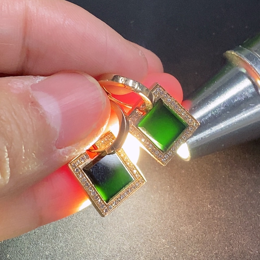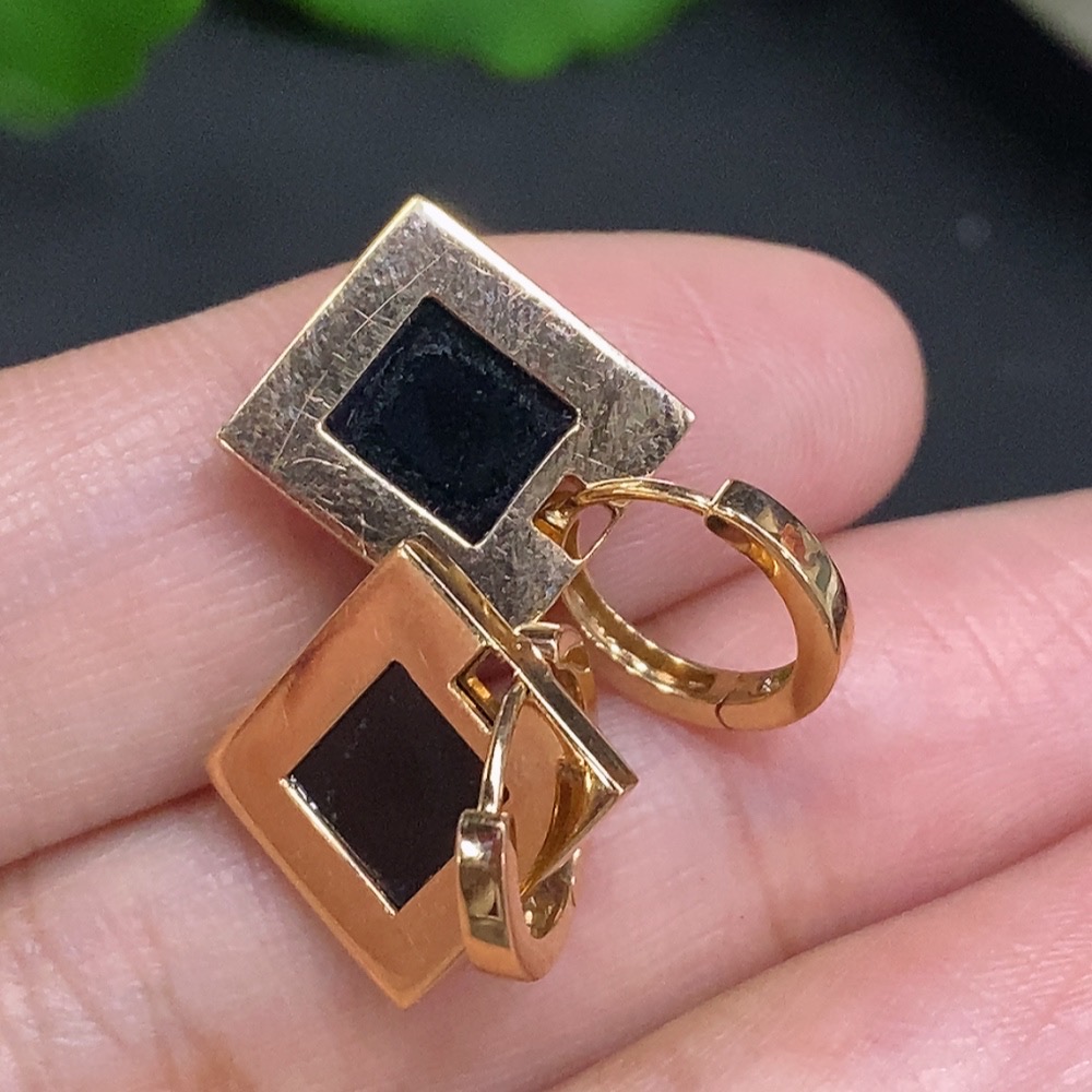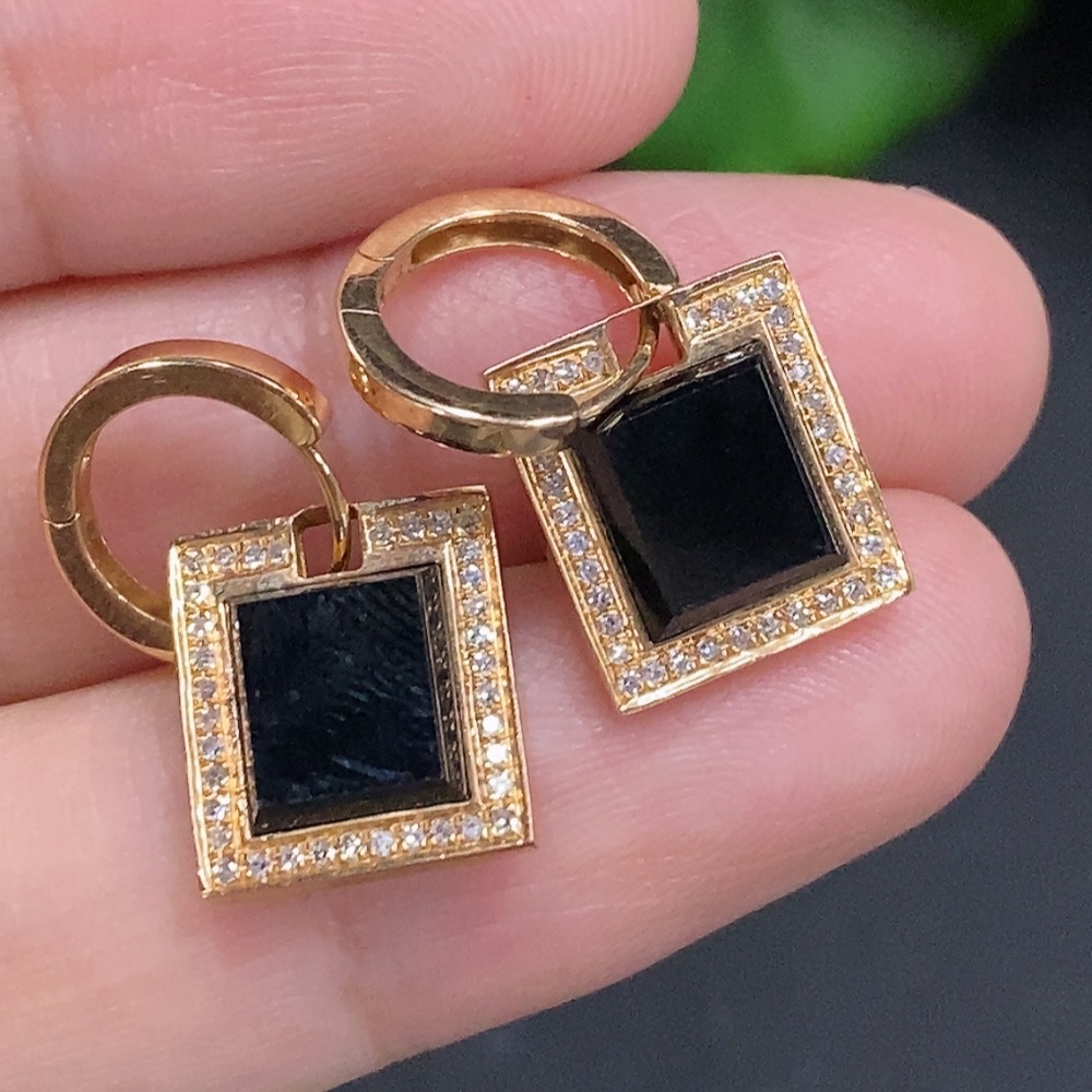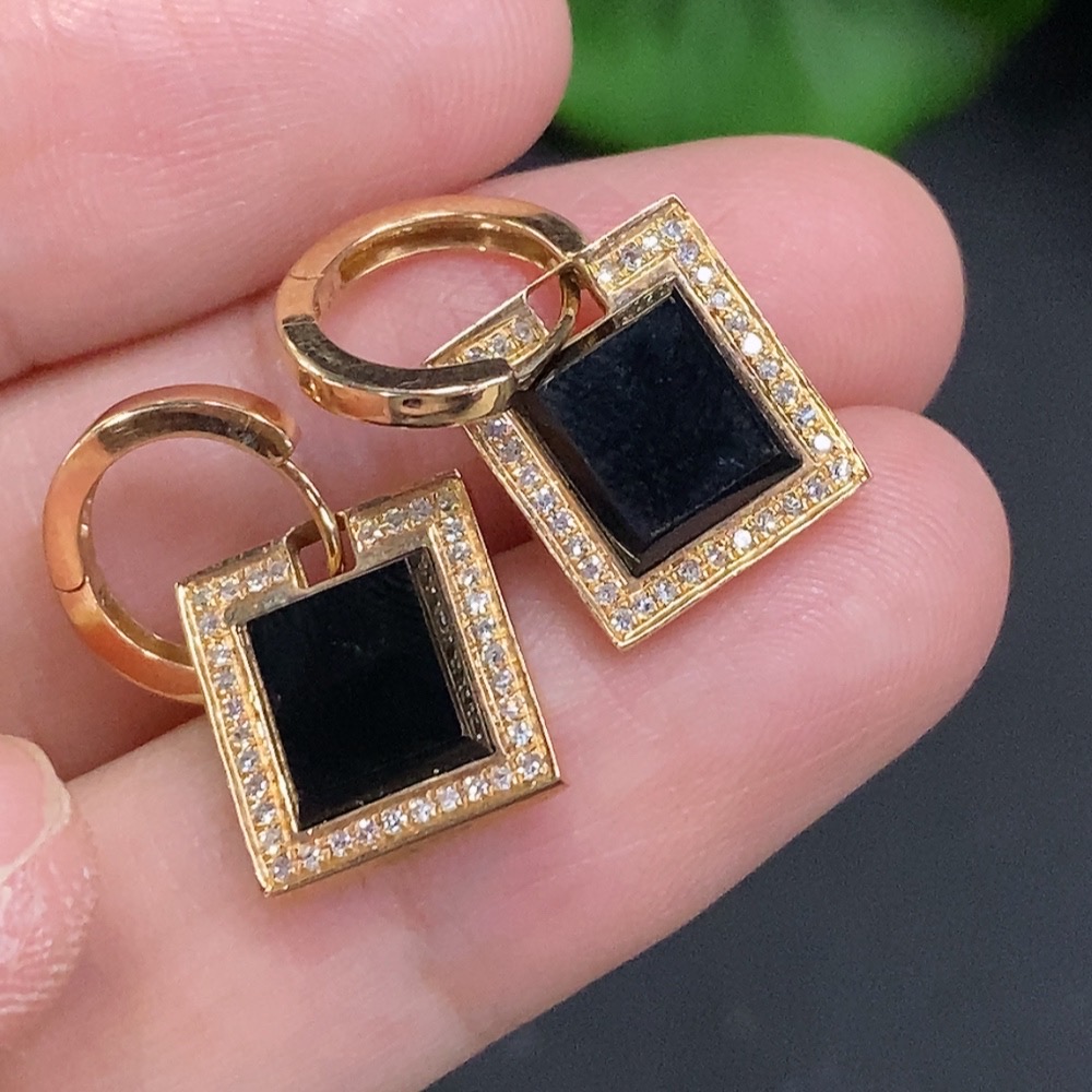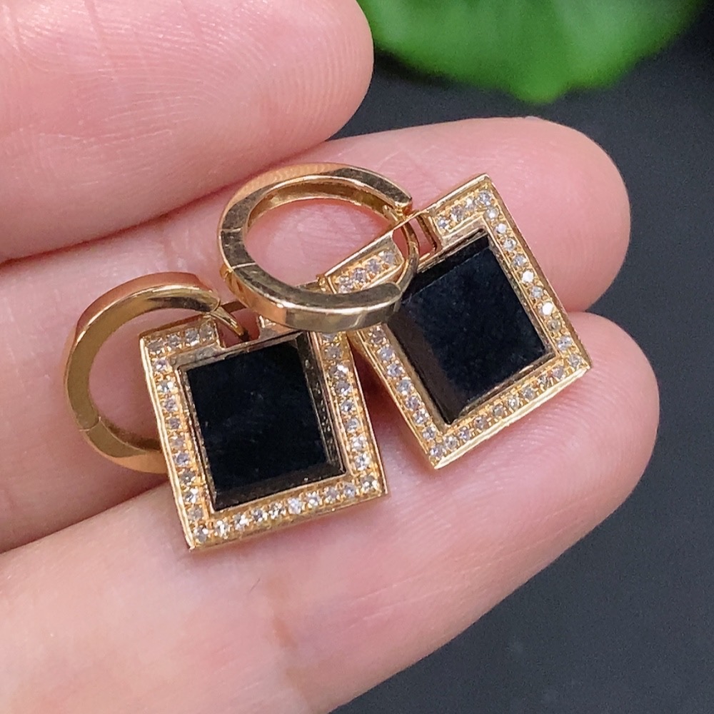 Jadeite inlaid earrings with 74% gold content, total weight approximately 4g, set with diamonds
