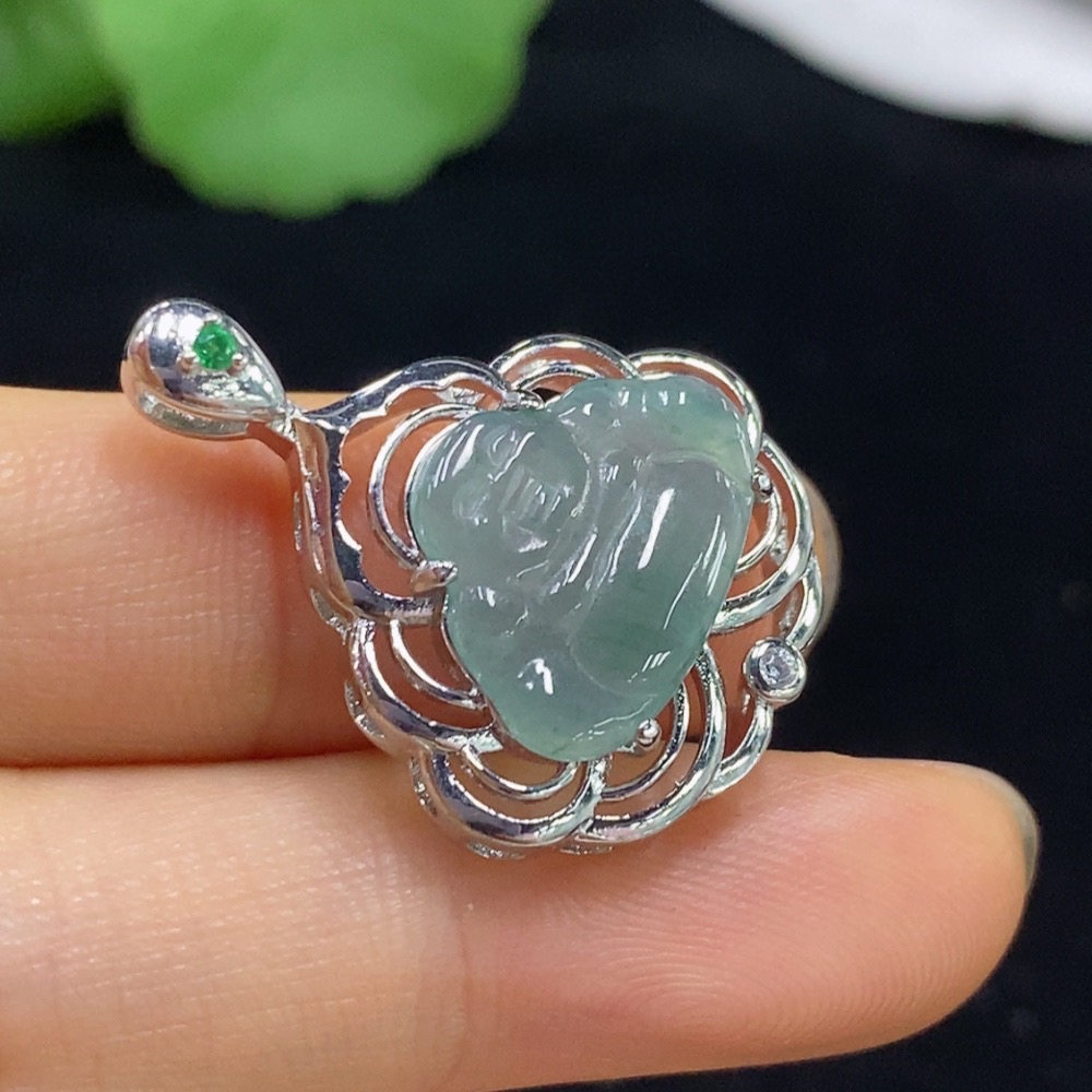 Jadeite Buddha Pendant Non-Gold Total Weight Approx. 3.27g