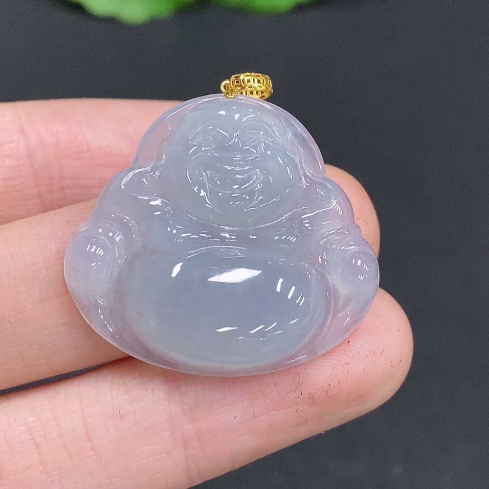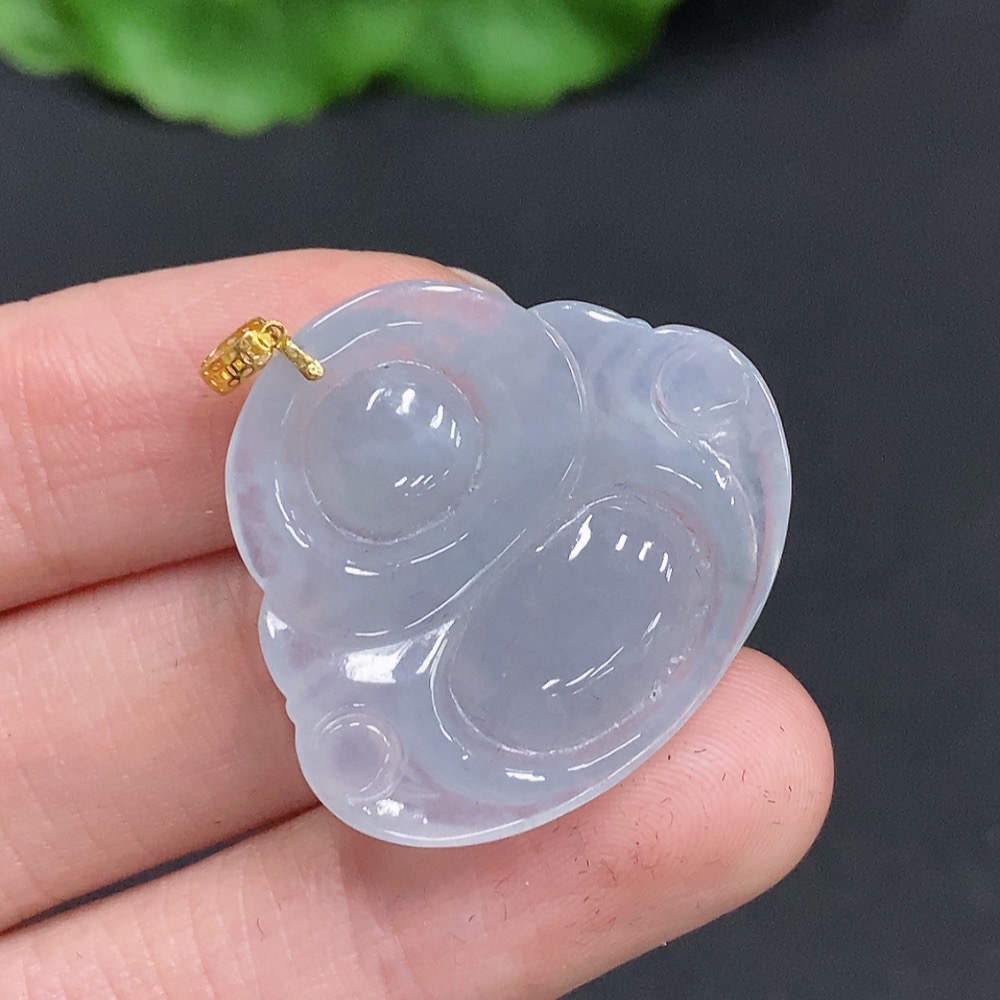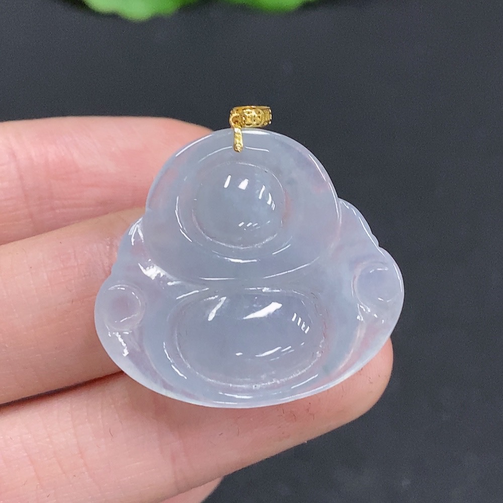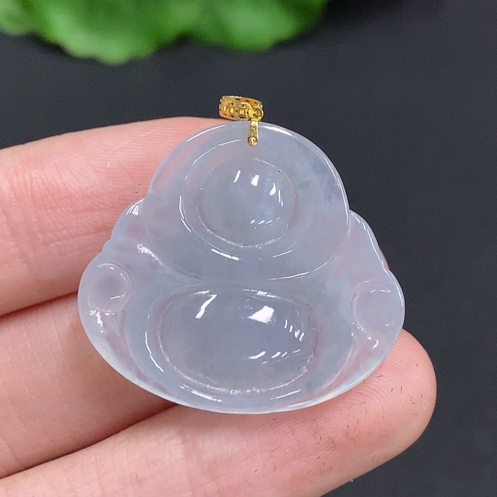 Jadeite Buddha Pendant with 18K Gold Clasp, Total Weight Approximately 6 Grams