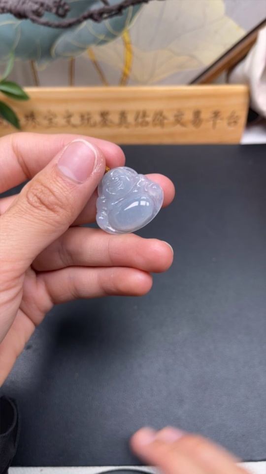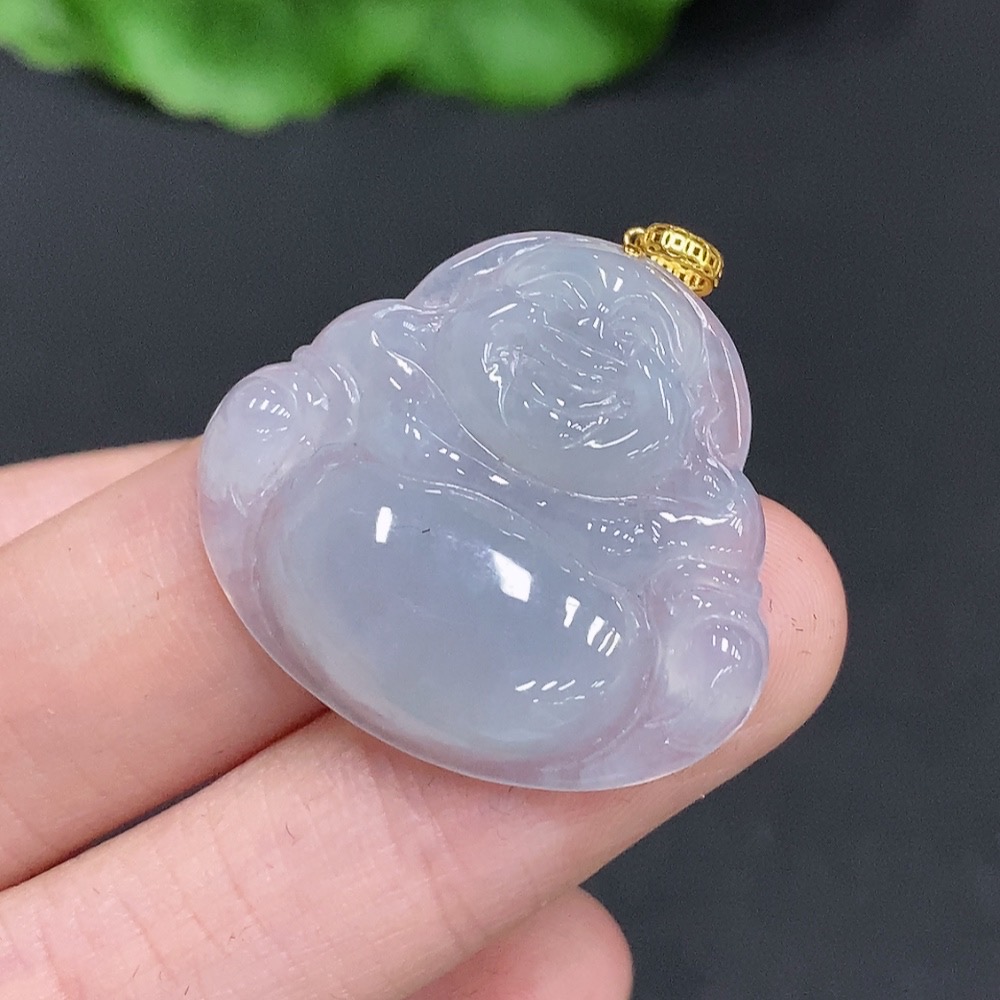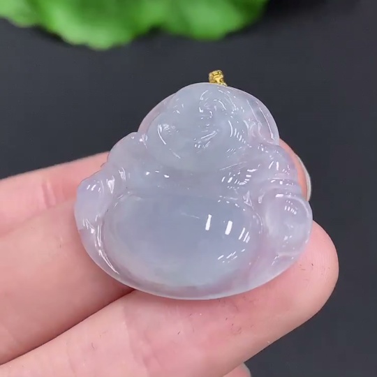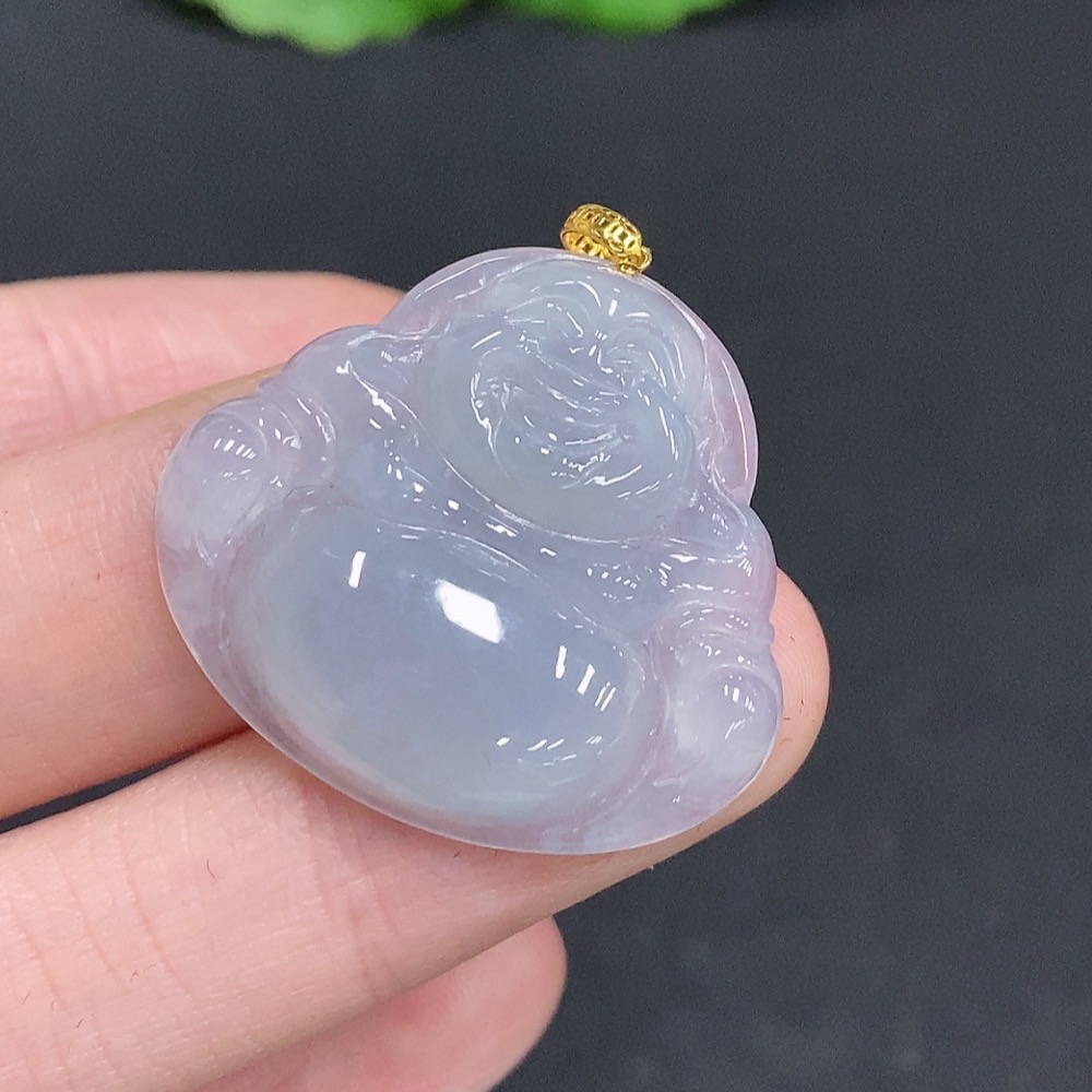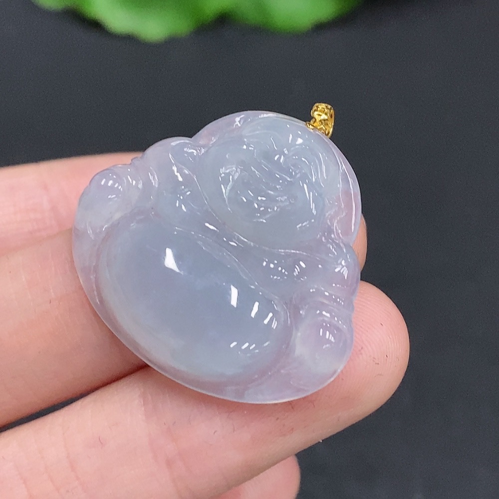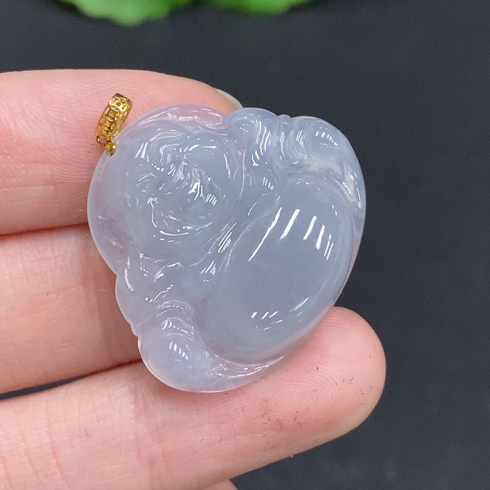 Jadeite Buddha Pendant with 18K Gold Clasp, Total Weight Approximately 6 Grams