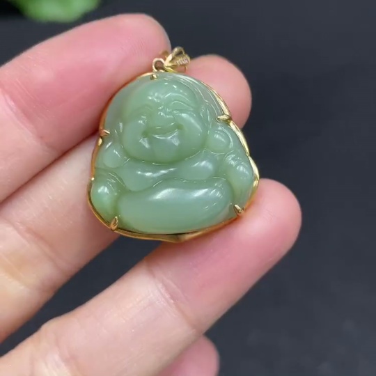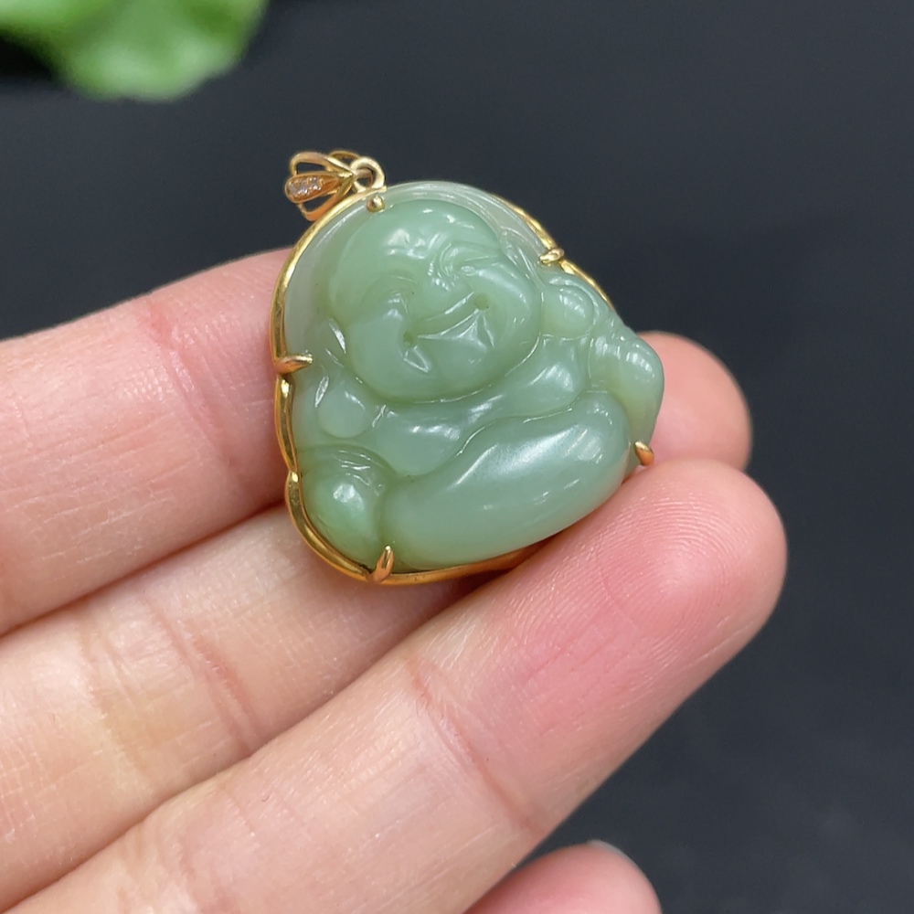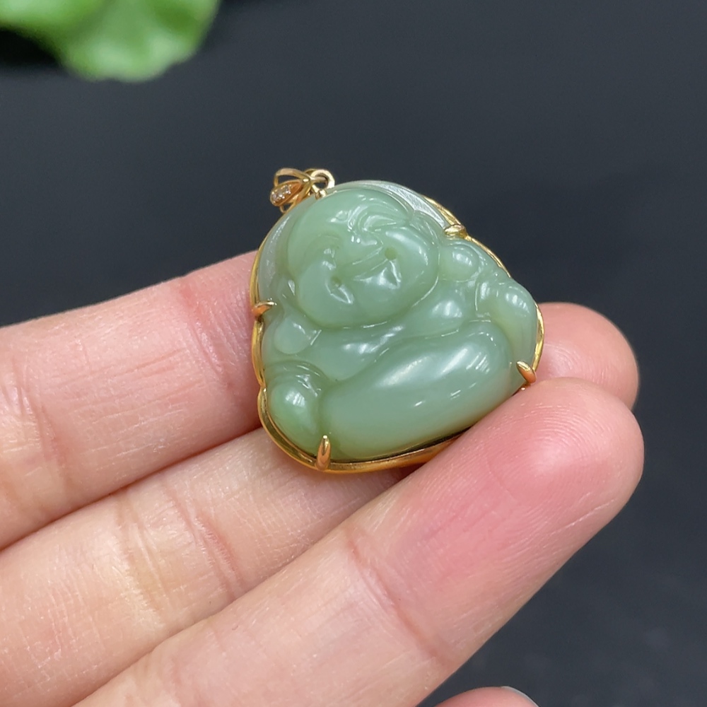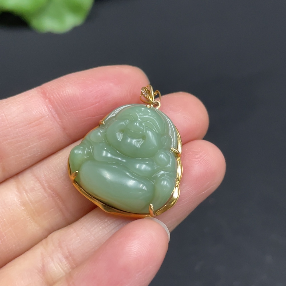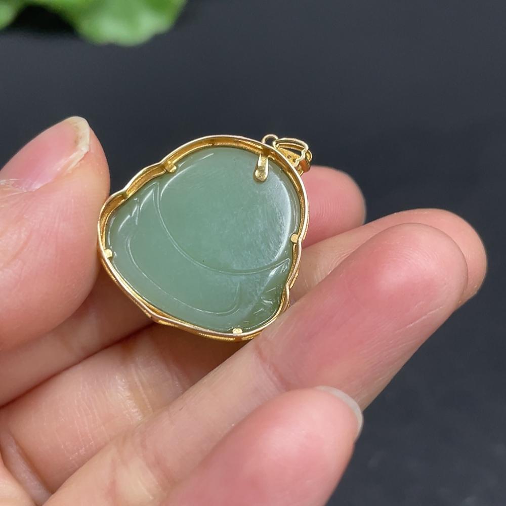 Hetian Jade Jasper Inlaid Buddha 18k Gold Total Weight Approx. 5.5g Non-Diamond