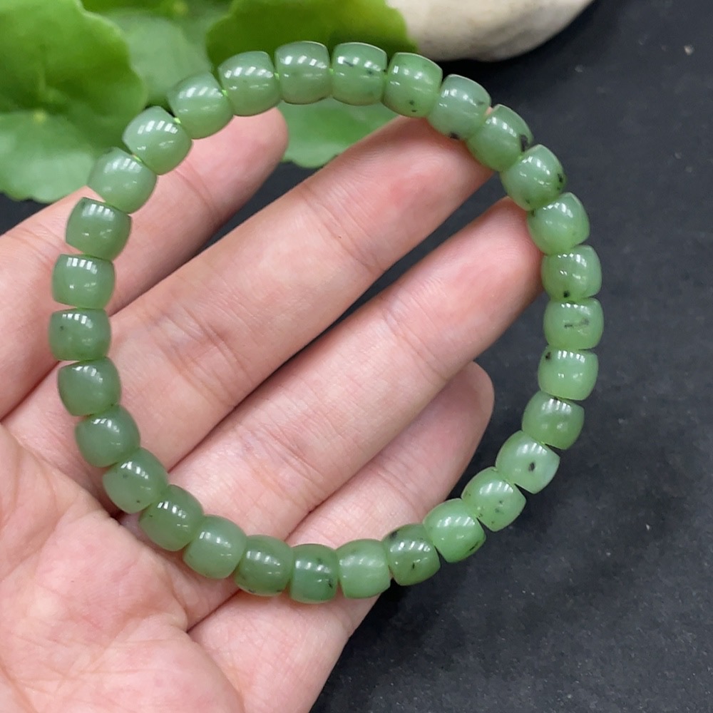 Hetian Jade Jasper Bracelet, approx. 7mm beads, total weight about 17.6g