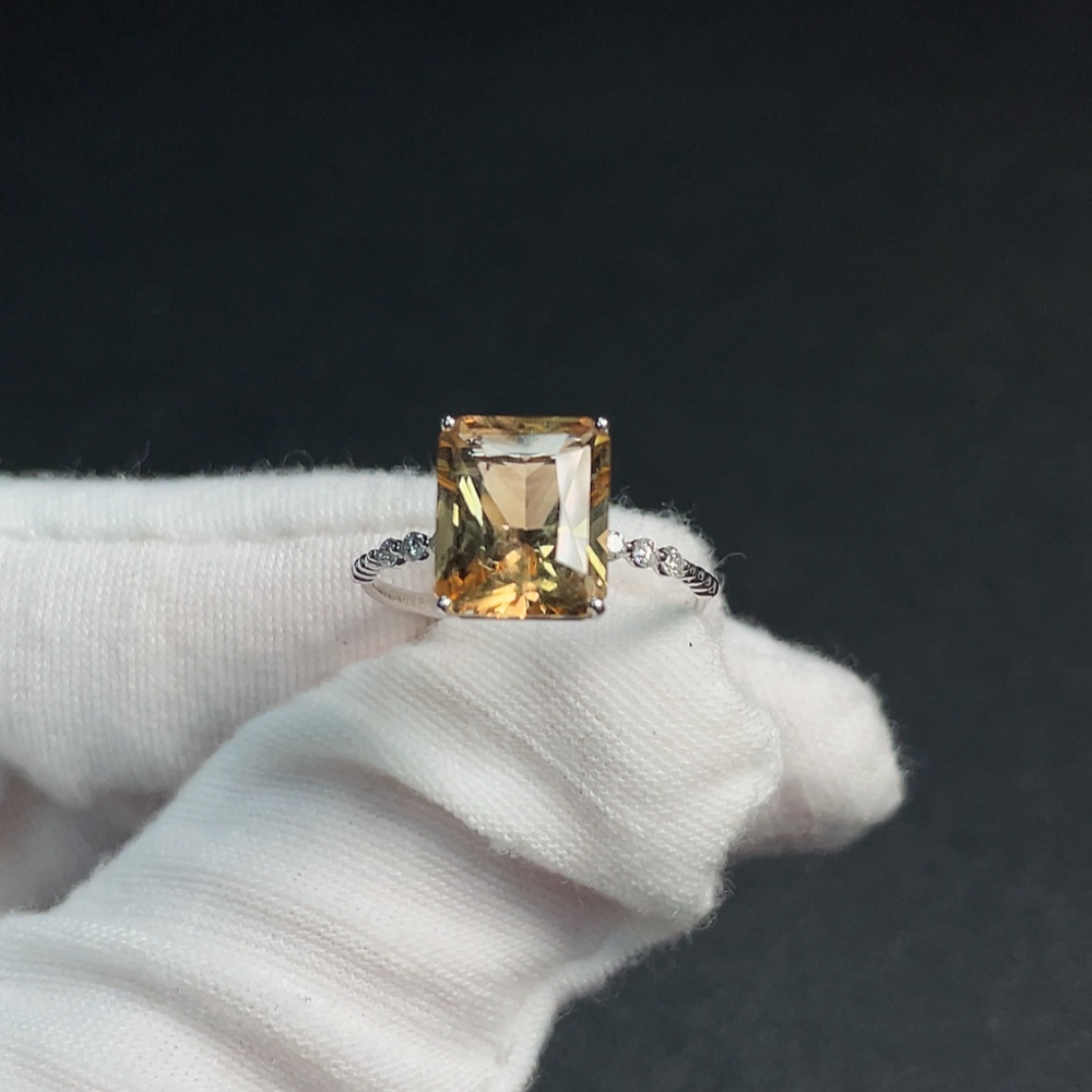 18K Beryl Ring (Color Origin Undetermined) with Diamond Accents, Total Weight Approx. 1.57g, Size 13