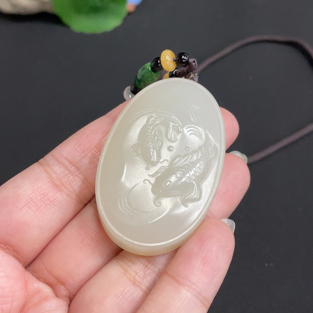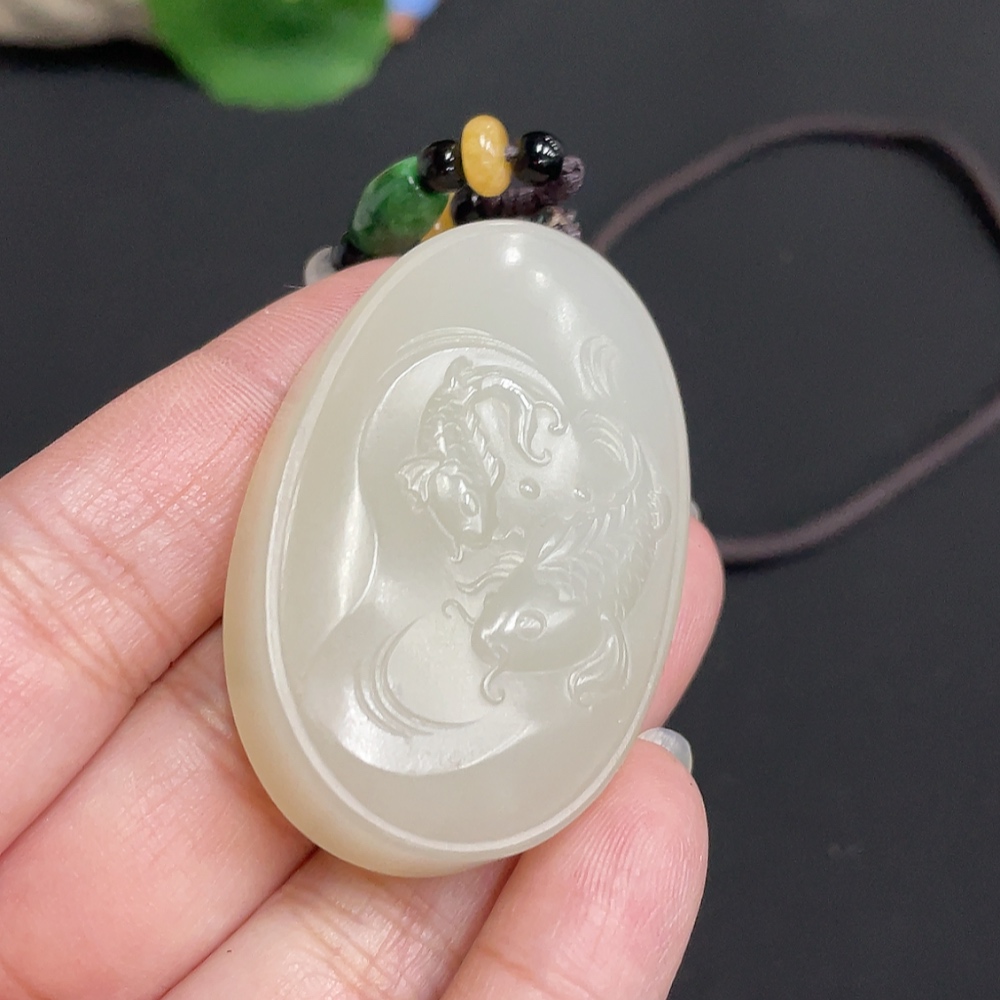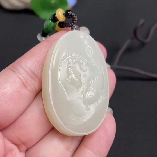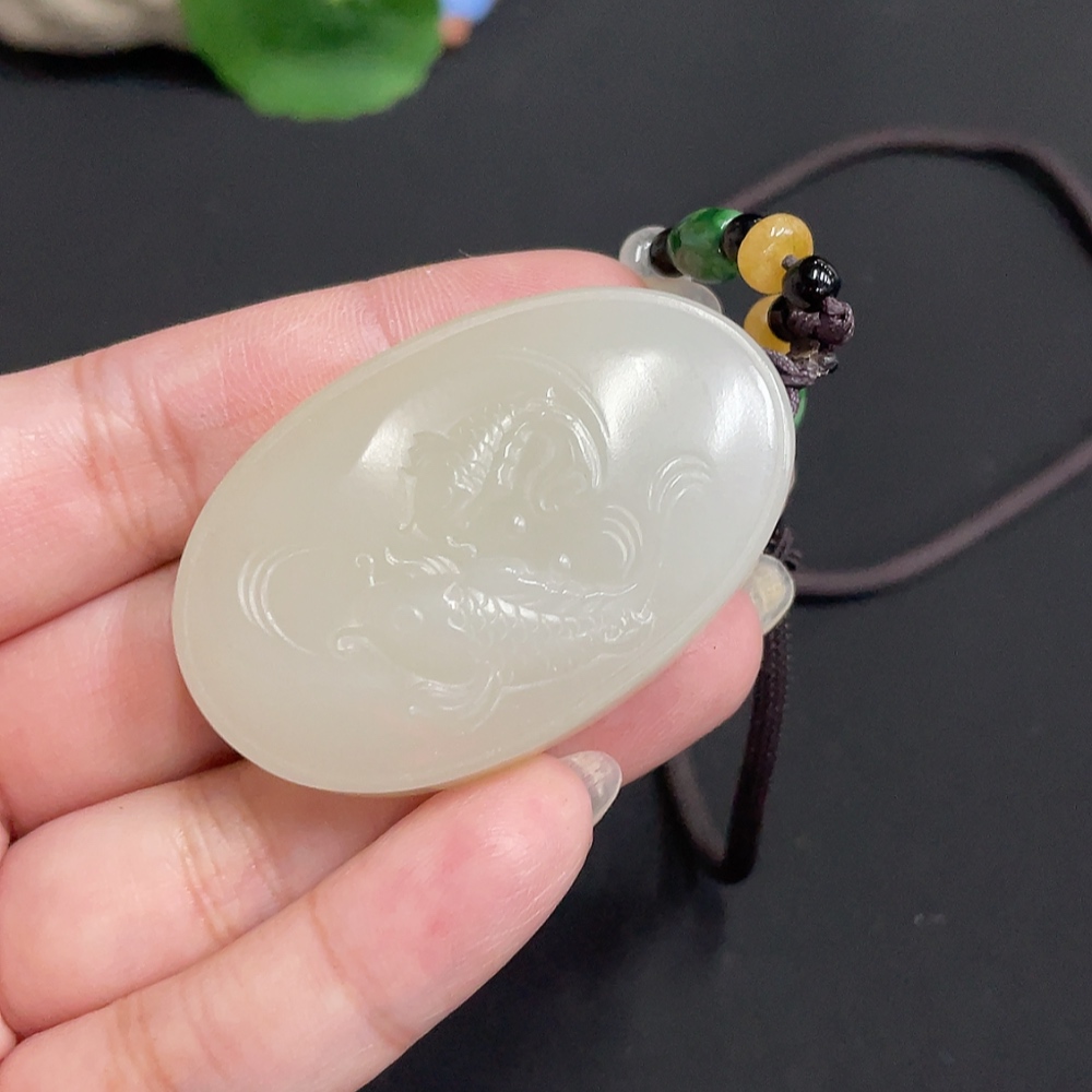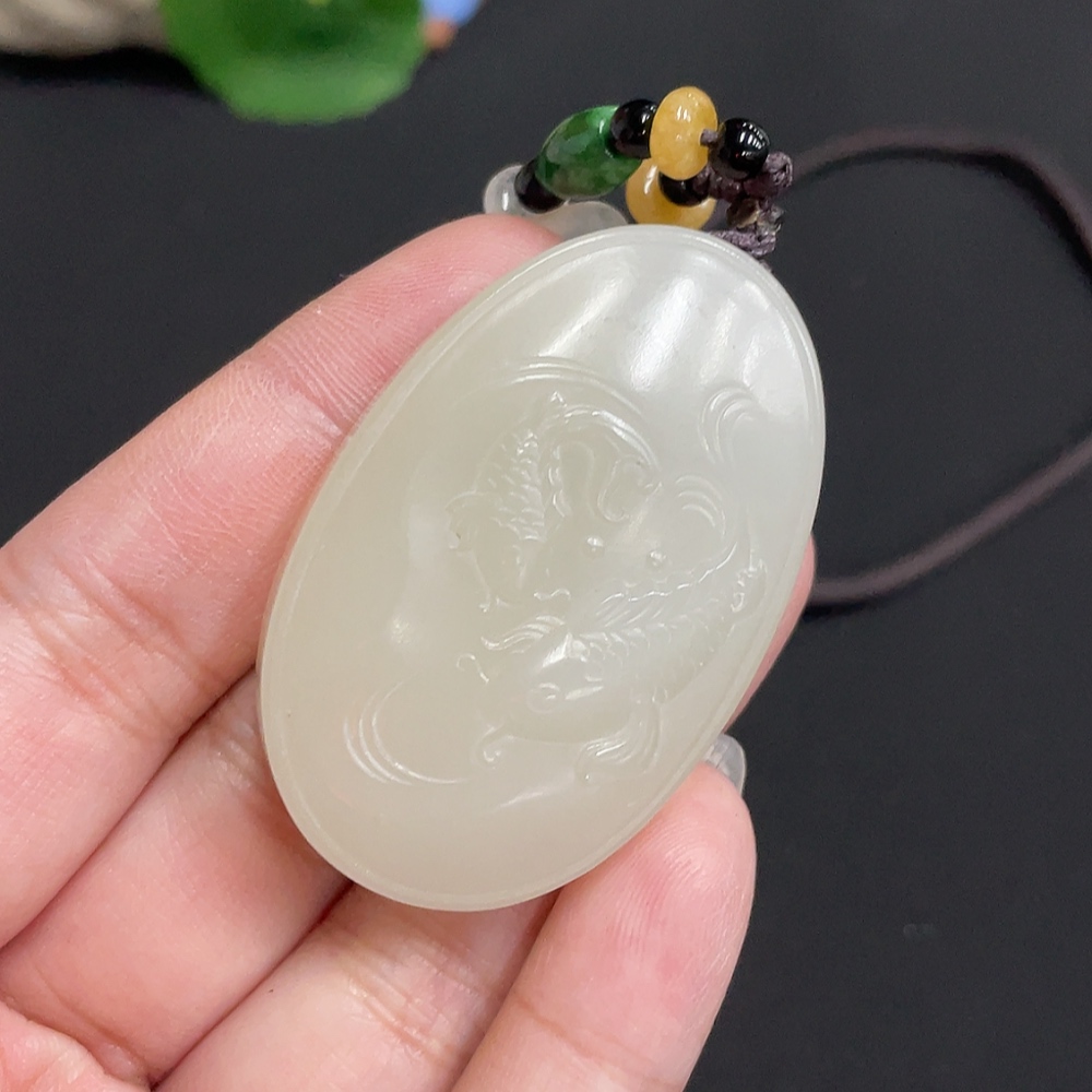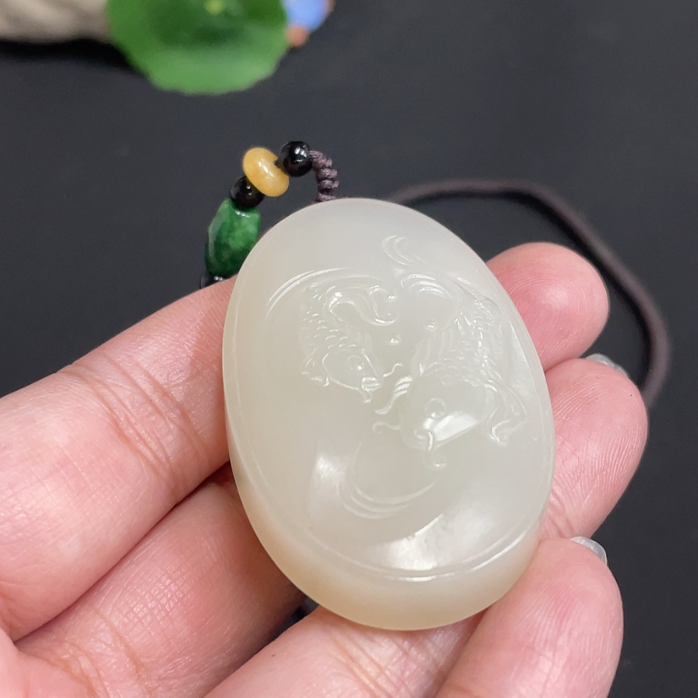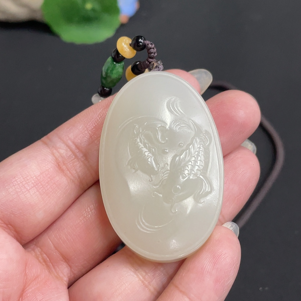 Hetian Jade Pendant - Lotus and Fish Symbolizing Abundance Every Year