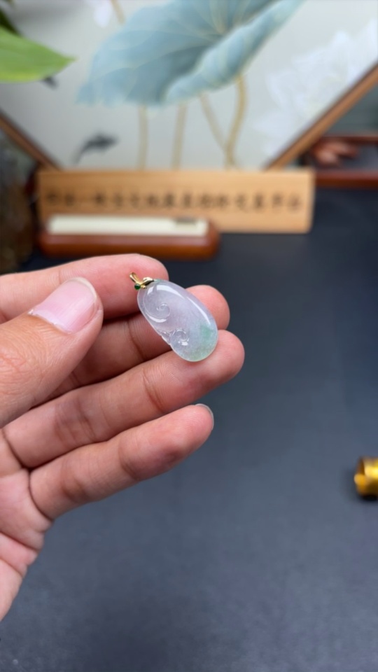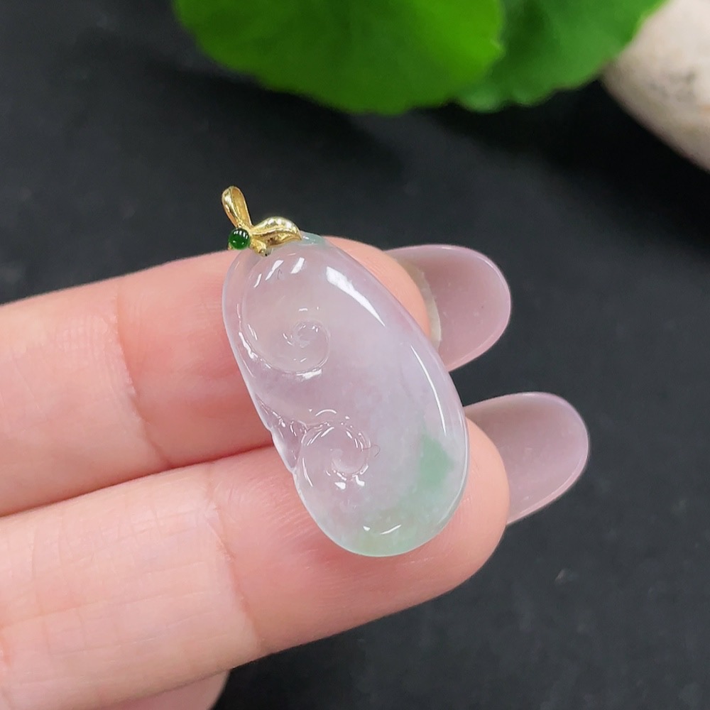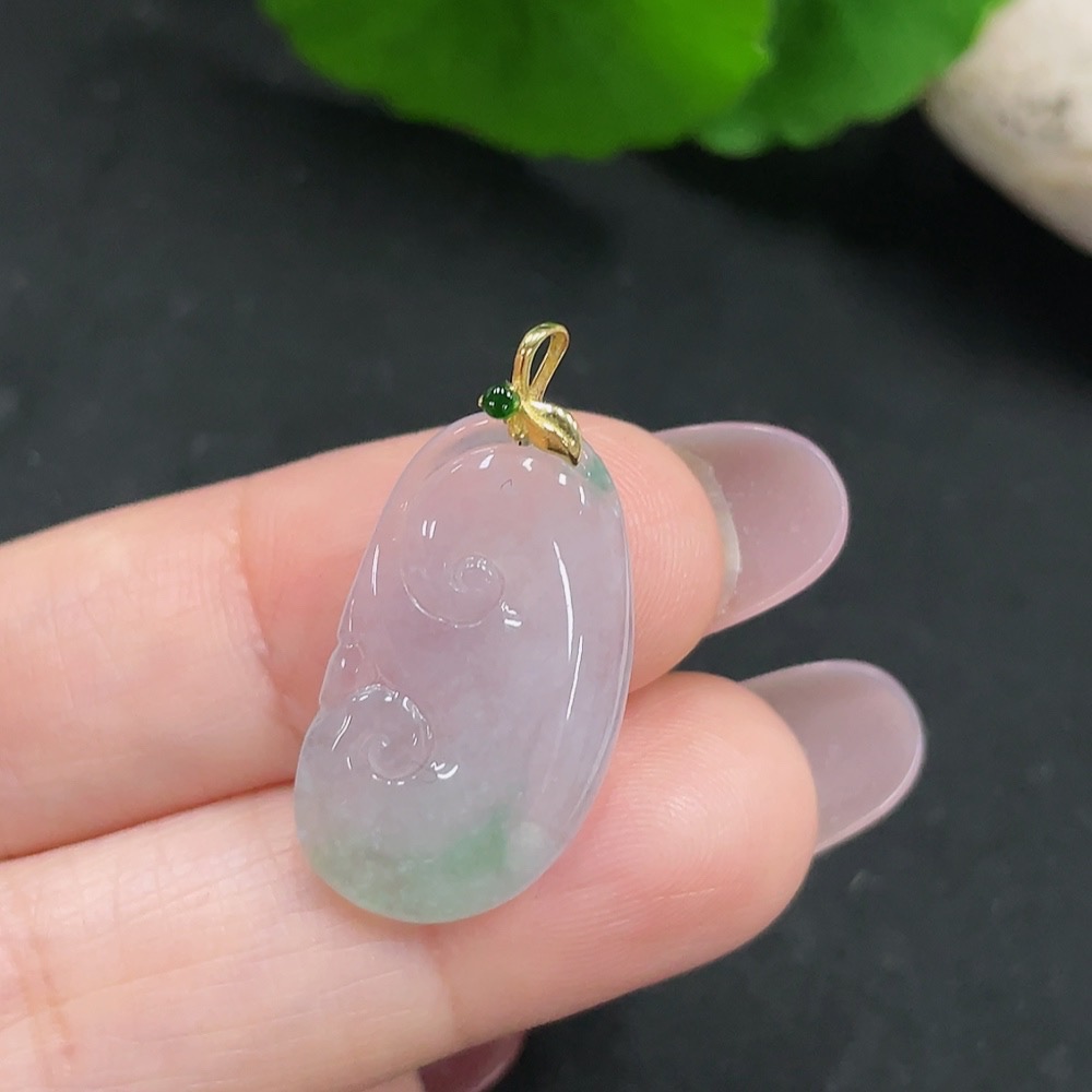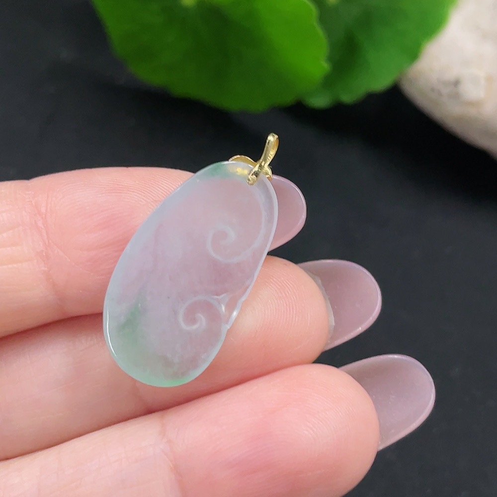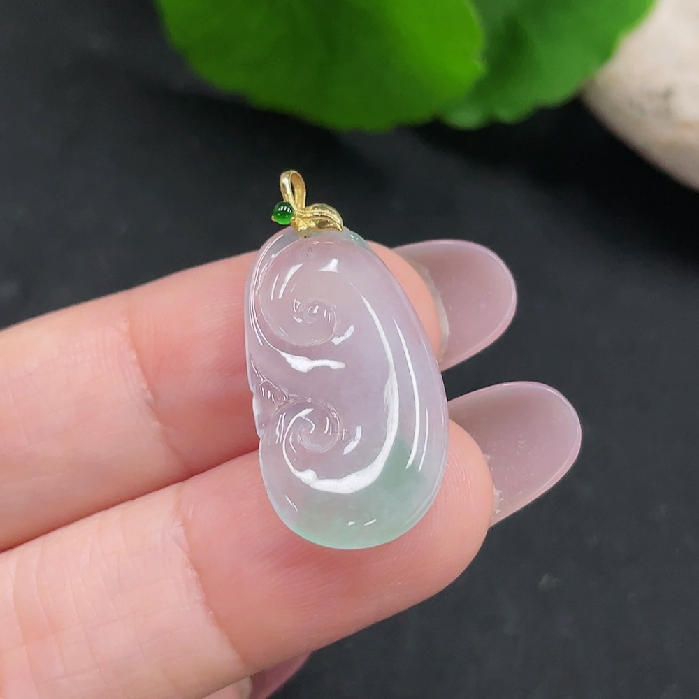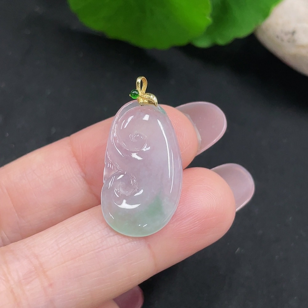 Jadeite Ruyi Pendant 18K Gold Total Weight Approx. 1.9g