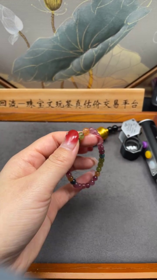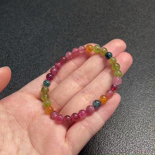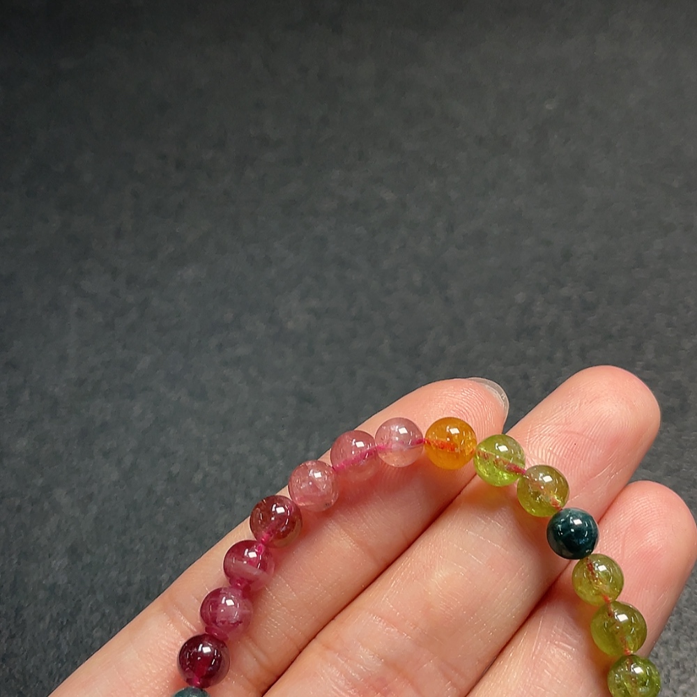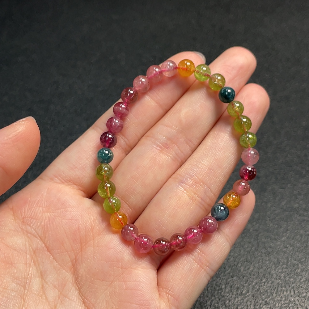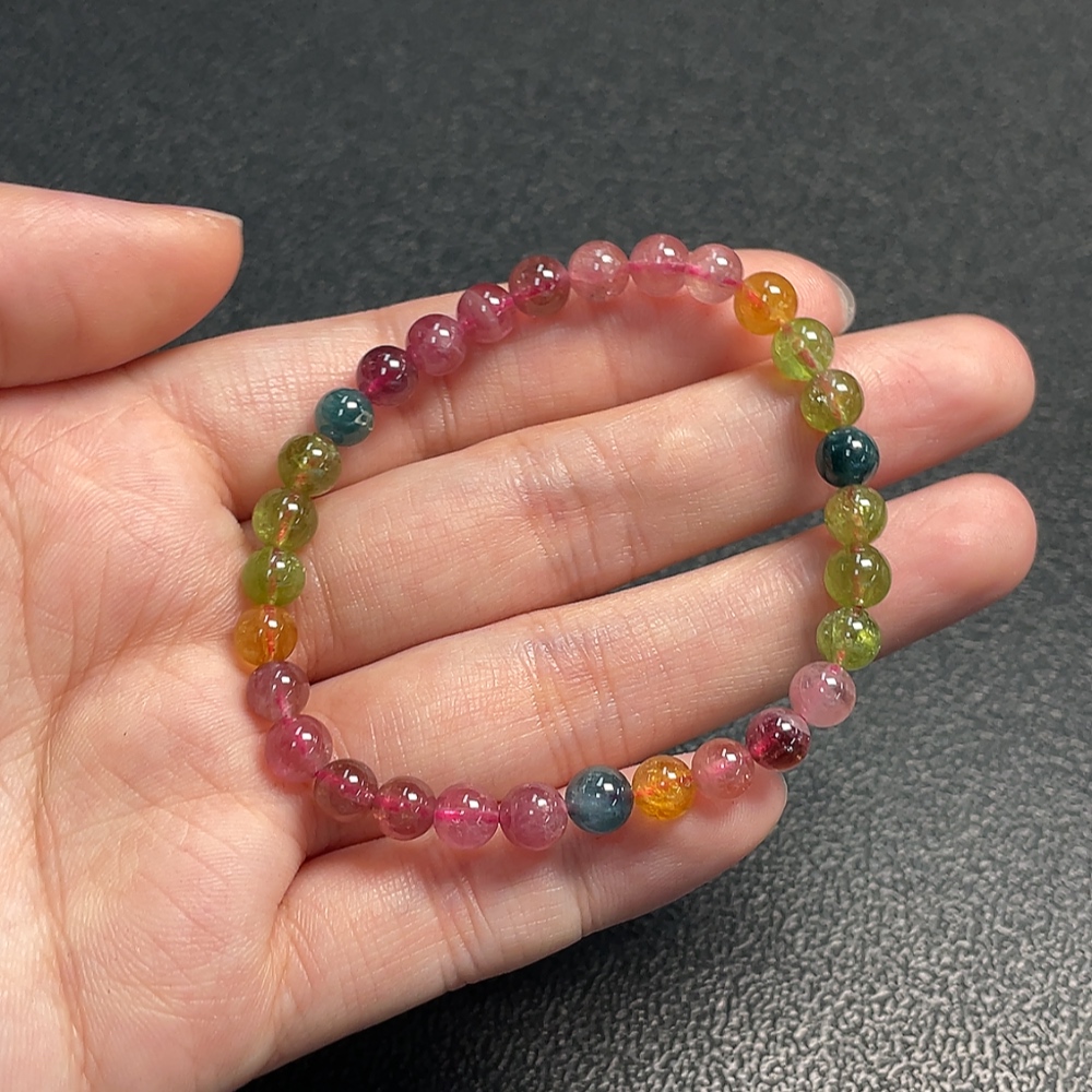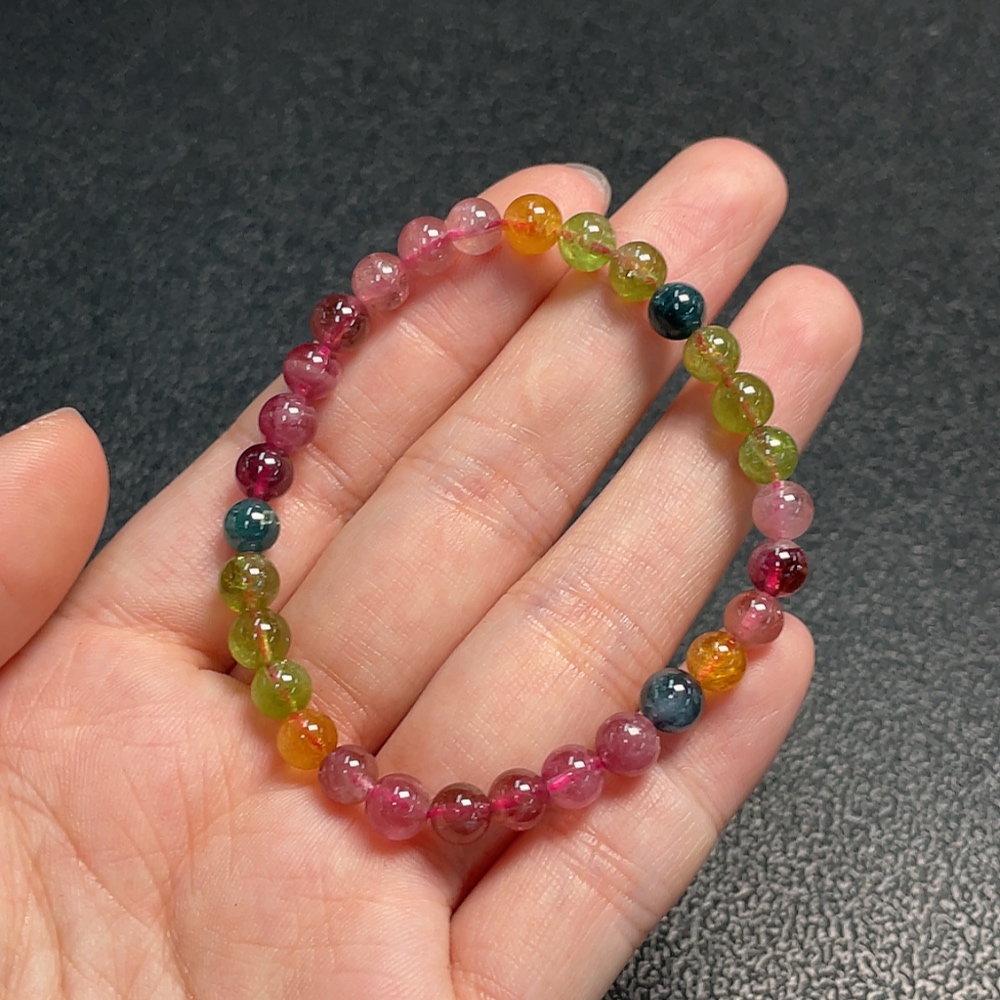 Tourmaline bracelet with visible organic matter, total weight approx. 8.63g, size about 5.7mm