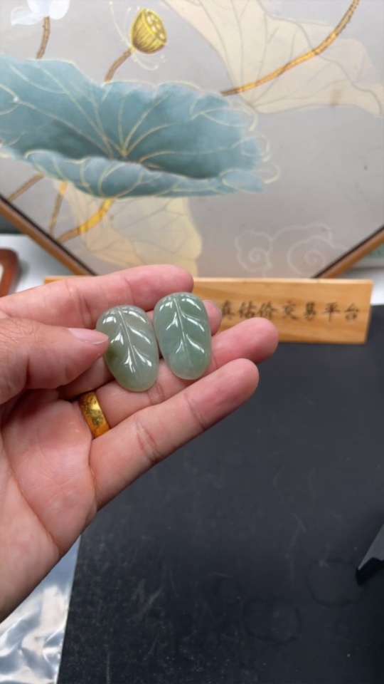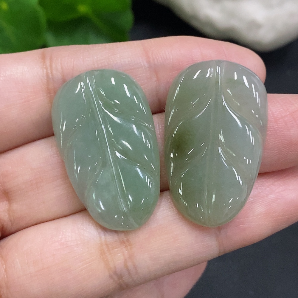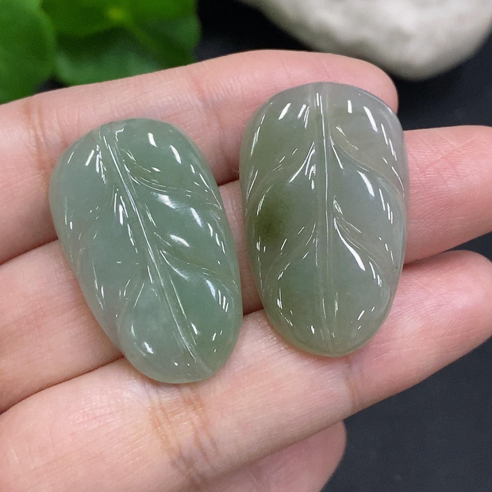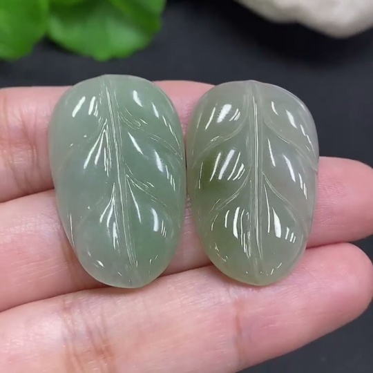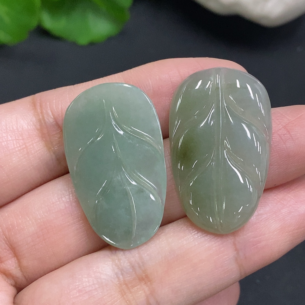 Jadeite Leaf Inlaid Pieces Sell as a Lot