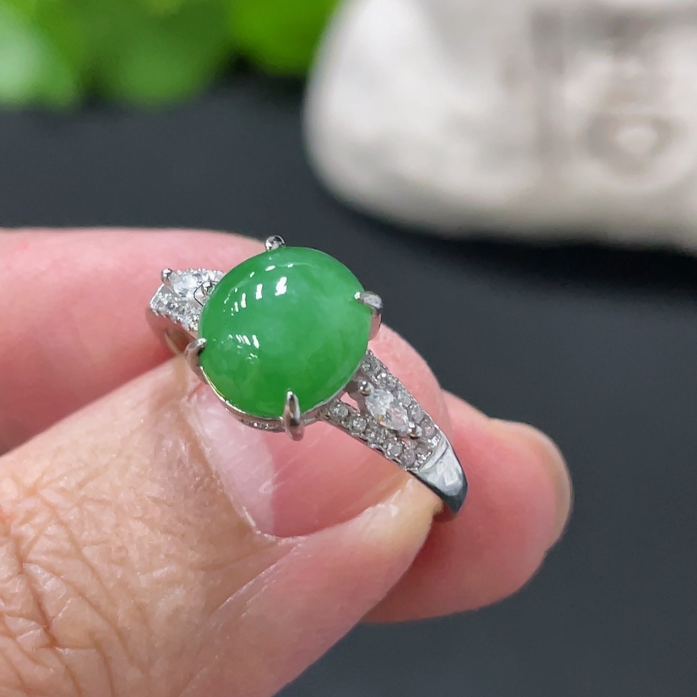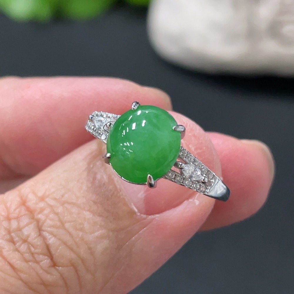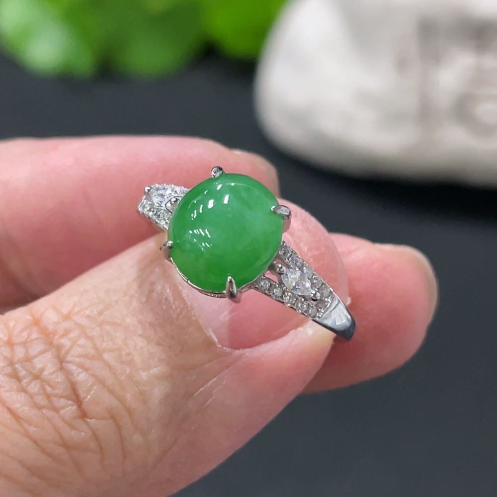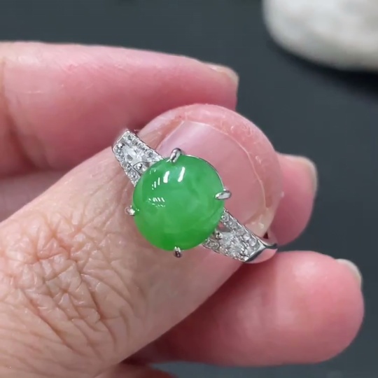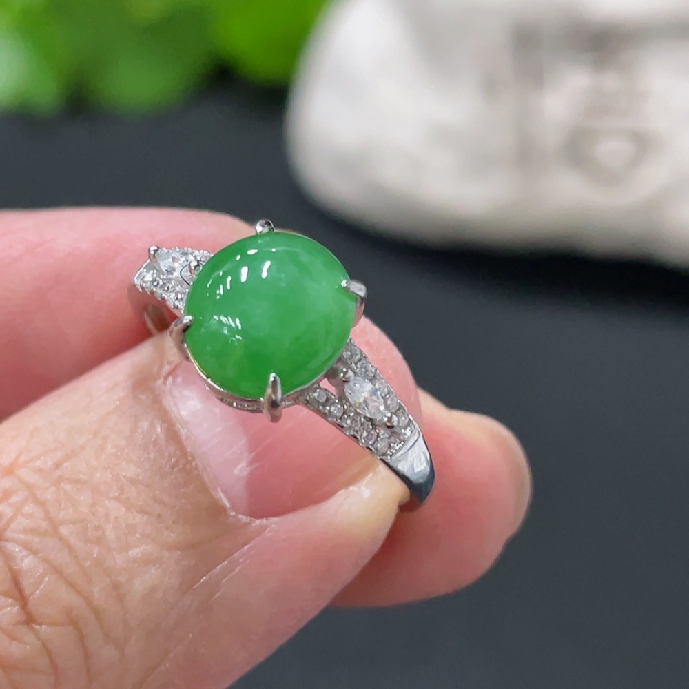 Jadeite Inlaid Ring Non-Gold Adjustable Total Weight Approx. 2.27g