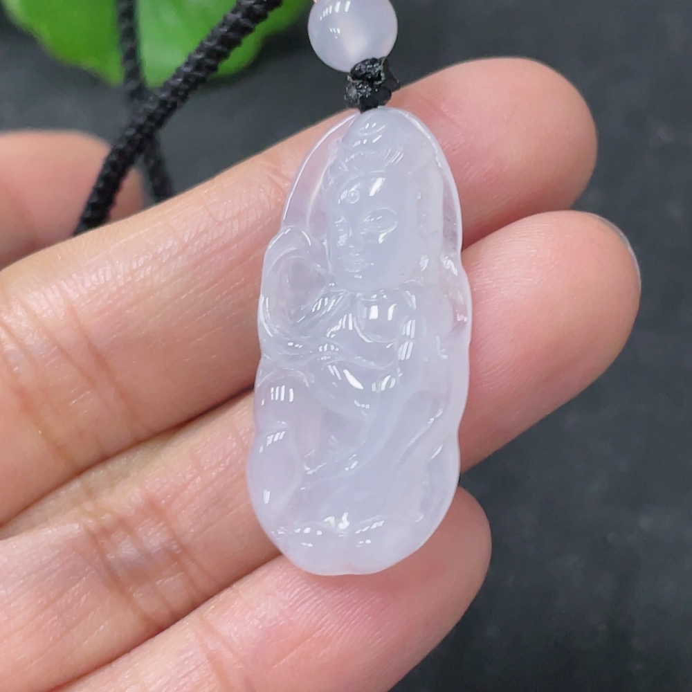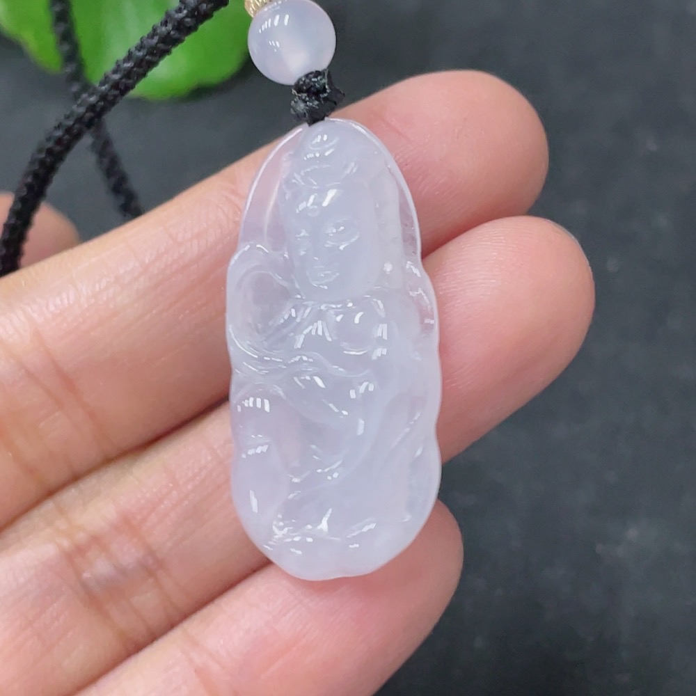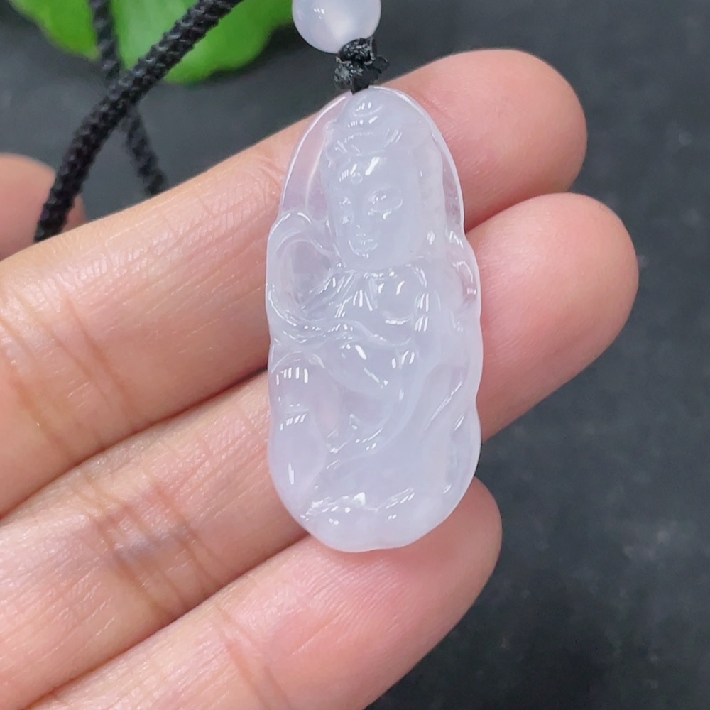 Jadeite Pendant Guanyin Total Weight Approx. 5.74g Including Rope With Non-Grade A Beads