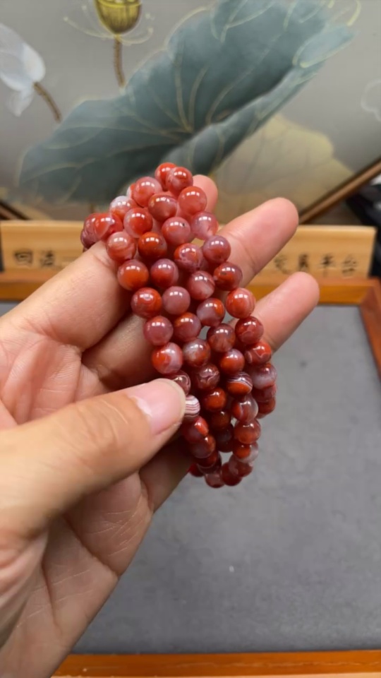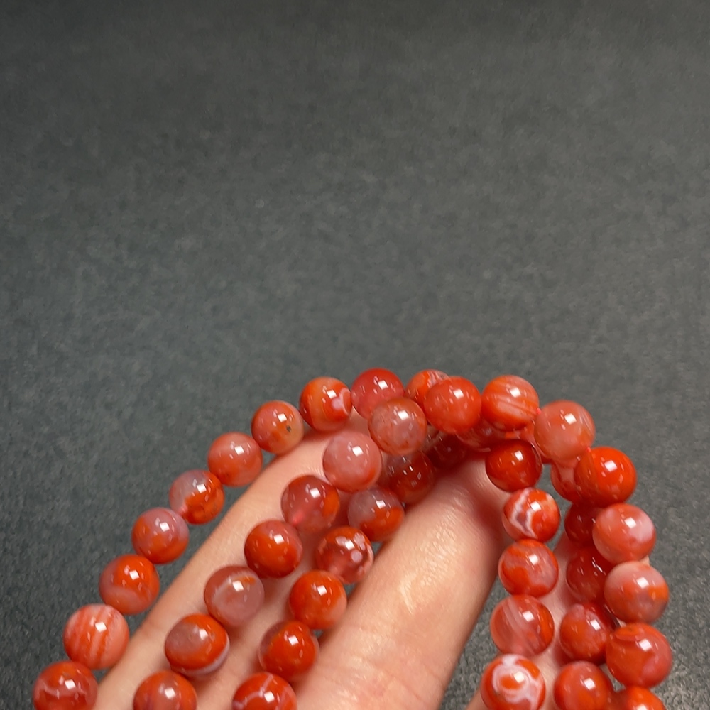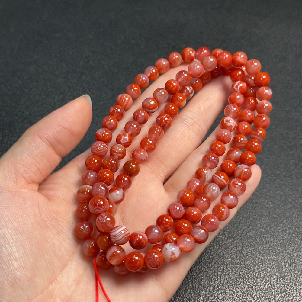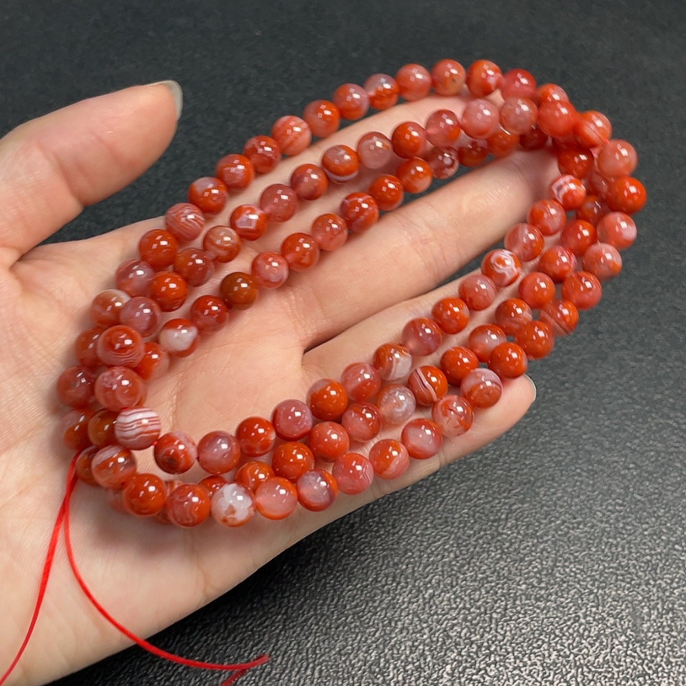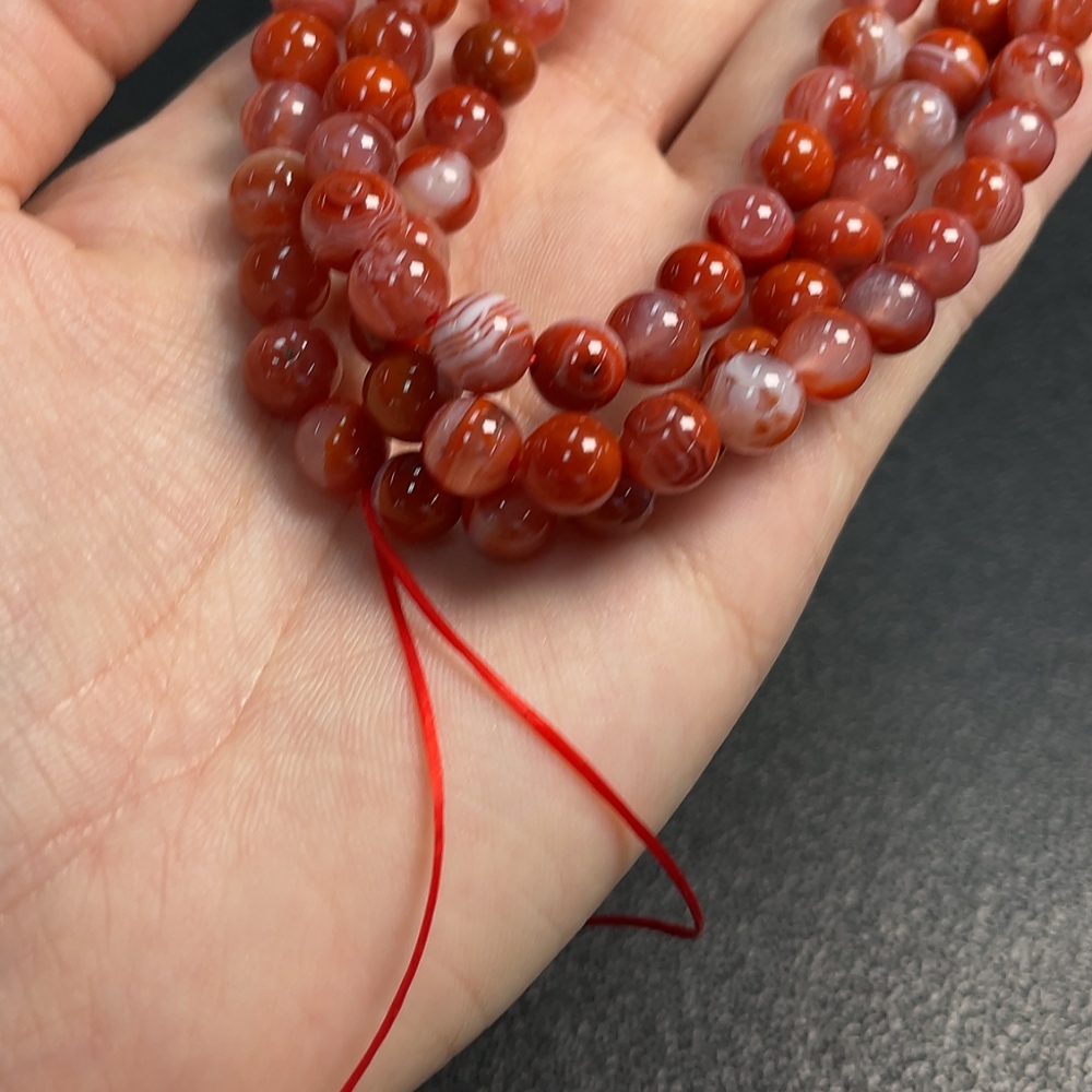 South Red Agate Bead Necklace with Visible Organic Matter, Total Weight Approximately 54.44g, Bead Size About 7mm