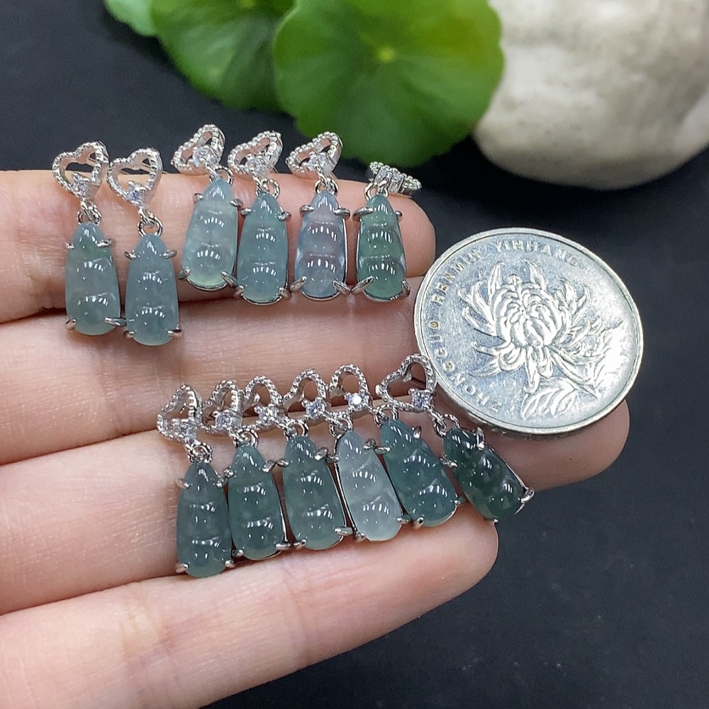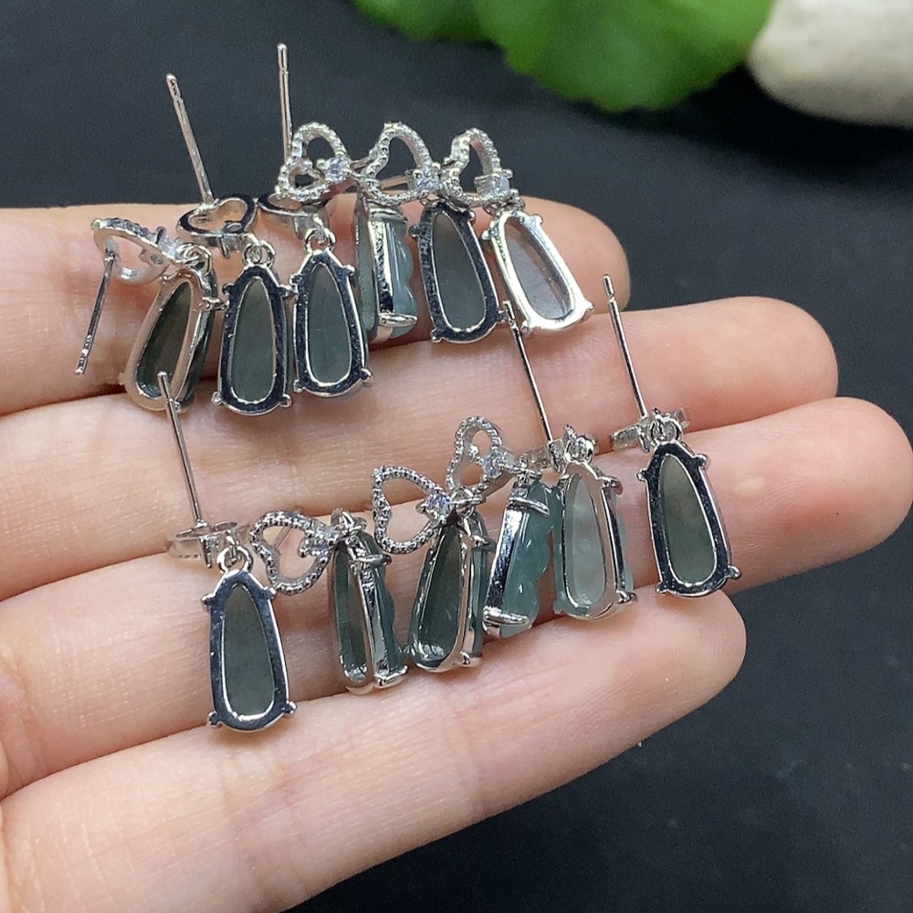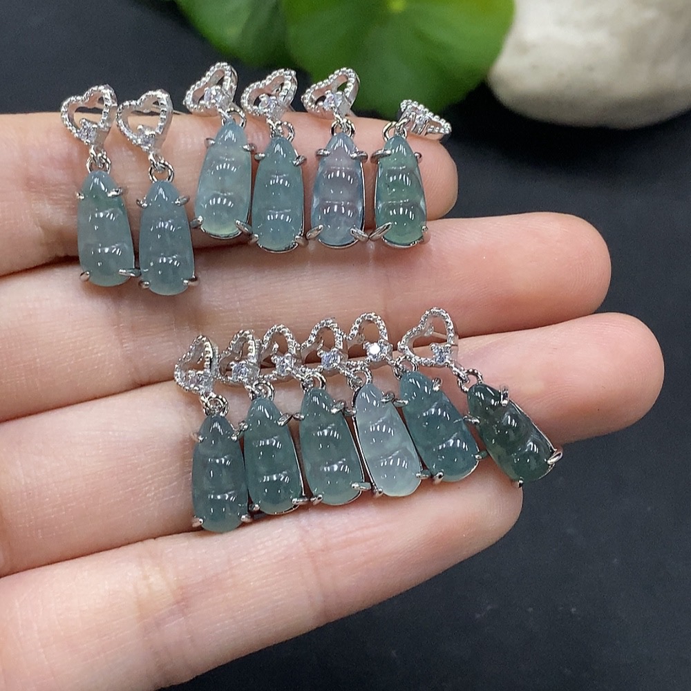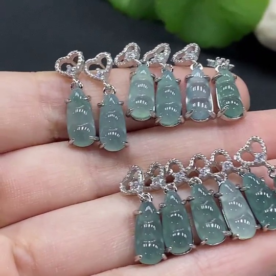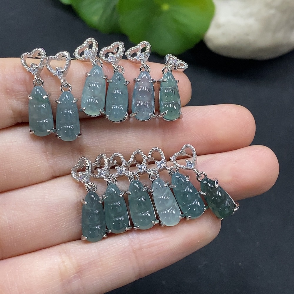 Jadeite Inlaid Earrings Sell as a Lot (Non-Gold Inlaid)