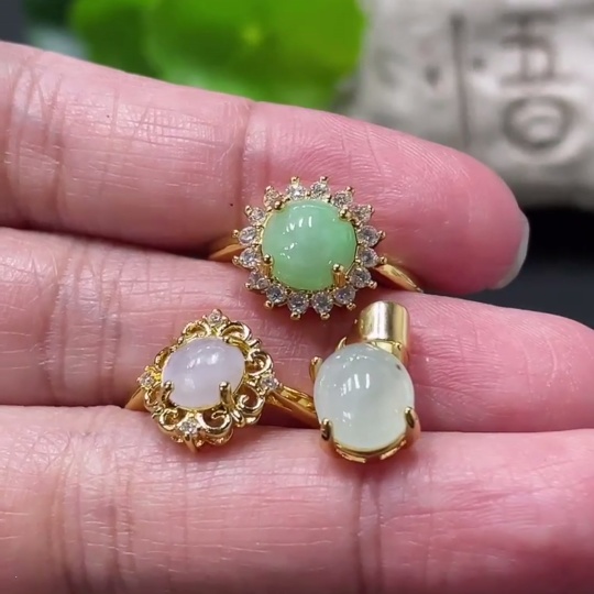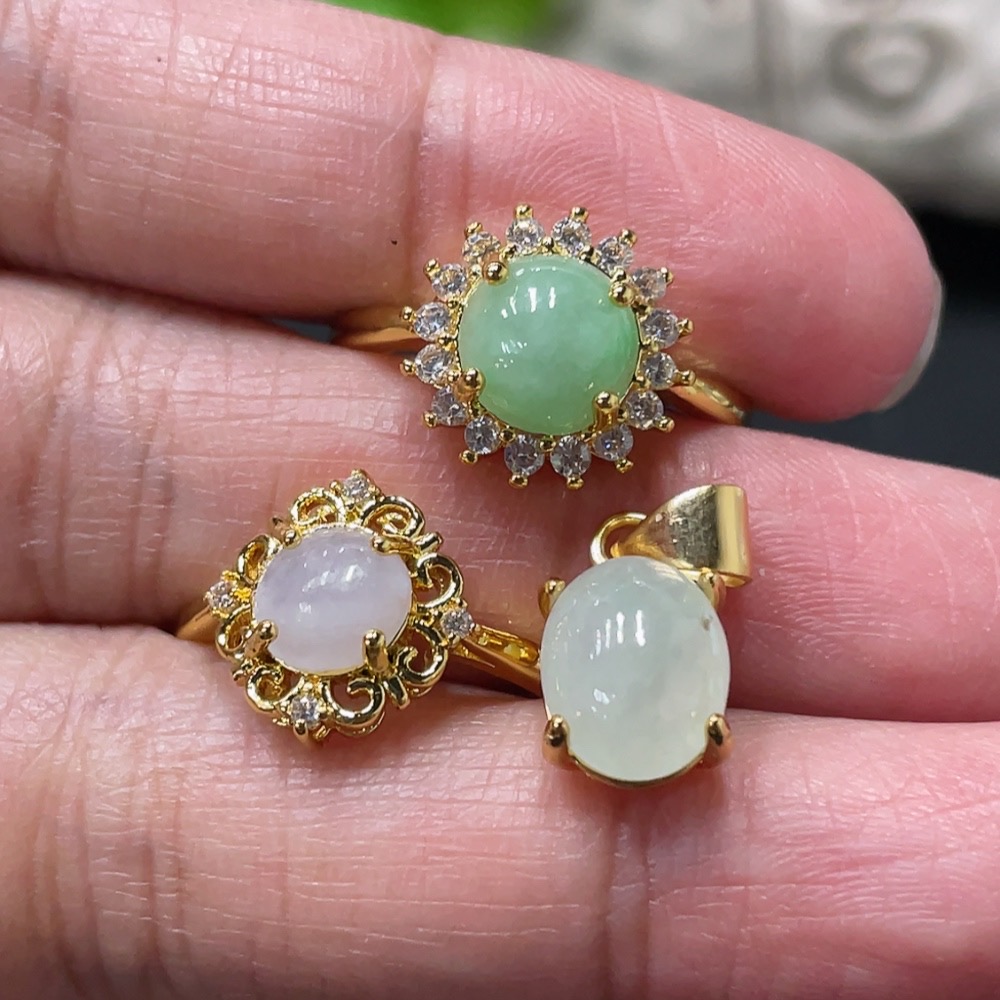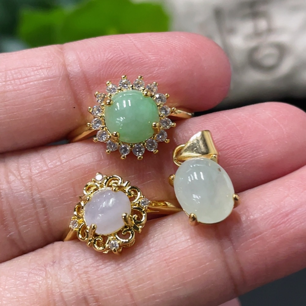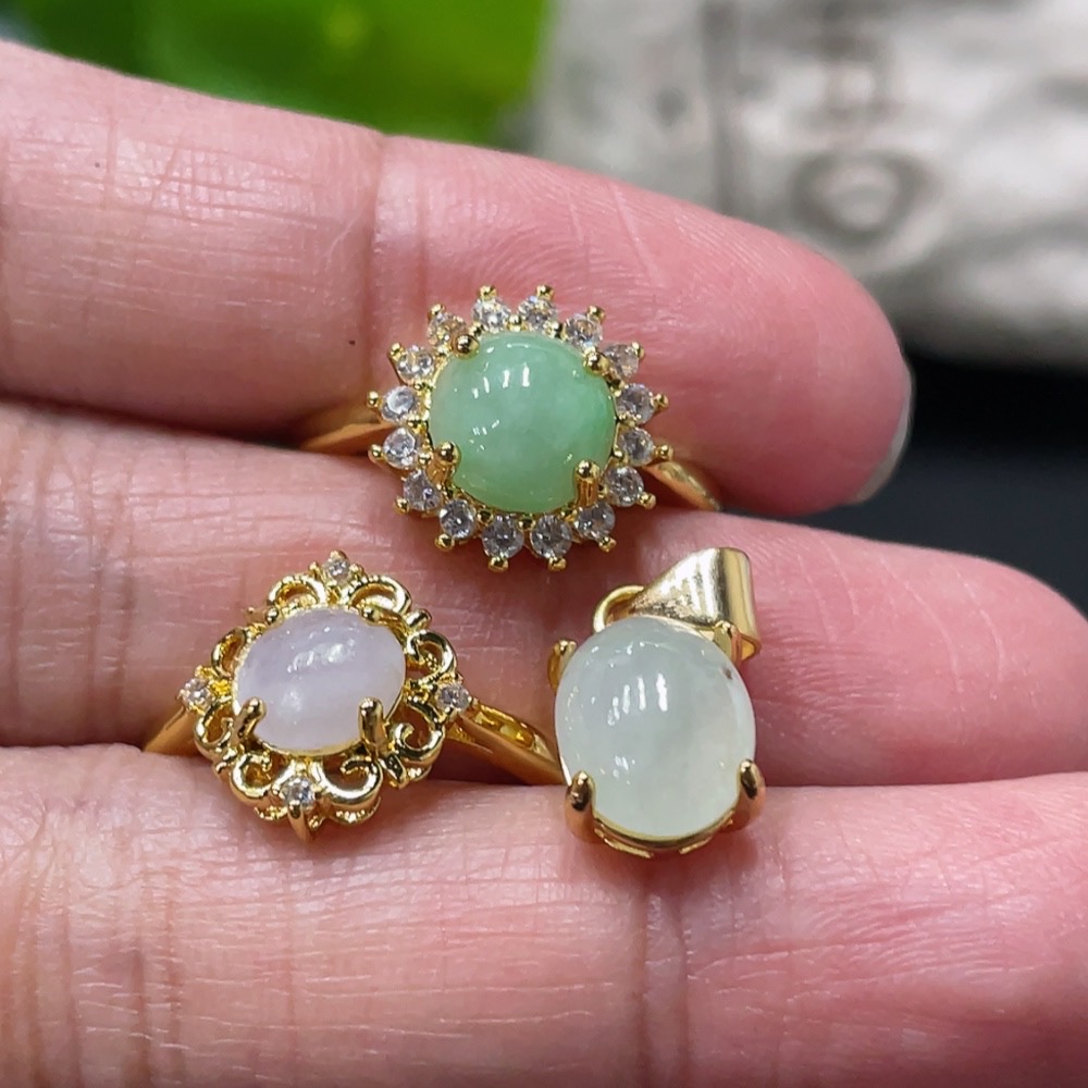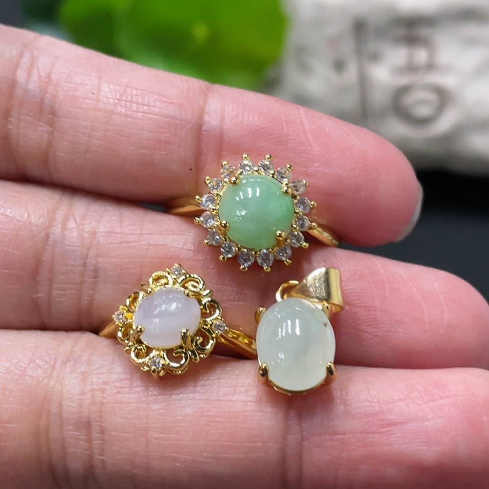 Jadeite Inlaid Ring Pendant Sell as a Lot Non-Gold