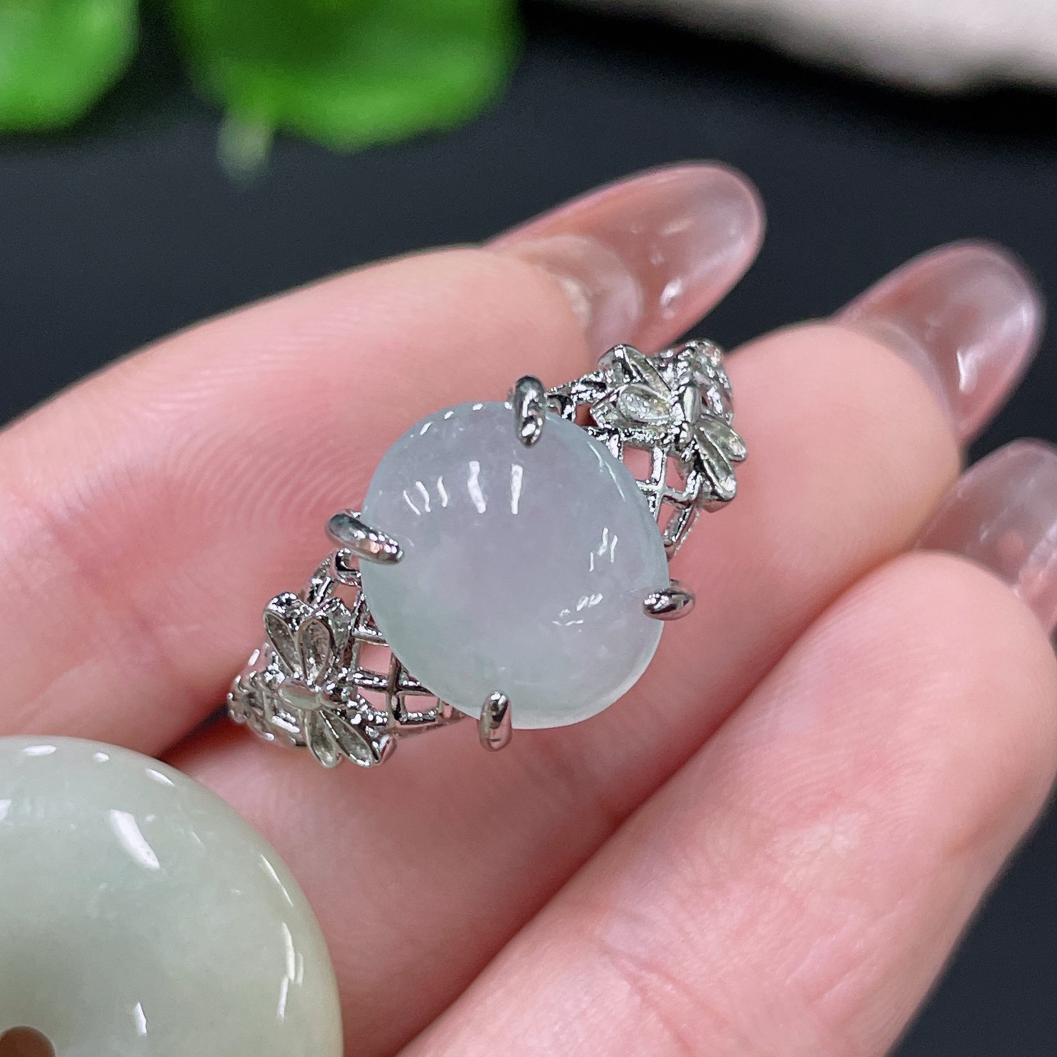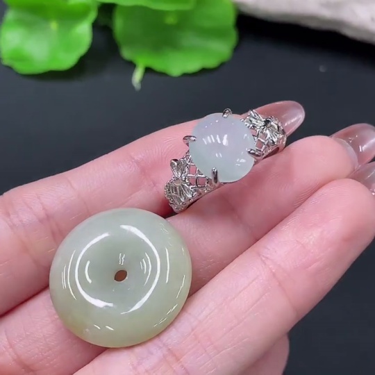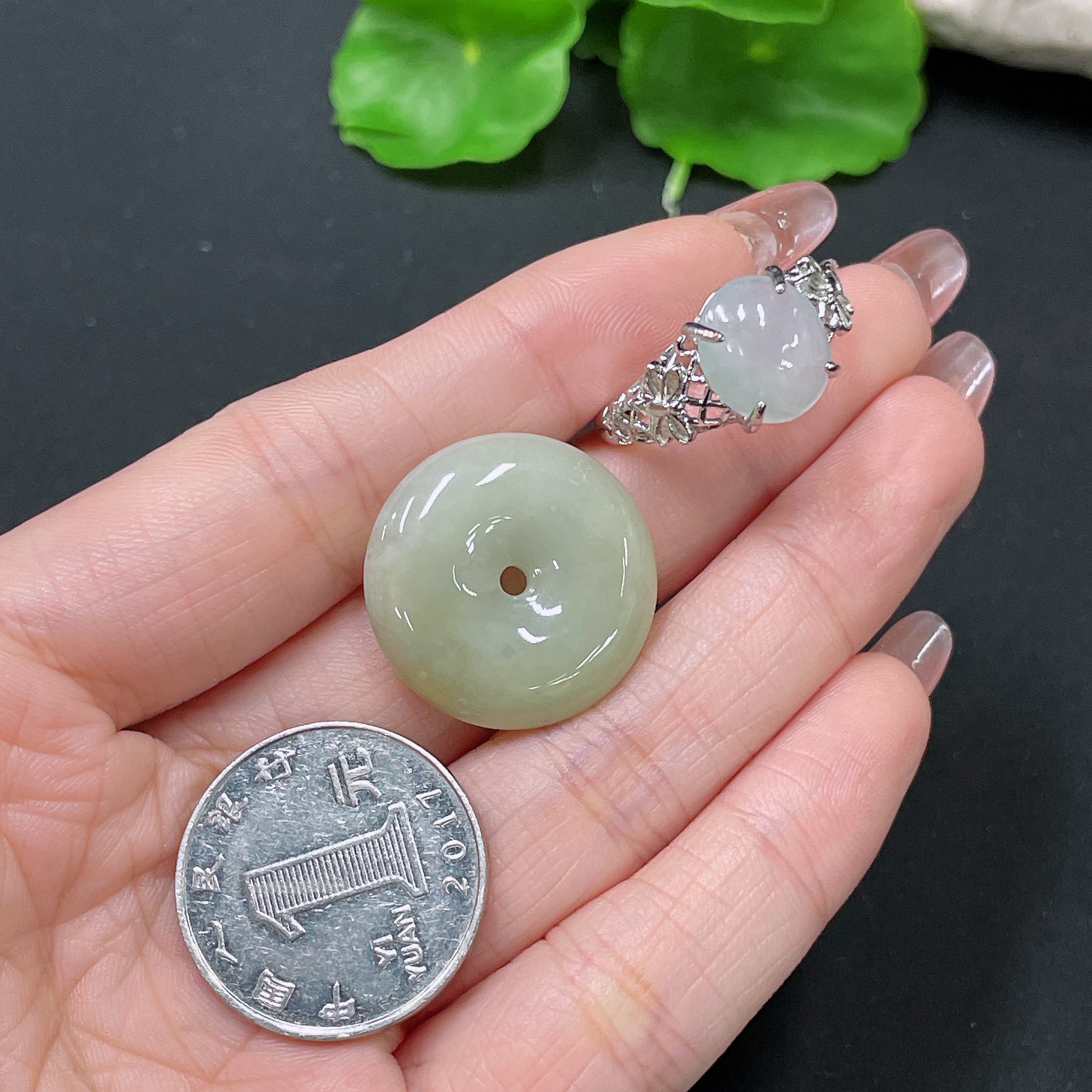 Jadeite Pendant Peace Buckle + Ring Non-Gold Adjustable Sell as a Lot