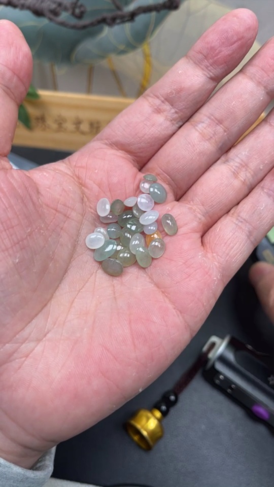 Jadeite Cabochon Mounted Pieces Sell as a Lot 26 Pieces Total Weight Approx. 5.86g Including Small Bag