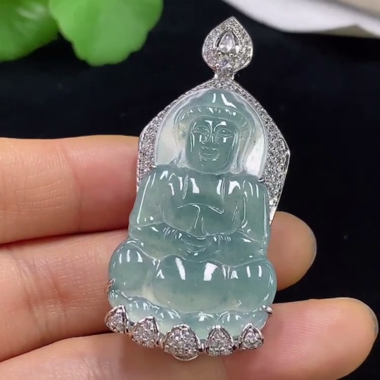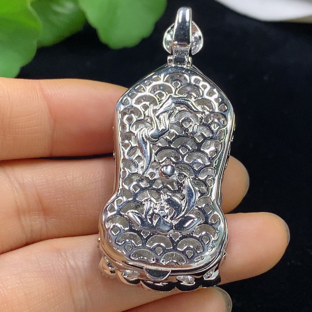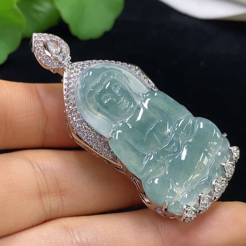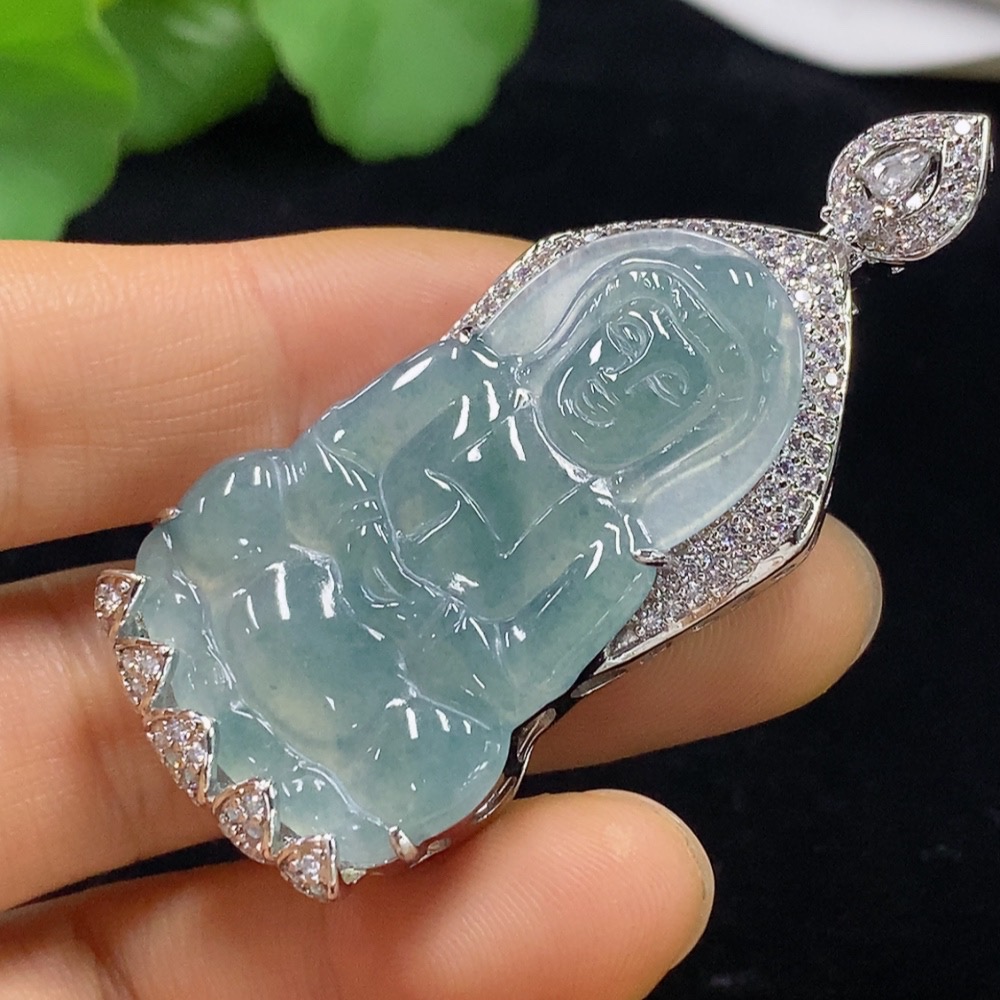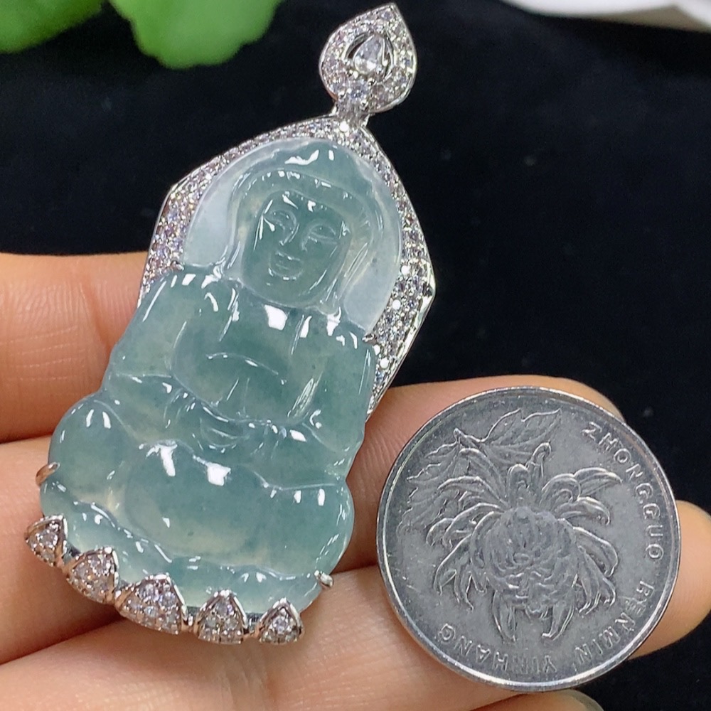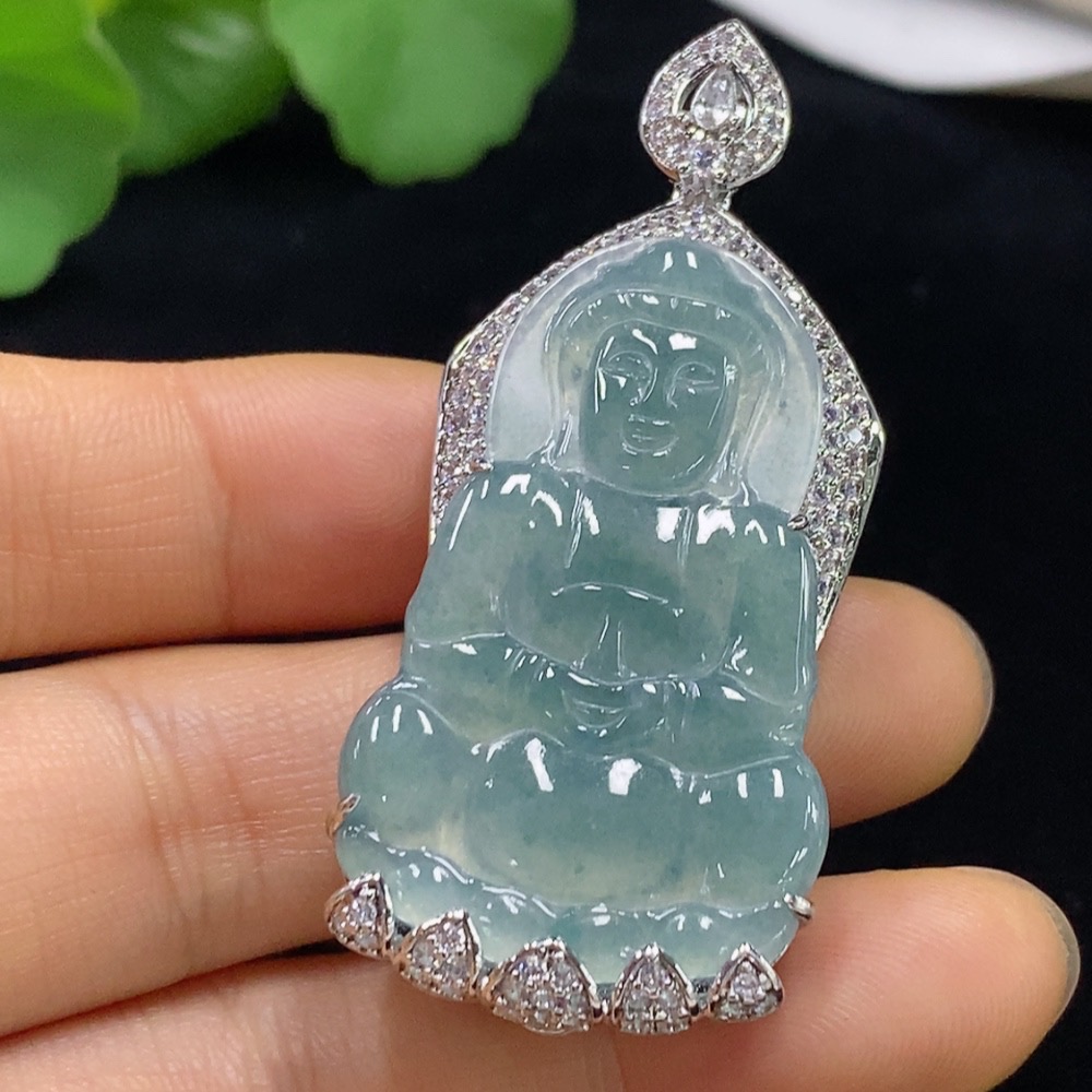 Jadeite Guanyin Inlaid Pendant Non-Gold Total Weight About 19.88g