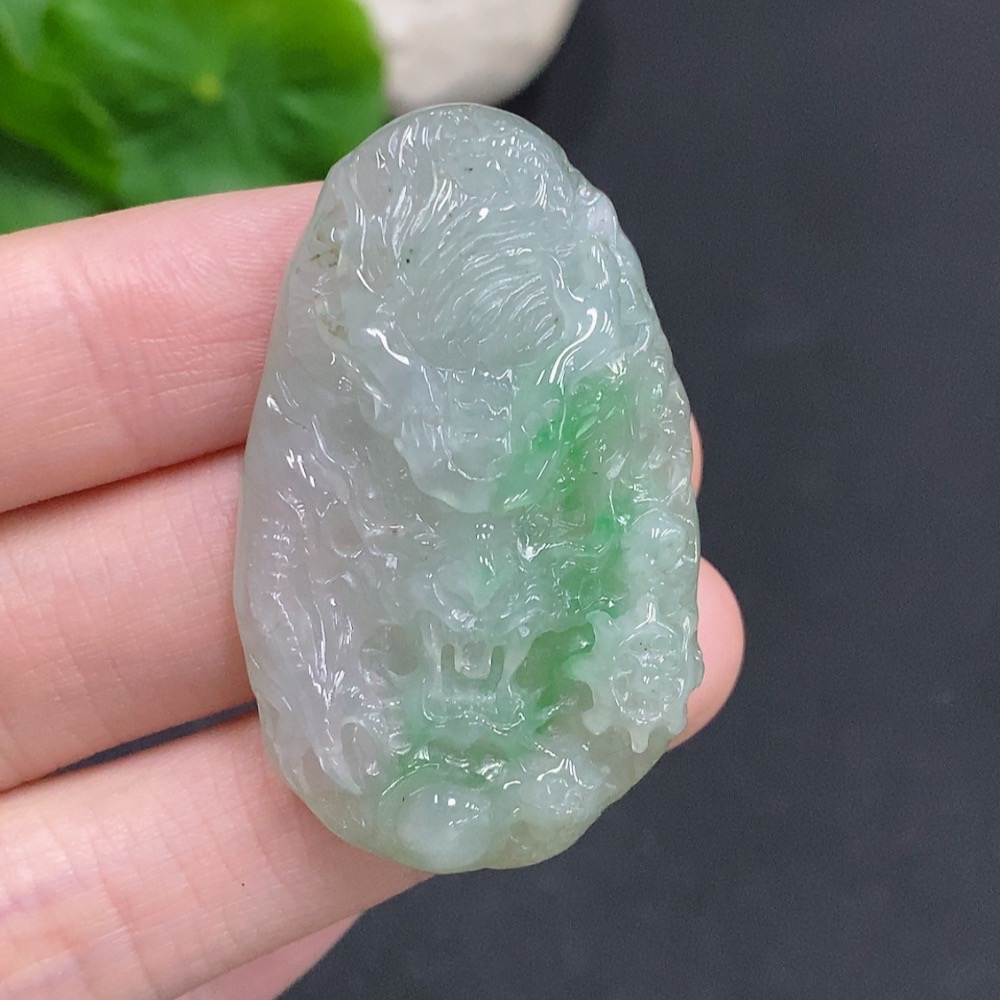 Jadeite Dragon Soaring World Pendant, Total Weight Approximately 19g