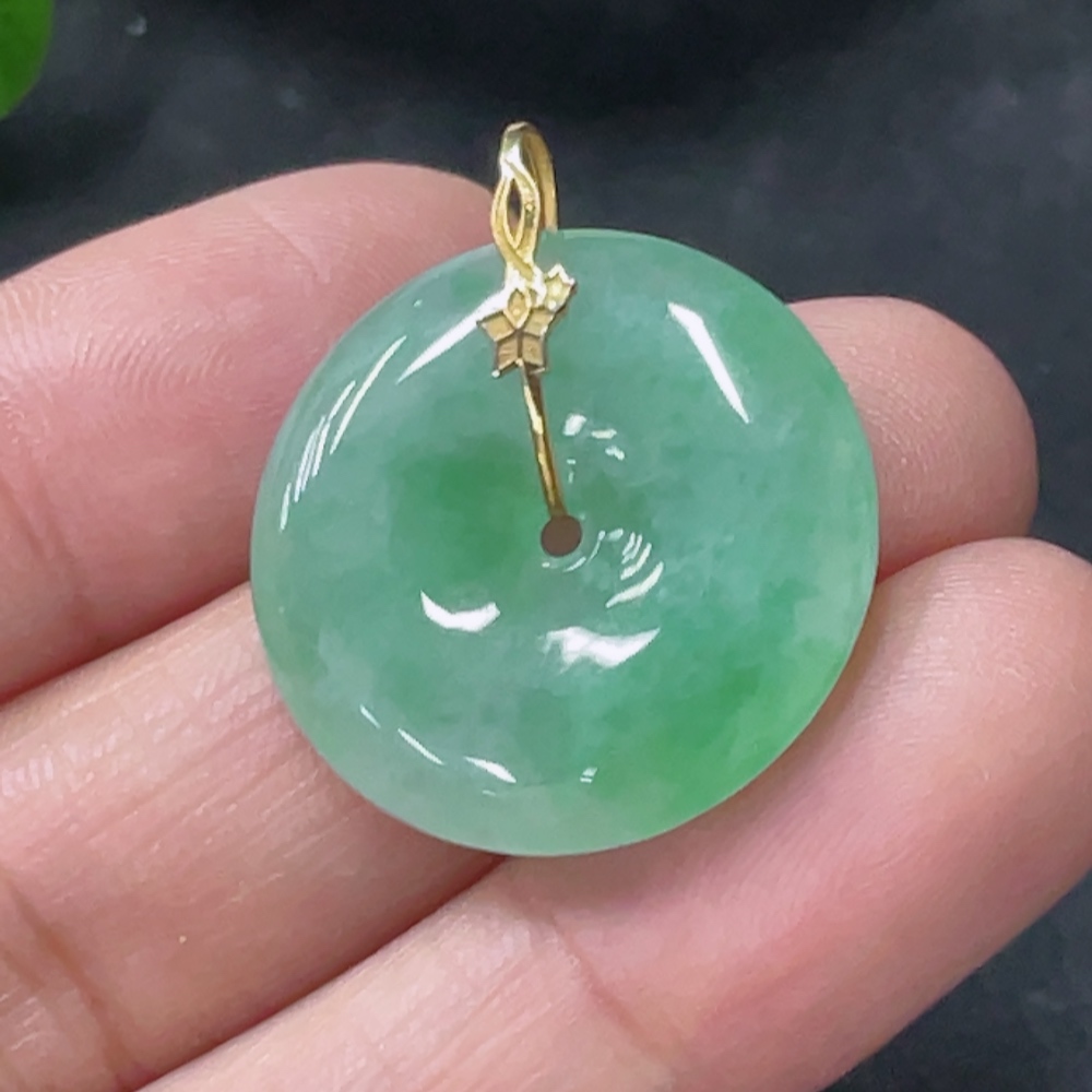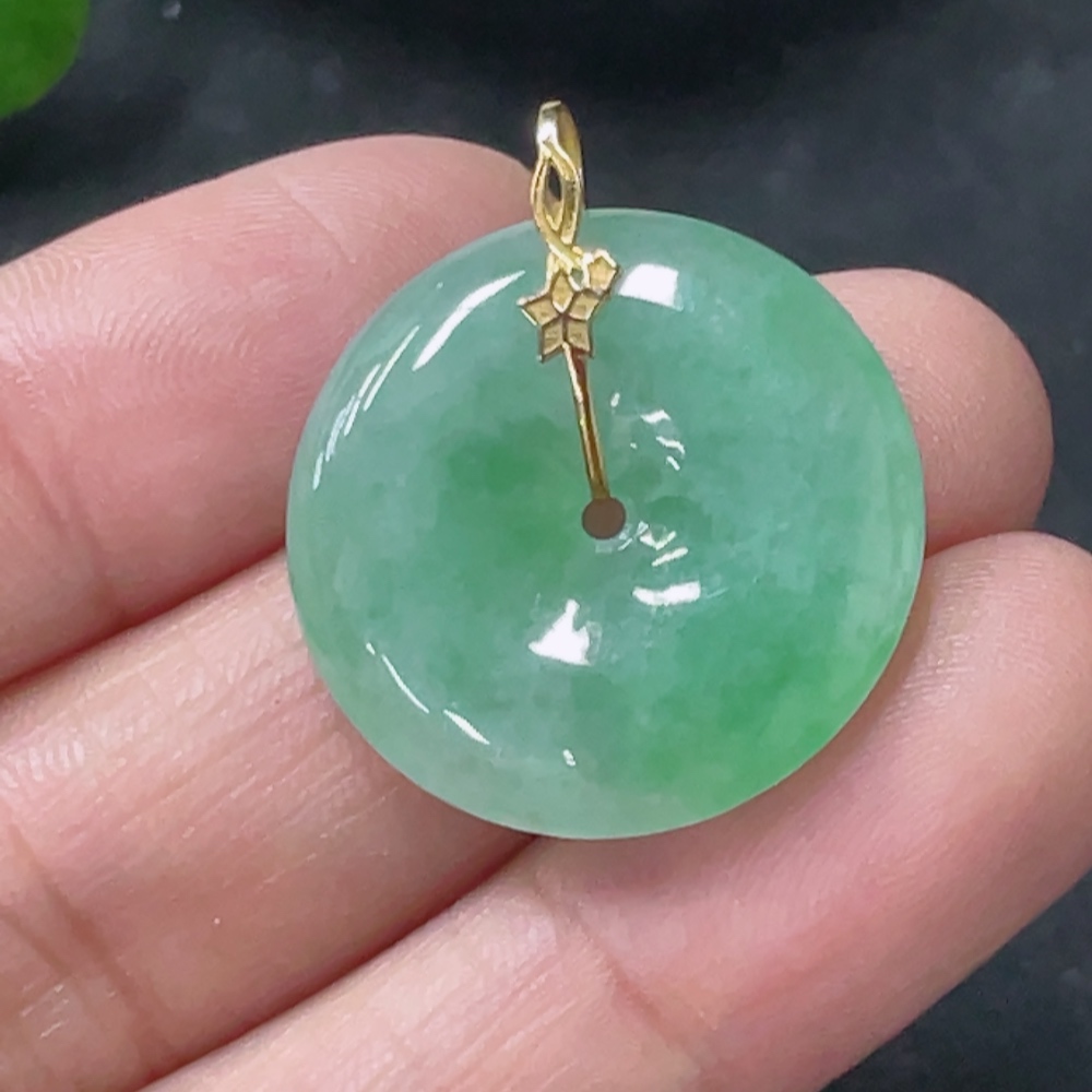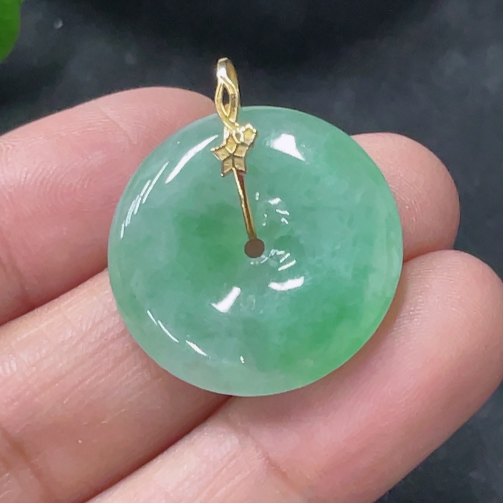 Jadeite Safety Buckle Pendant Total weight about 4.33g 18k gold buckle