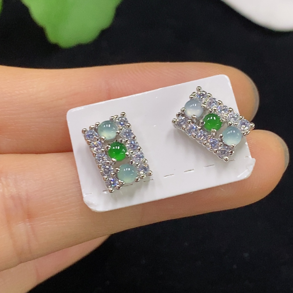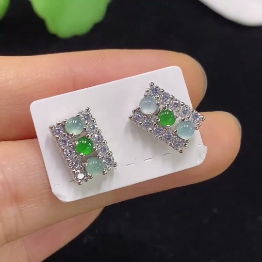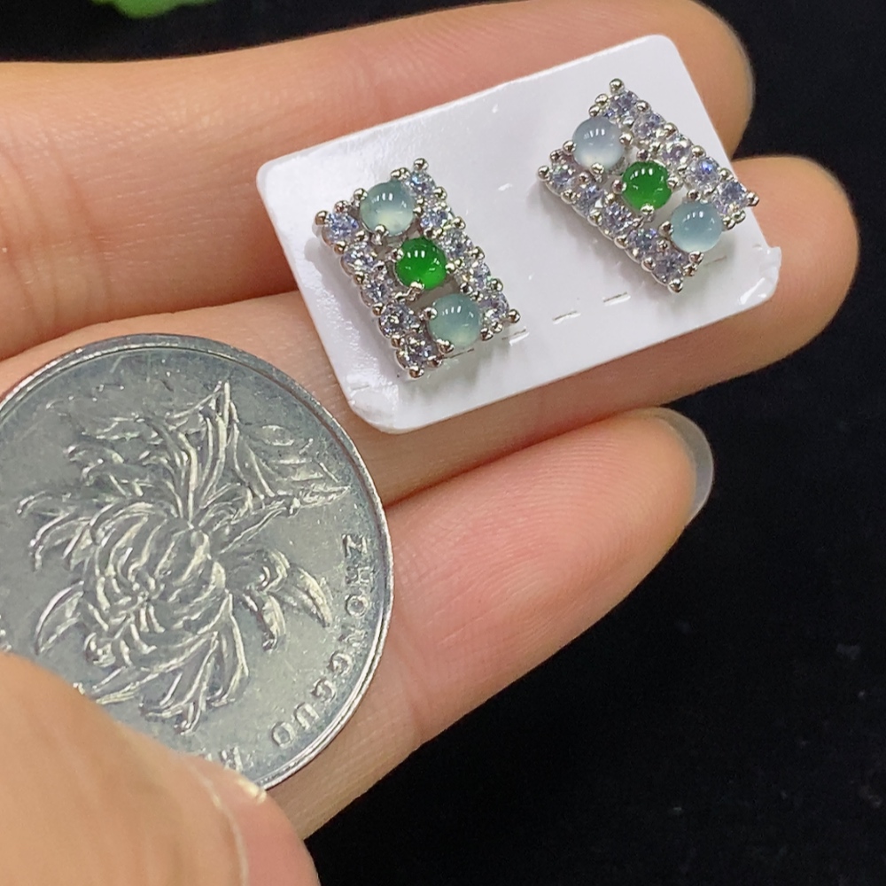 Jadeite Cabochon Earrings Non-Gold Total Weight Approx. 2.54g