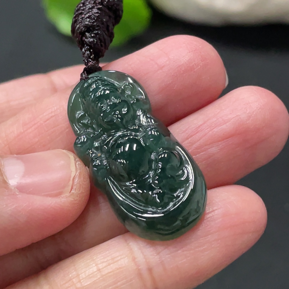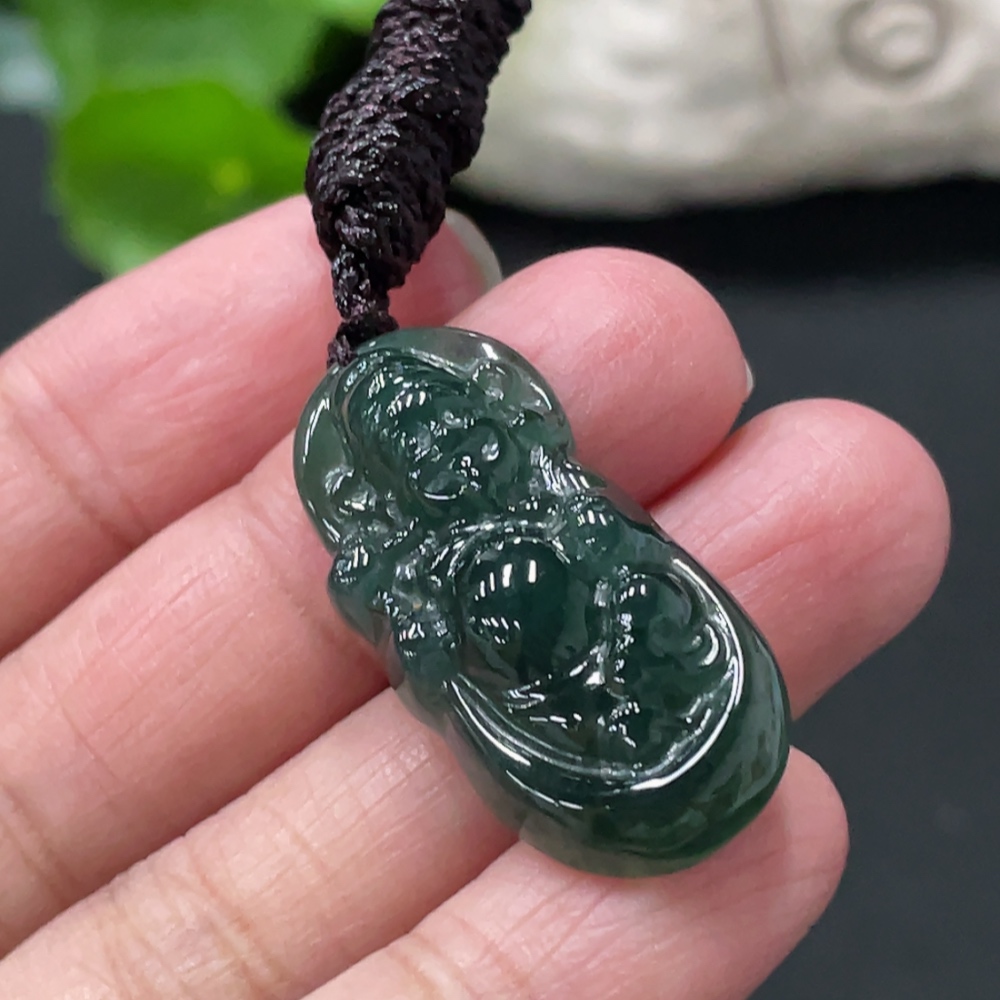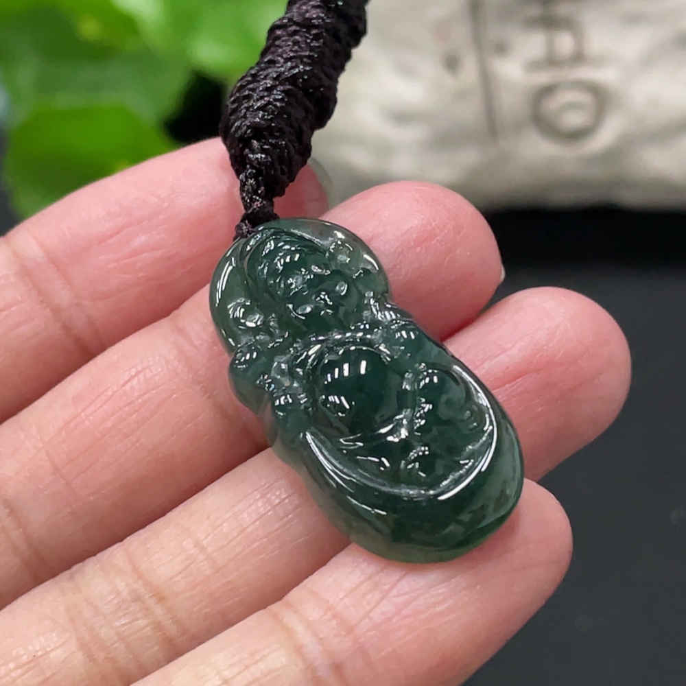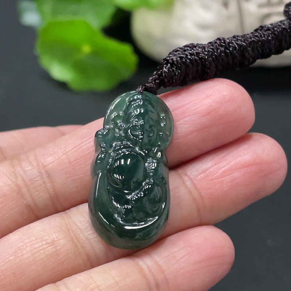 Jadeite God of Wealth Pendant, Total Weight Approx. 5.85g