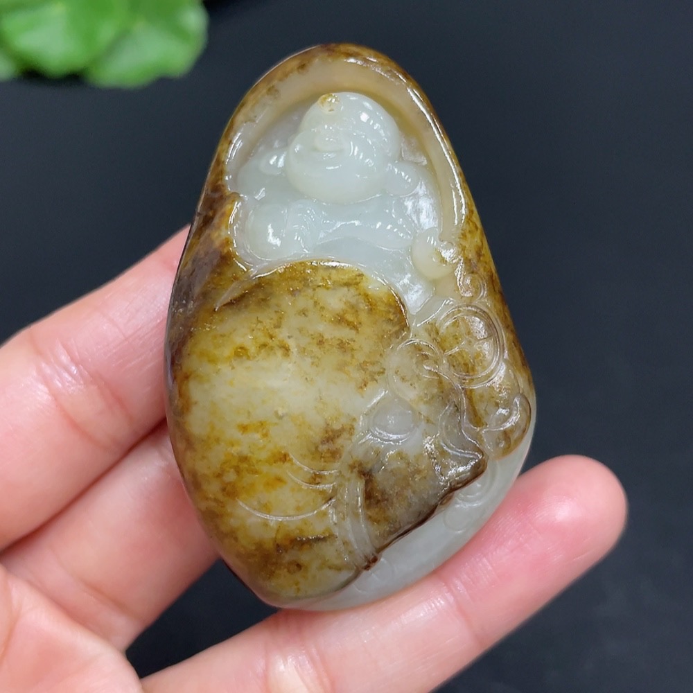 Hetian Jade Pendant - Buddha, Undetermined Skin Color Origin, Contains Other Mineral Components, Total Weight Approximately 63.6g